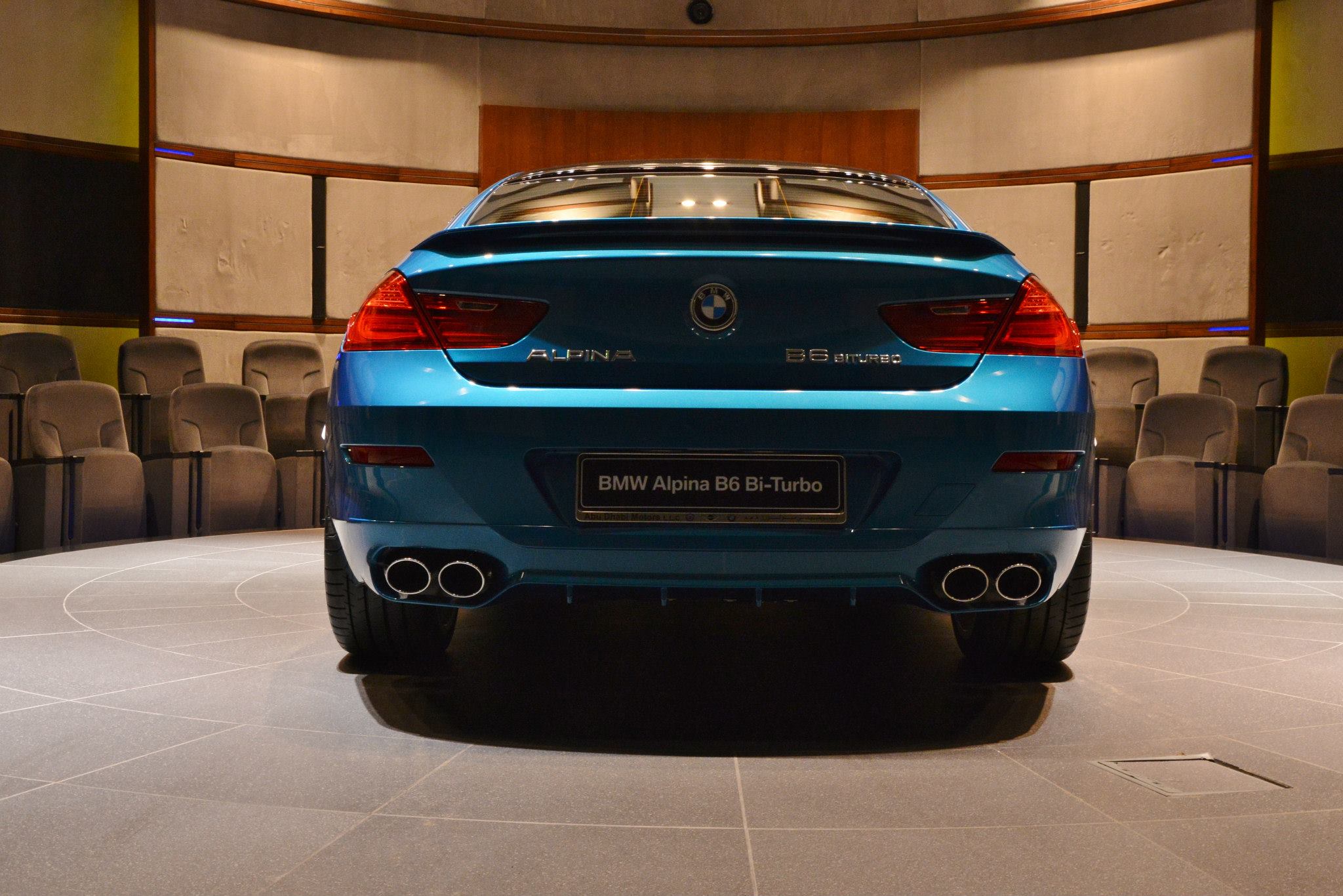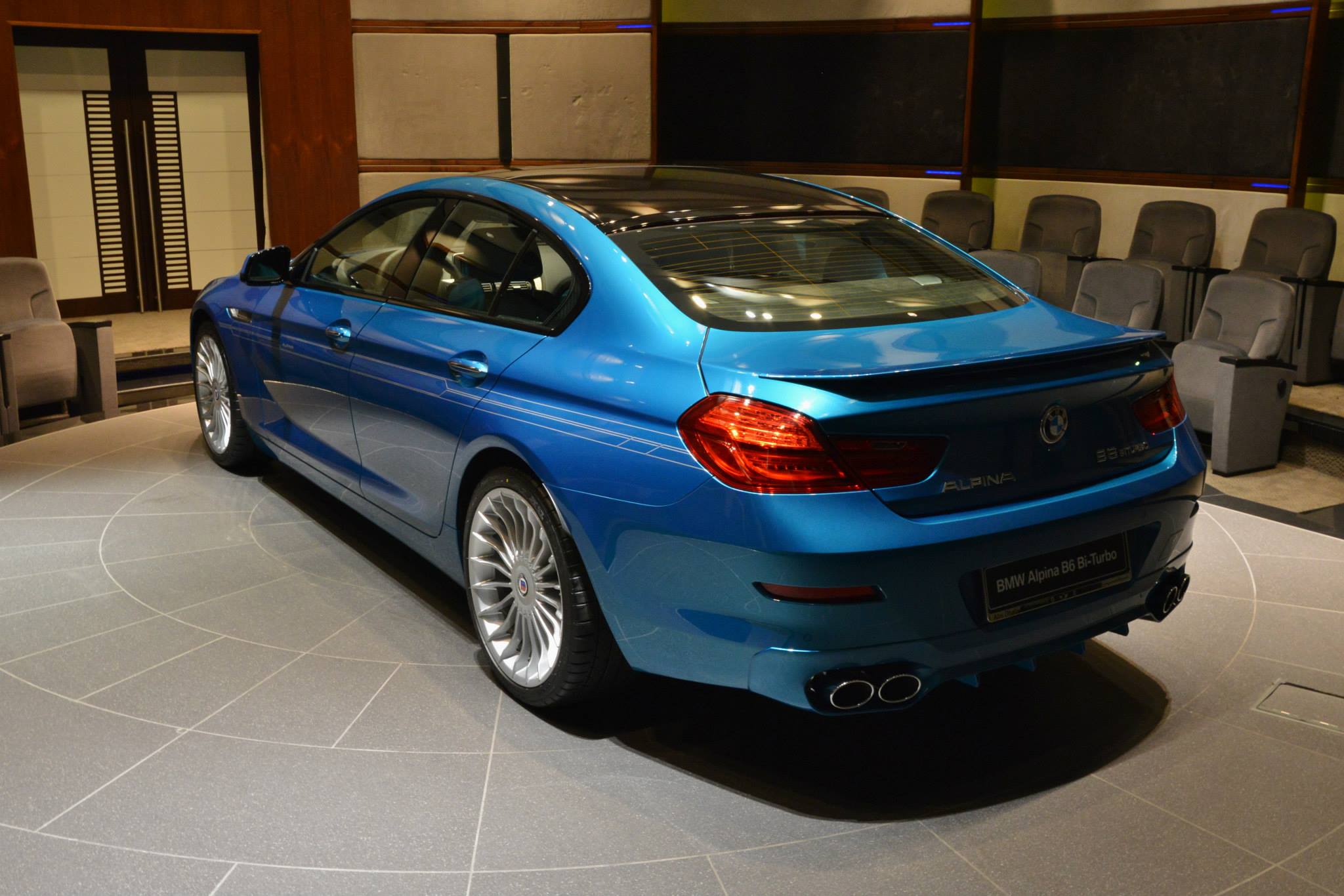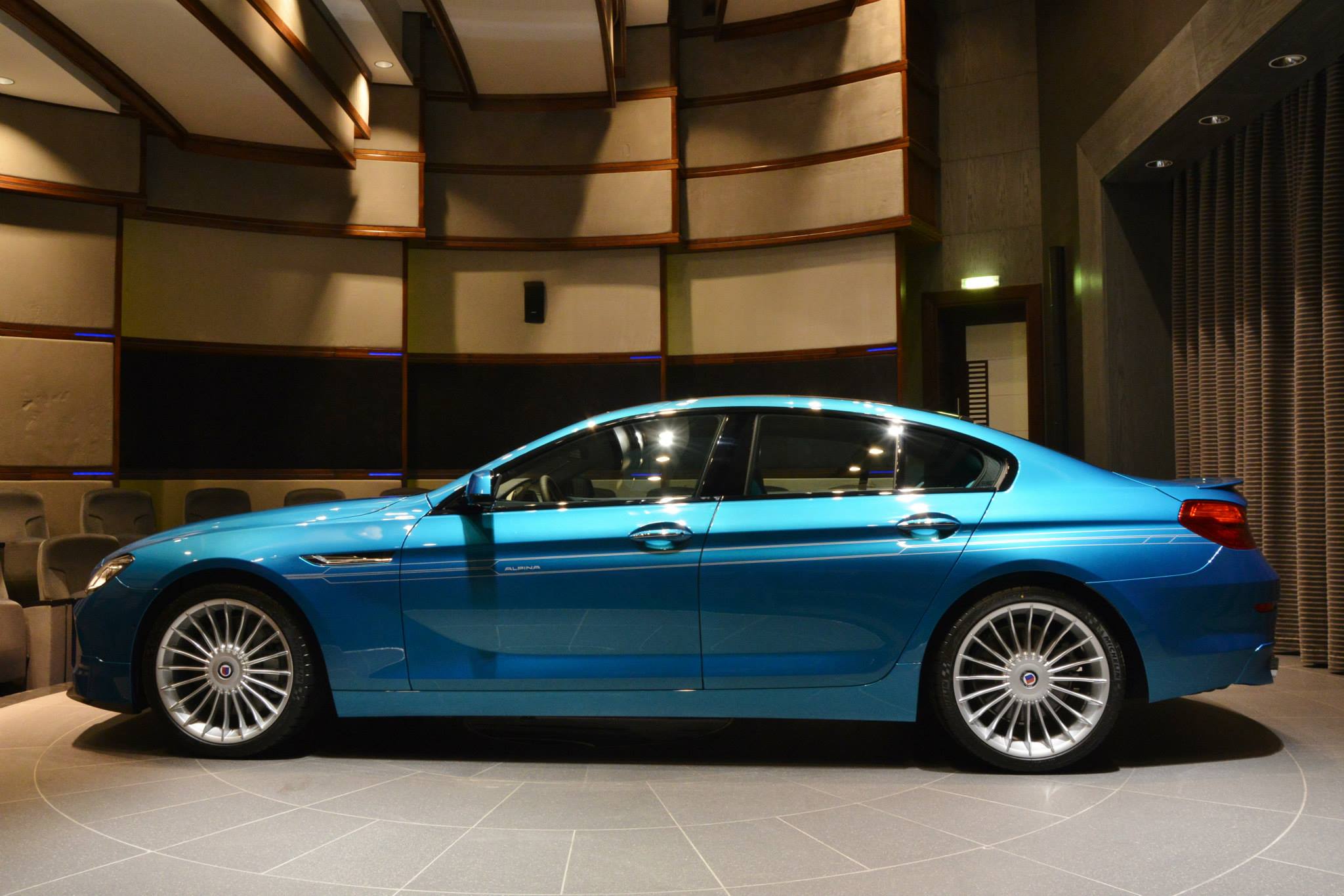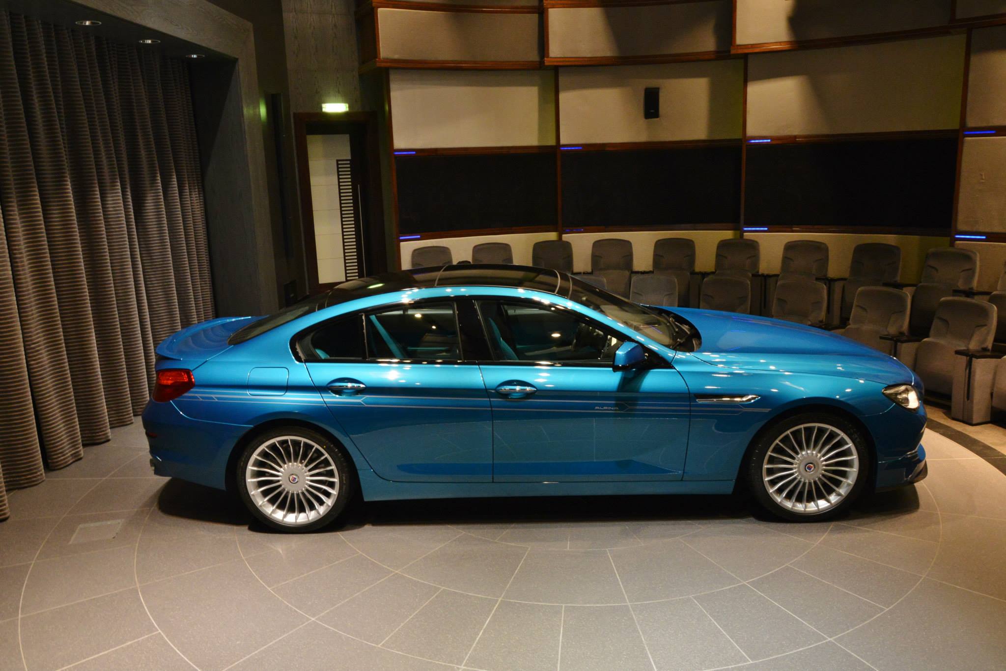 Wenn Auto-Fans an einen blauen Alpina denken, haben sie in der Regel das relativ dunkle Alpina-Blau vor Augen. Dass den Fahrzeugen aus Buchloe auch andere Blau-Töne ganz hervorragend zu Gesicht stehen, zeigen einige aktuelle Fotos von BMW Abu Dhabi Motors: Im dortigen Showroom wird derzeit ein BMW Alpina B6 Gran Coupé in der Individual-Lackierung Atltantis Blue gezeigt.