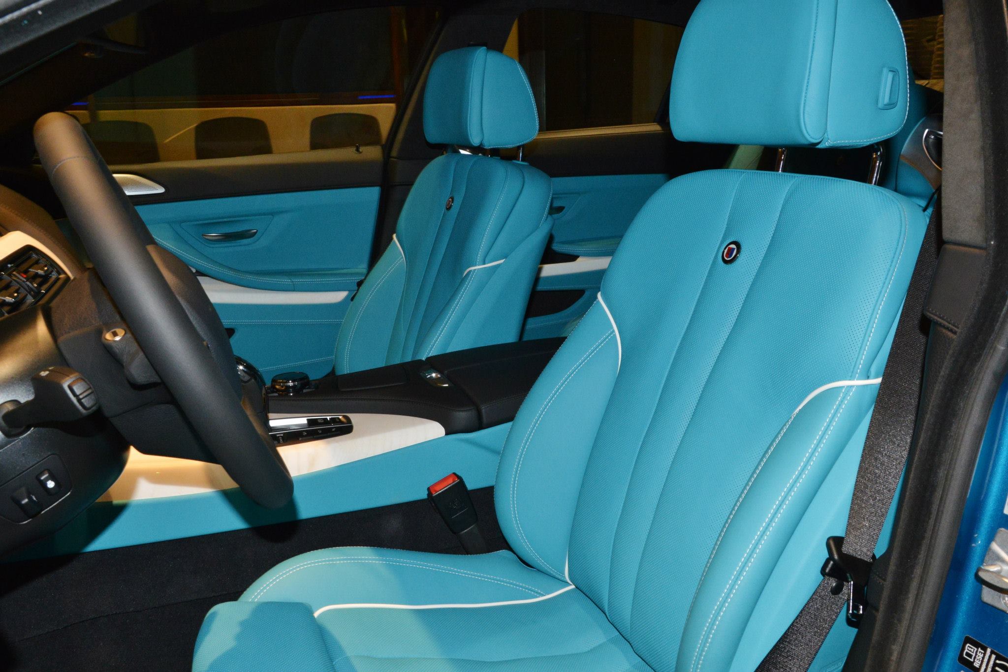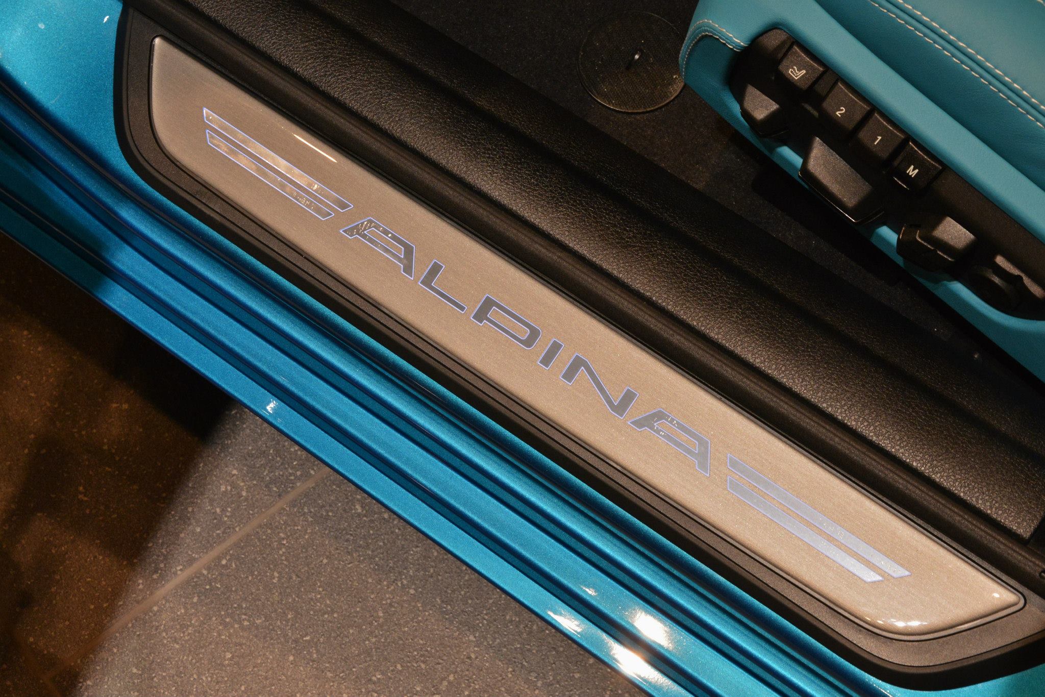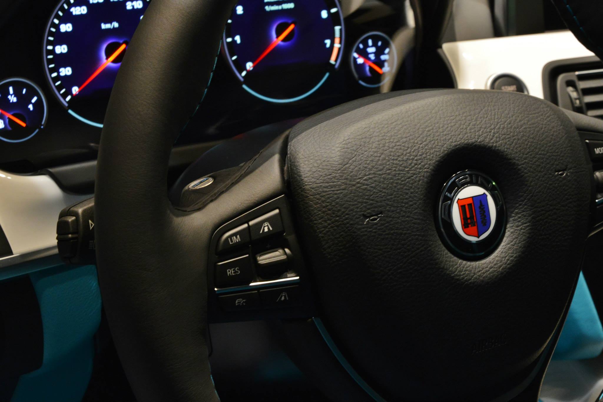 Ebenso streitbar wie unverwechselbar ist der Innenraum, denn auch hier spielt türkis die Hauptrolle. In Kombination mit weißen Interieurleisten und Kontrastnähten trifft diese Farbe vermutlich nicht jeden Geschmack, steht aber sinnbildlich für die beinahe unendliche Vielfalt des Alpina-Programms – was der Kunde wünscht, wird wann immer möglich umgesetzt.