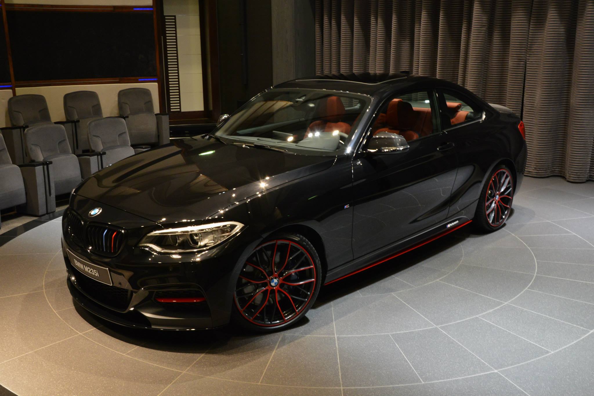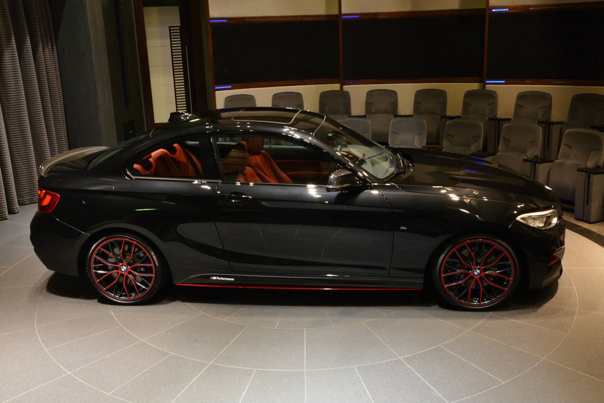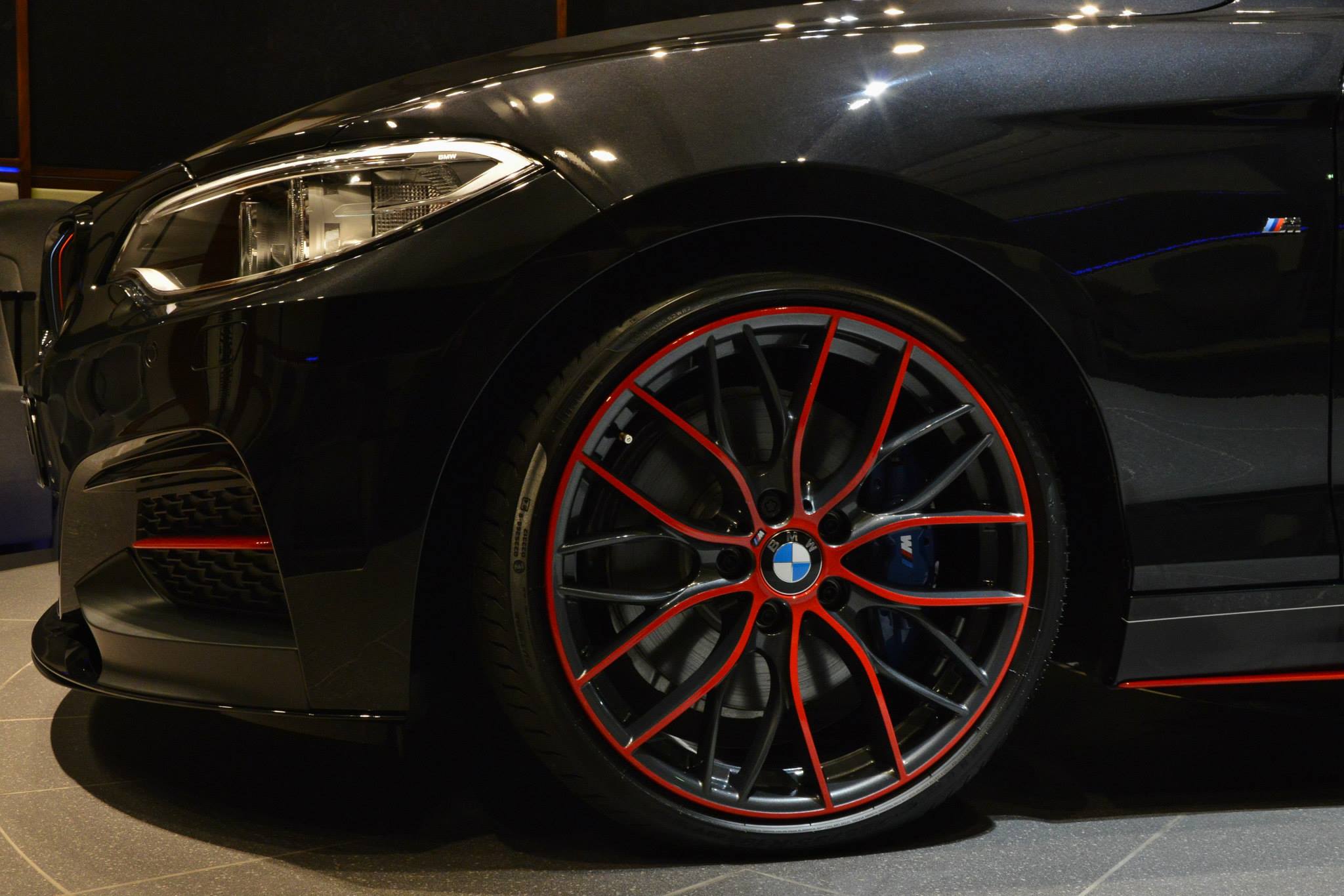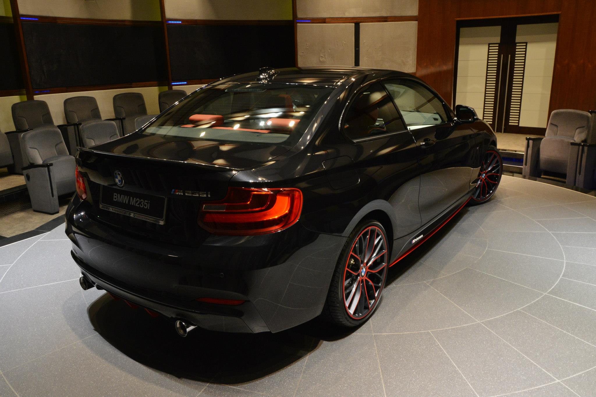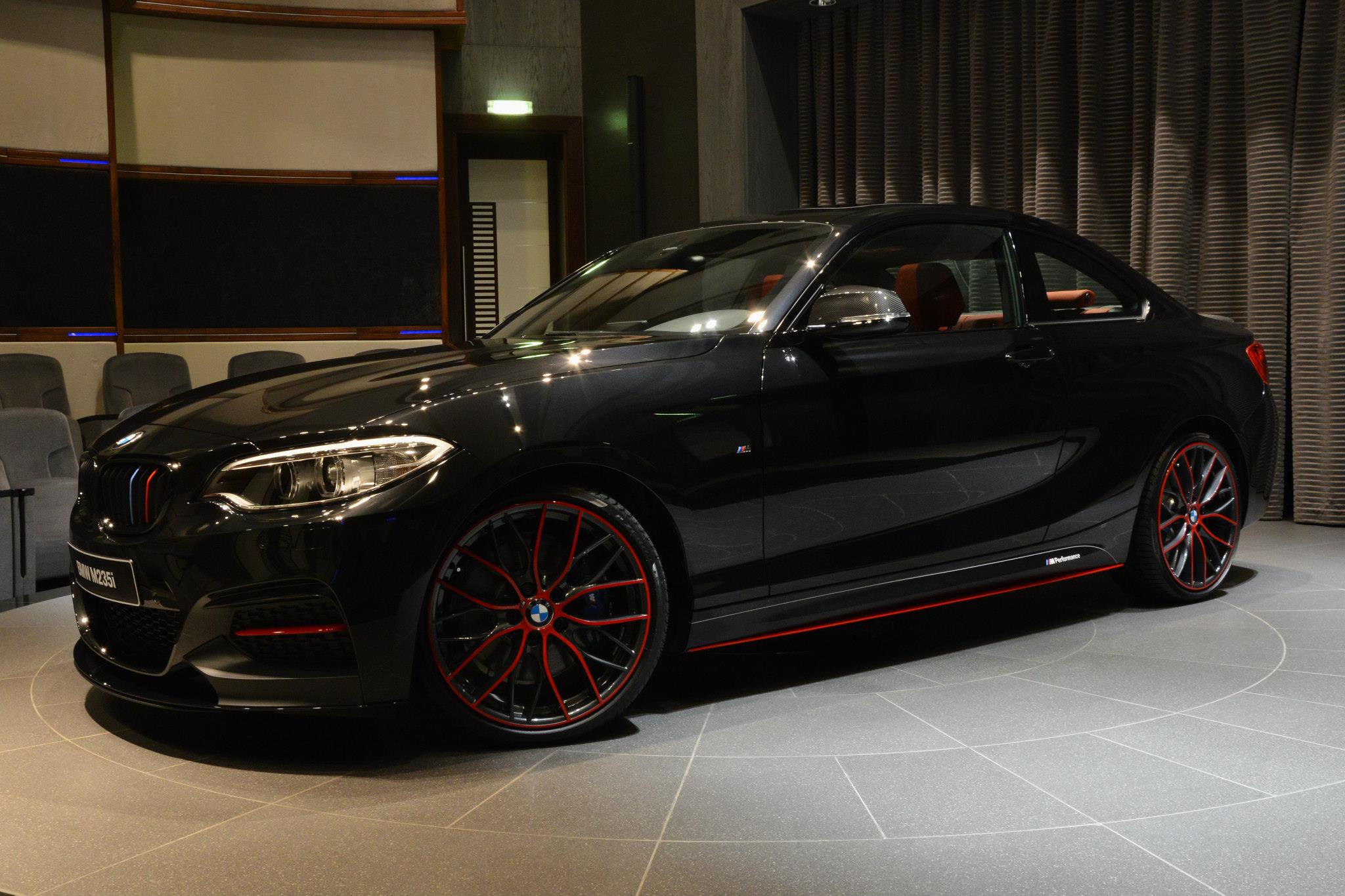 Wenn wenig viel bewirkt: Ein weiteres gelungenes Beispiel für einen BMW M235i mit BMW M Performance-Zubehör kommt aus Abu Dhabi, wo dem Auftritt des Kompaktsportlers mit etwas roter Farbe unter die Arme gegriffen wurde. Nur wenige Elemente an Frontschürze, Seitenschweller, Felgen und Heck-Diffusor strahlen in kräftigem Rot, machen dieses BMW M235i Coupé aber ganz sicher zum Hingucker.