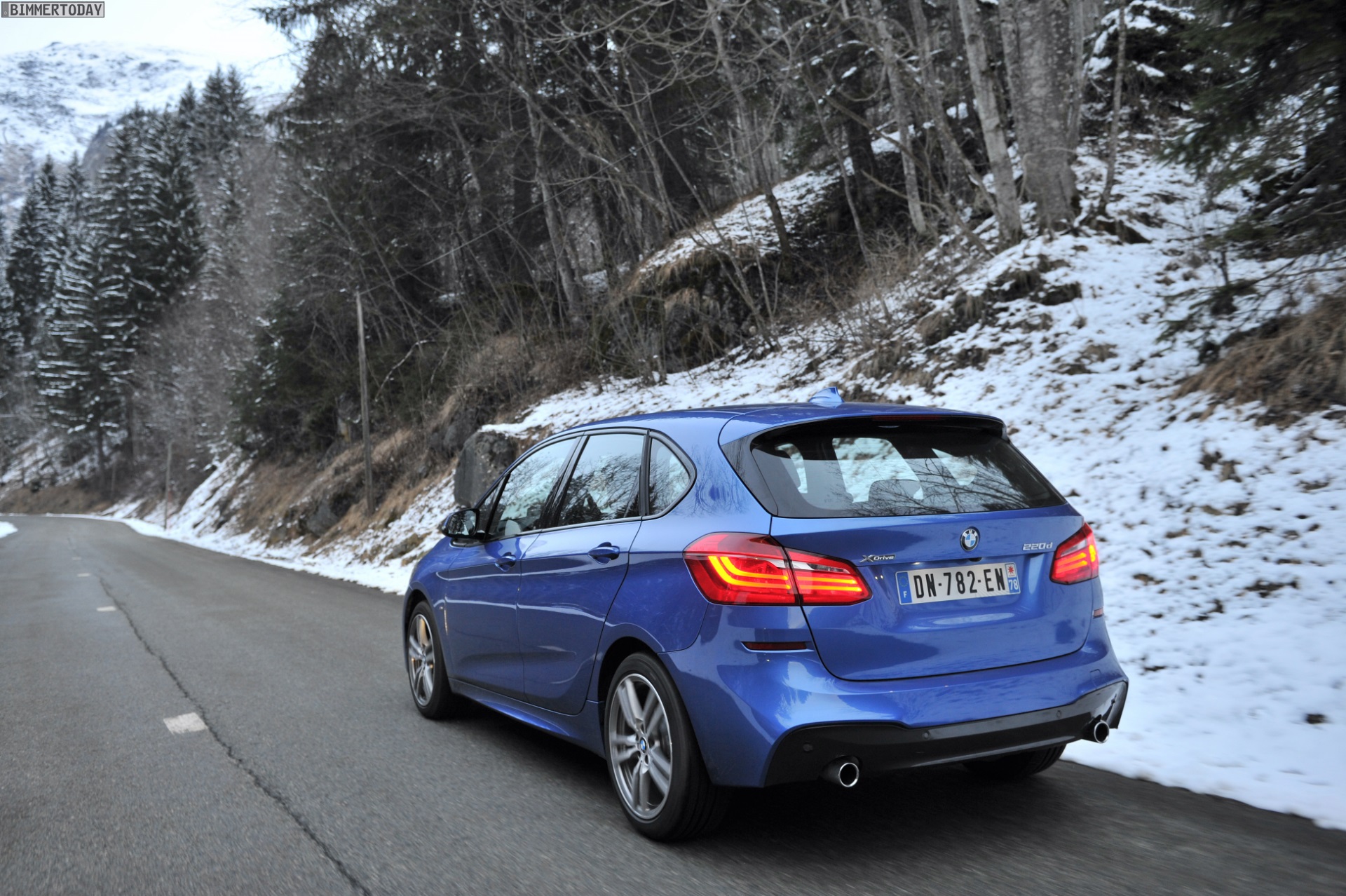Passend dazu sehen wir den BMW 2er Active Tourer mit M Sport-Paket und in der charakteristischen Farbe Estorilblau Metallic, die für zahlreiche aktuelle BMW-Modelle mit M Sportpaket ab Werk erhältlich ist. Neben der Farbe sorgen auch geänderte Schürzen an Front und Heck sowie große Felgen für einen dynamischeren Auftritt: