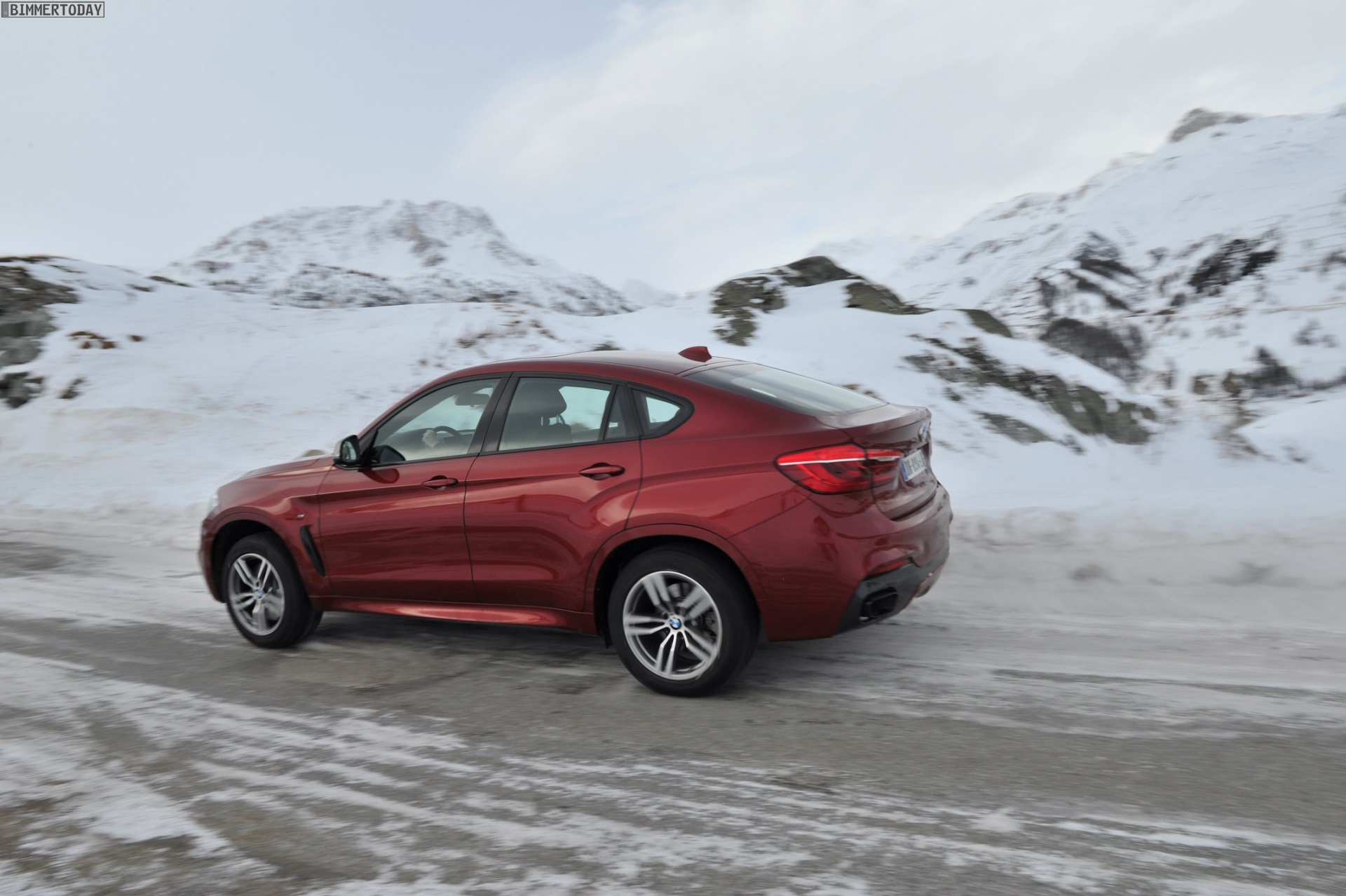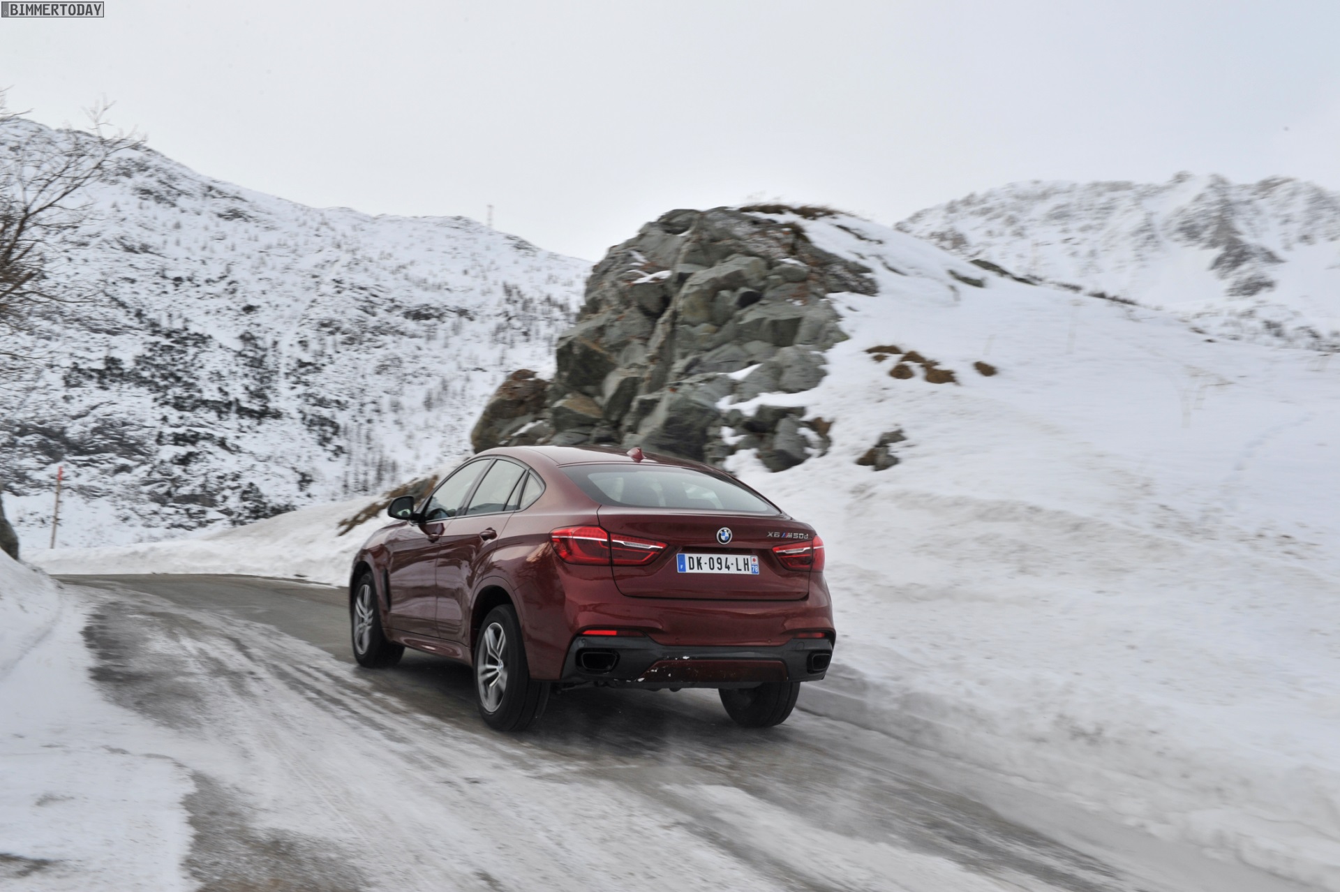 Dank Triturbo-Diesel bietet auch die M Performance-Variante des BMW X6 F16 jederzeit ausreichende Kraftreserven, außerdem sorgt das serienmäßige M Sportpaket für eine dynamische Abgrenzung von “gewöhnlichen” X6-Modellen. Neue Fotos zeigen den BMW X6 M50d F16 mit auffälliger Lackierung in Flamencorot Brillanteffekt auf verschneitem Untergrund im Rahmen einer xDrive-Veranstaltung von BMW Frankreich