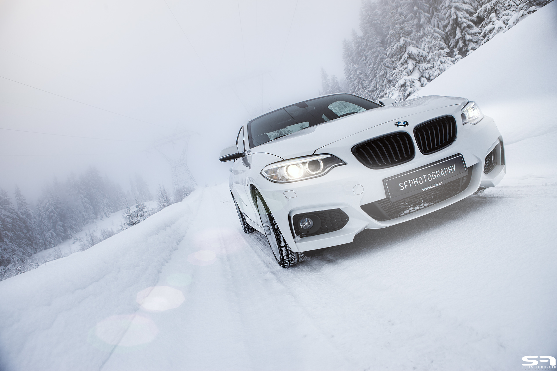 Verschneite Straßen und Wälder, jede Menge frischer Schnee in der Luft – und dazu ein weißes Auto! Was nicht unbedingt nach einem kontrastreichen Fotomotiv klingt, hat Stian Furuseth dennoch für ein überzeugendes Foto-Set genutzt und dabei das BMW 2er Coupé mit M Sportpaket in Szene gesetzt.