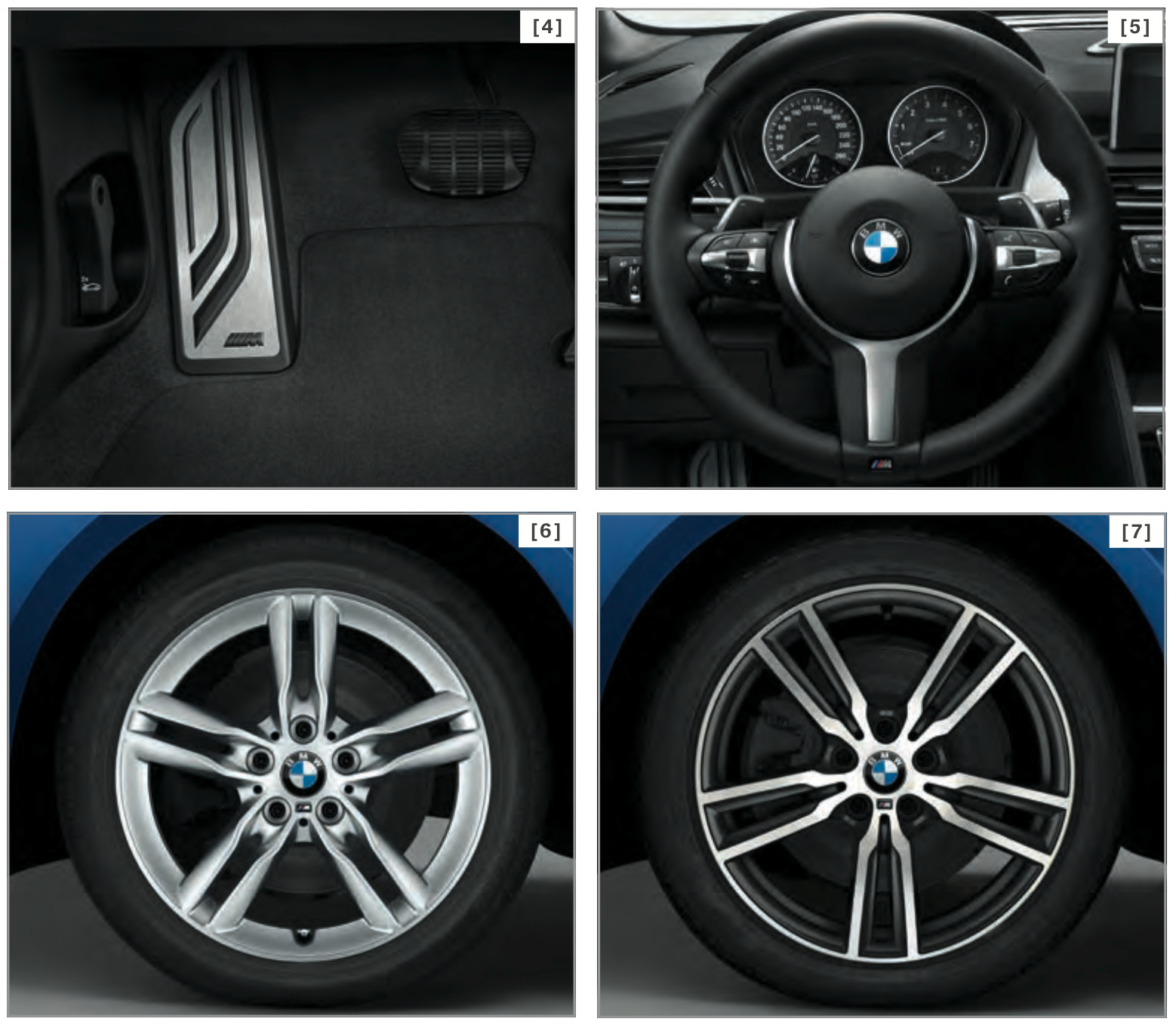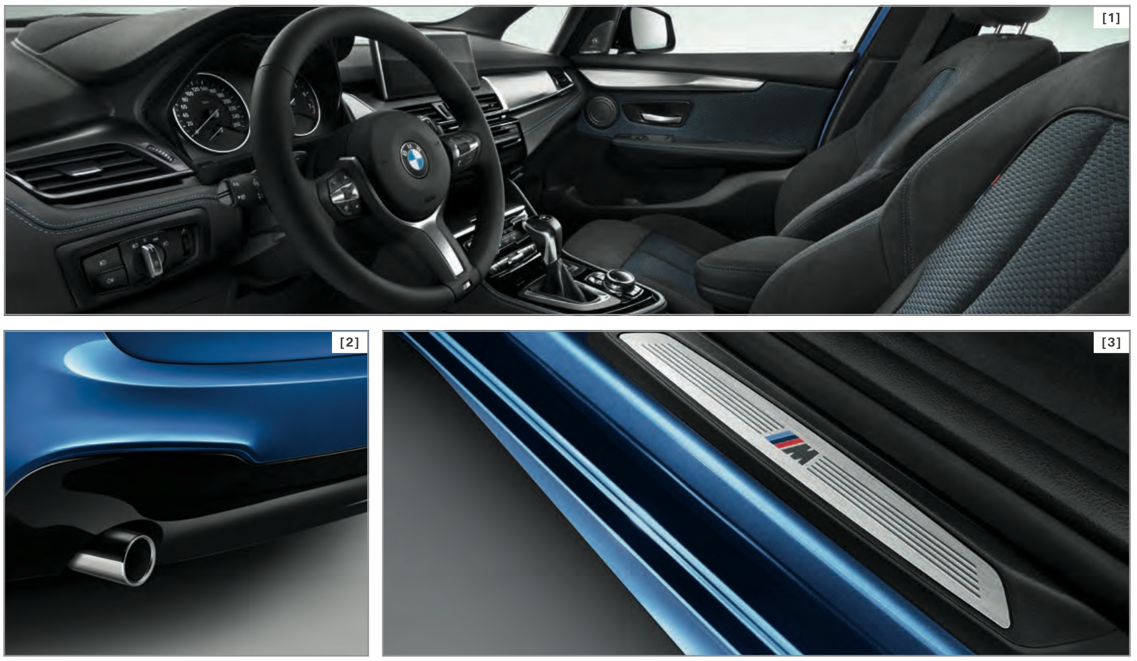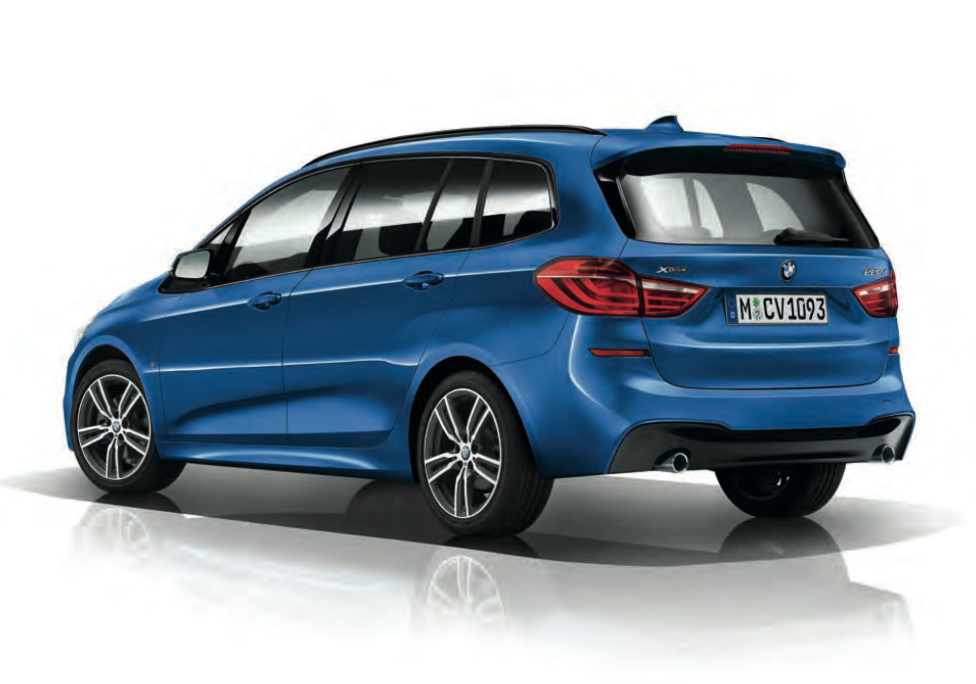 Gemeinsam mit der vollständigen Preisliste zum BMW 2er Gran Tourer wurden auch die ersten Fotos zum F46 mit M Sport-Paket veröffentlicht. Die Studio-Fotos zeigen den auf Wunsch als Siebensitzer erhältlichen Familien-Van in Estorilblau und mit den 18 Zoll großen Leichtmetallrädern Doppelspeiche 486 M – sowohl die Farbe als auch die Felgen sind nur für M Sport-Modelle erhältlich.