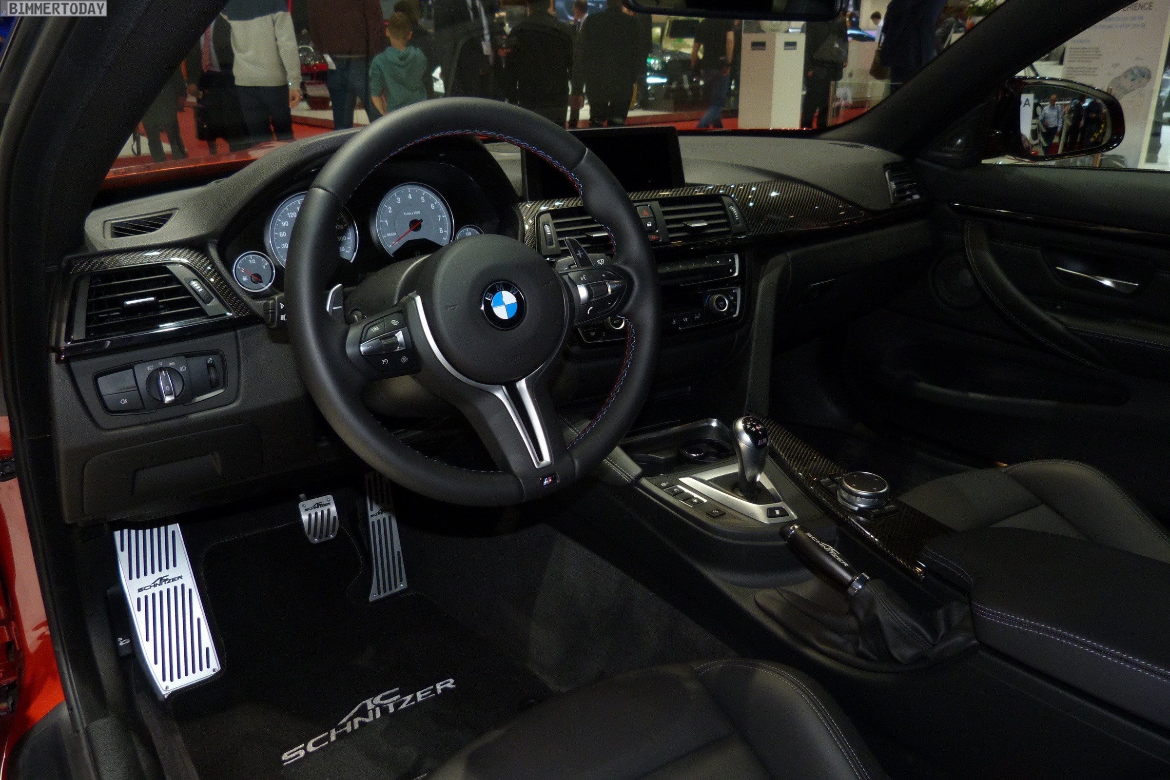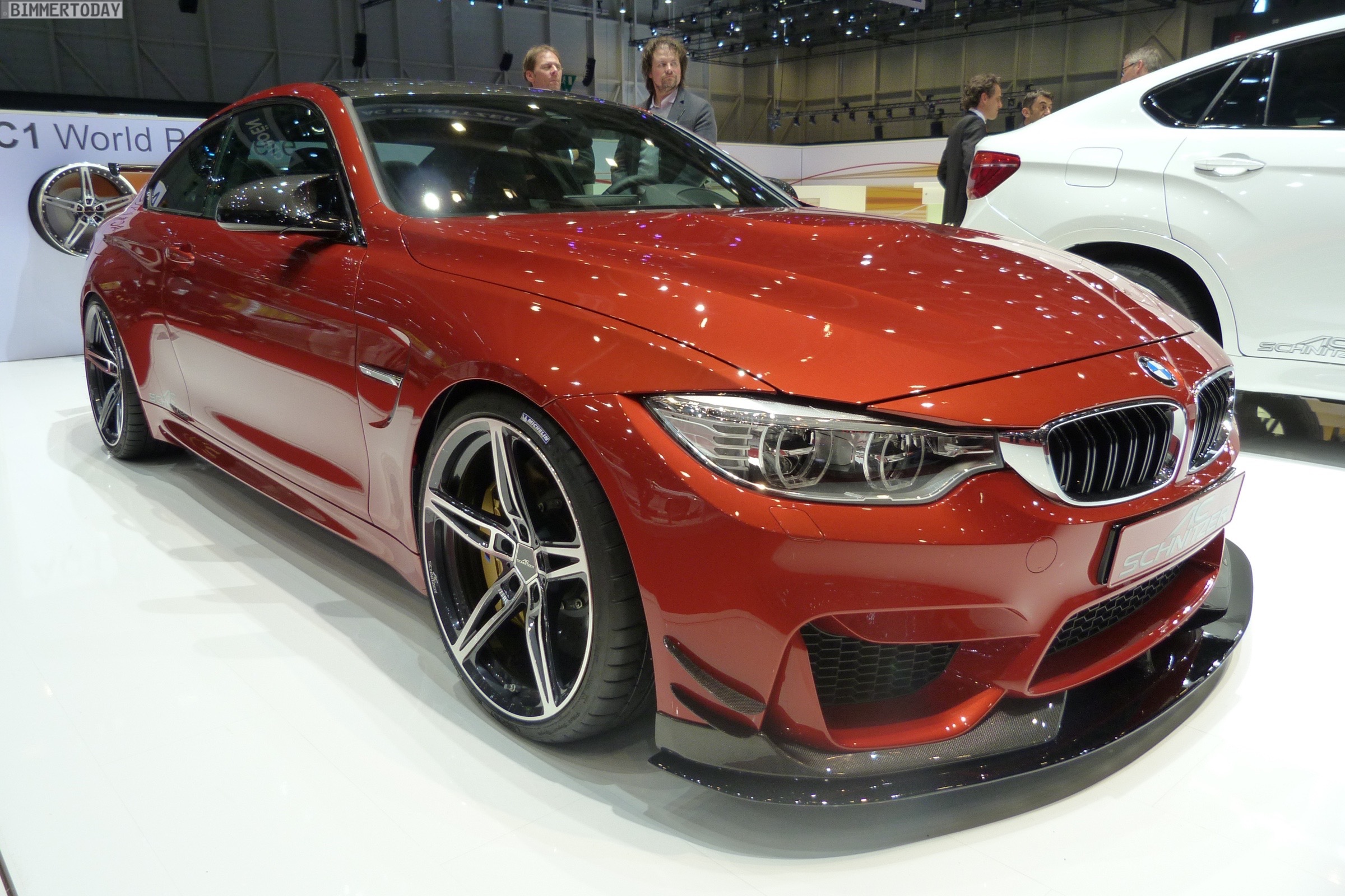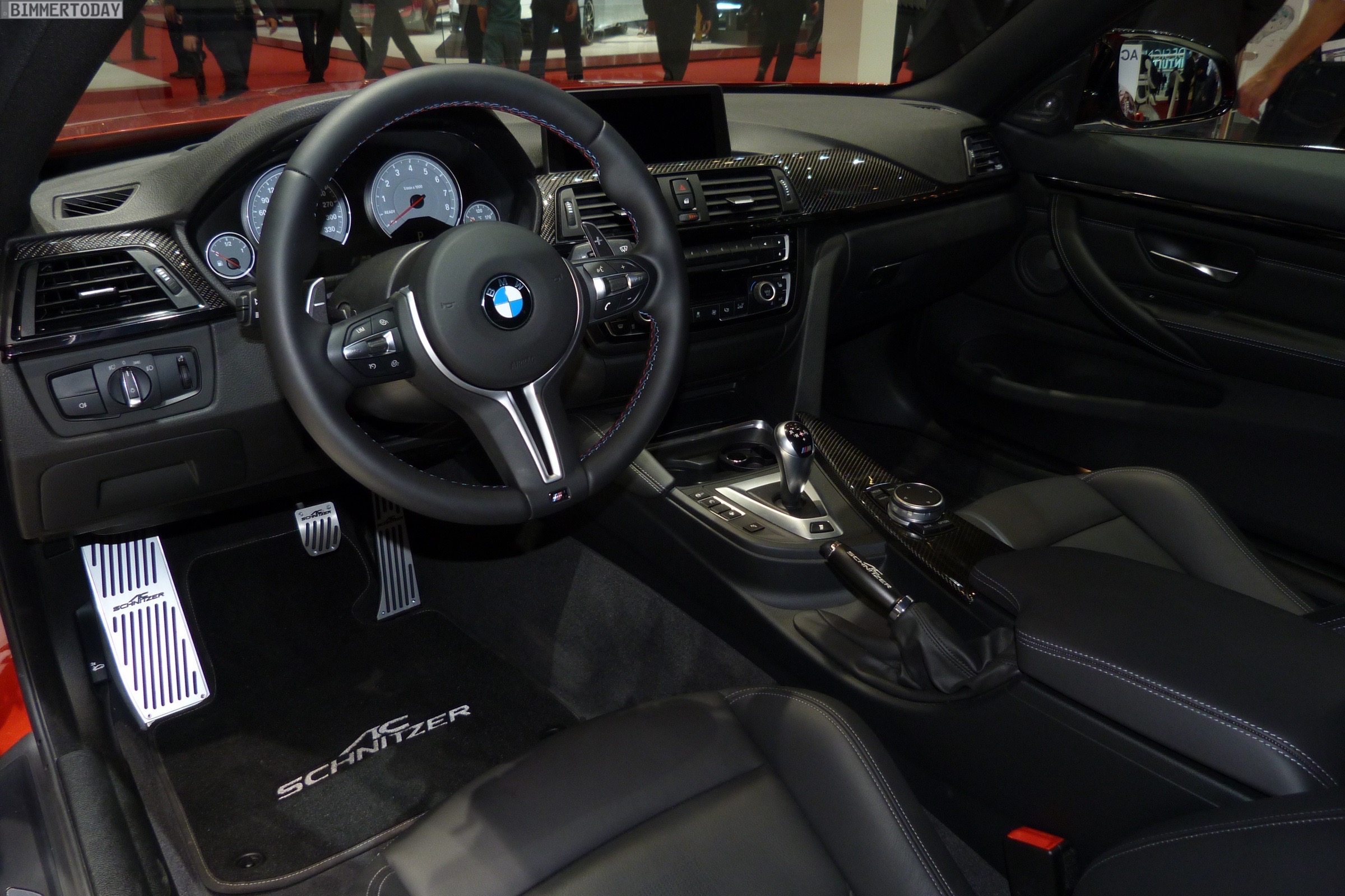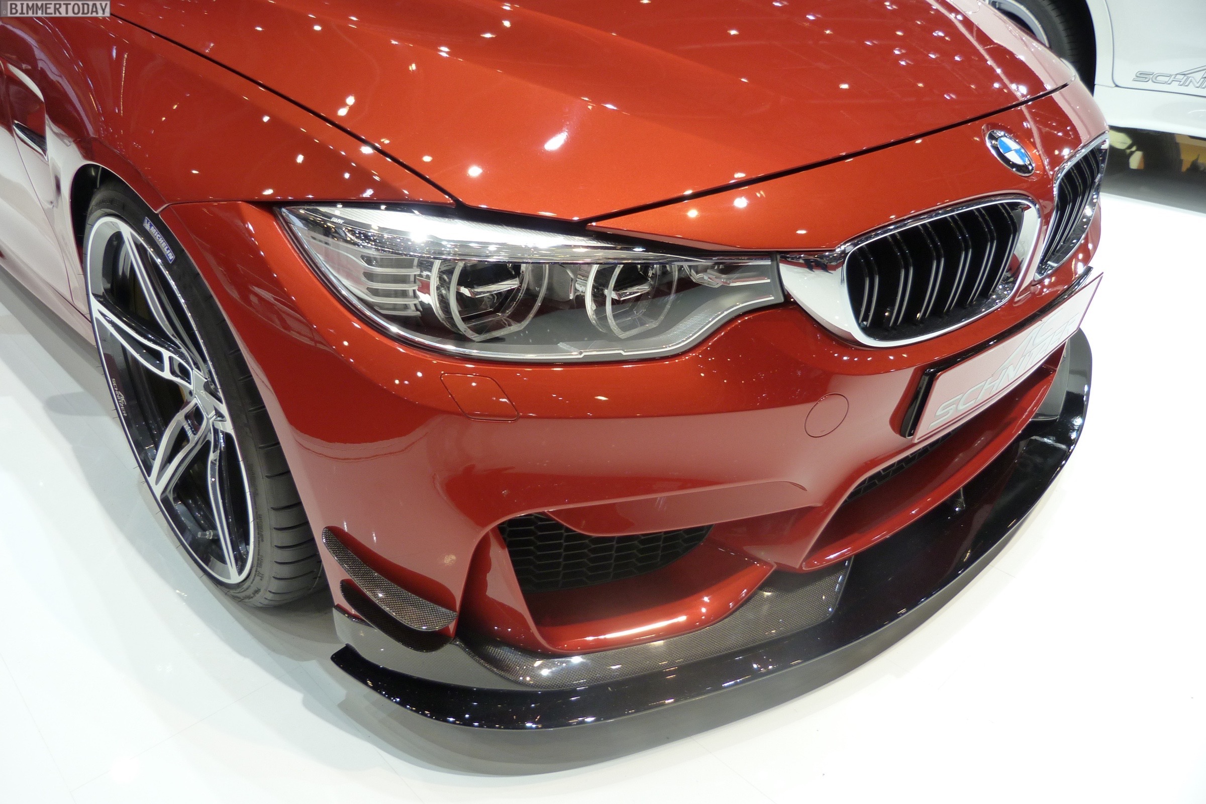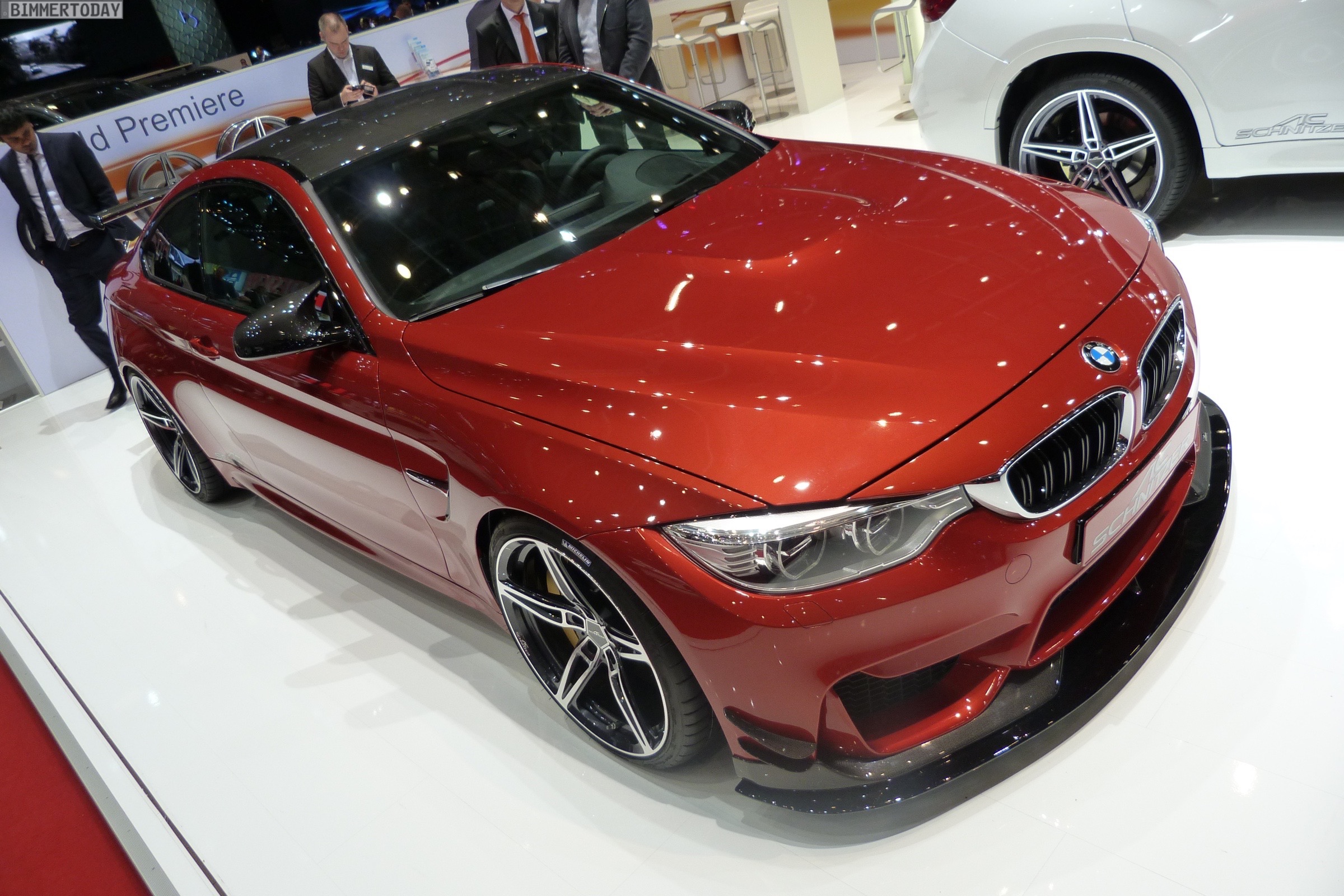 Einen besonders sportlichen Hingucker in Sakhir Orange präsentiert AC Schnitzer auf dem Genfer Autosalon 2015. Das BMW M4 Coupé mit zahlreichen Tuning-Komponenten aus Aachen präsentiert sich aus jeder Perspektive im Rennsport-Look und erinnert mit Frontsplitter, Flaps und großem Heckflügel eher an eine Motorsport-Variante als an ein Serienfahrzeug. Die auffälligen Bauteile dienen nicht nur der Optik, sondern sorgen auch für spürbar mehr Anpressdruck an Vorder- und Hinterachse.