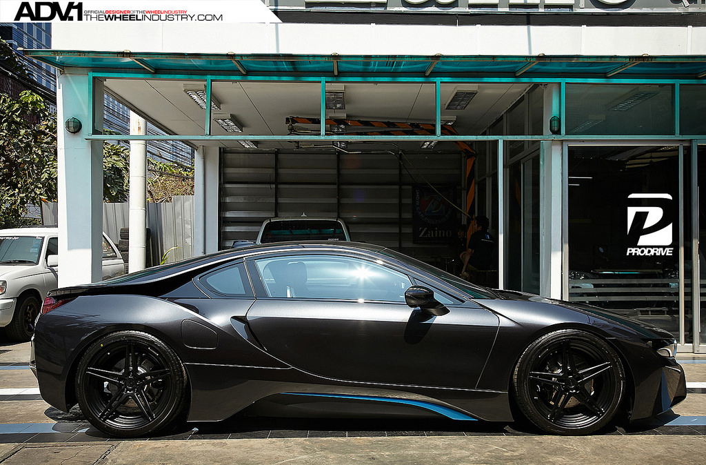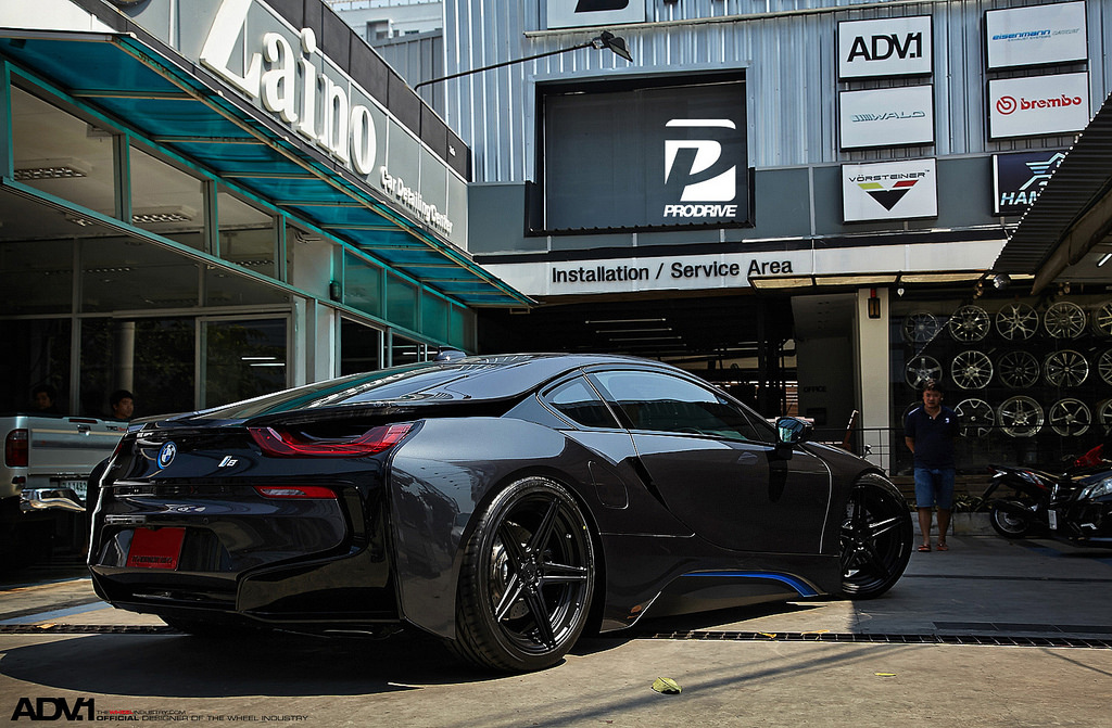 Dass der BMW i8 dennoch auch einfarbig eine gute Figur abgibt, zeigen die jüngsten Fotos der Felgen-Profis ADV.1. Neben den Leichtmetallrädern sehen wir den scheinbar komplett in Schwarz gehaltenen BMW i8 eines Kunden, der natürlich auch bei den Rädern keine andere Farbe bestellt hat: