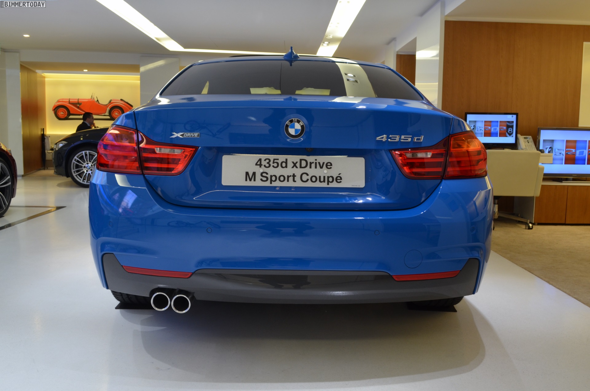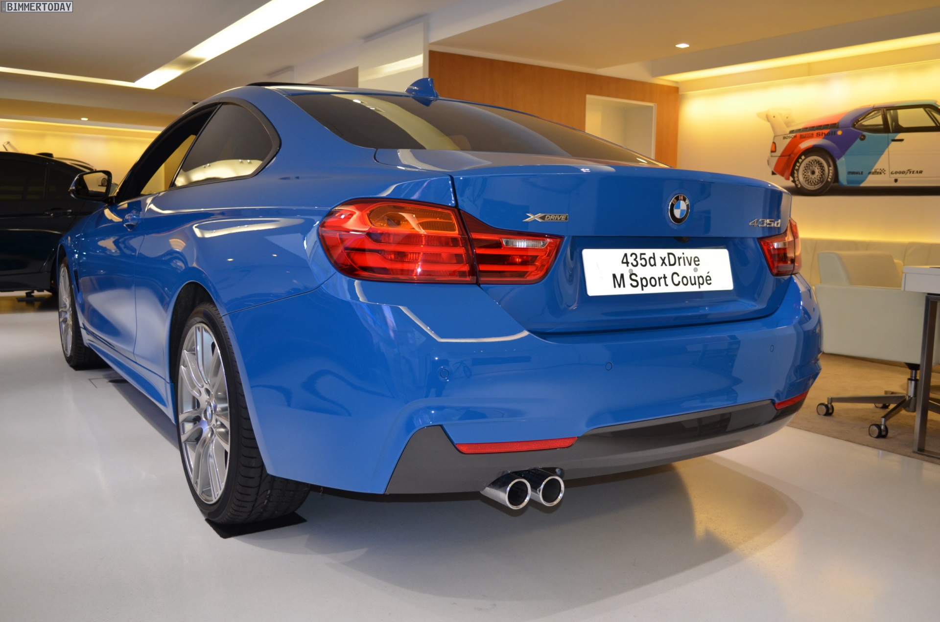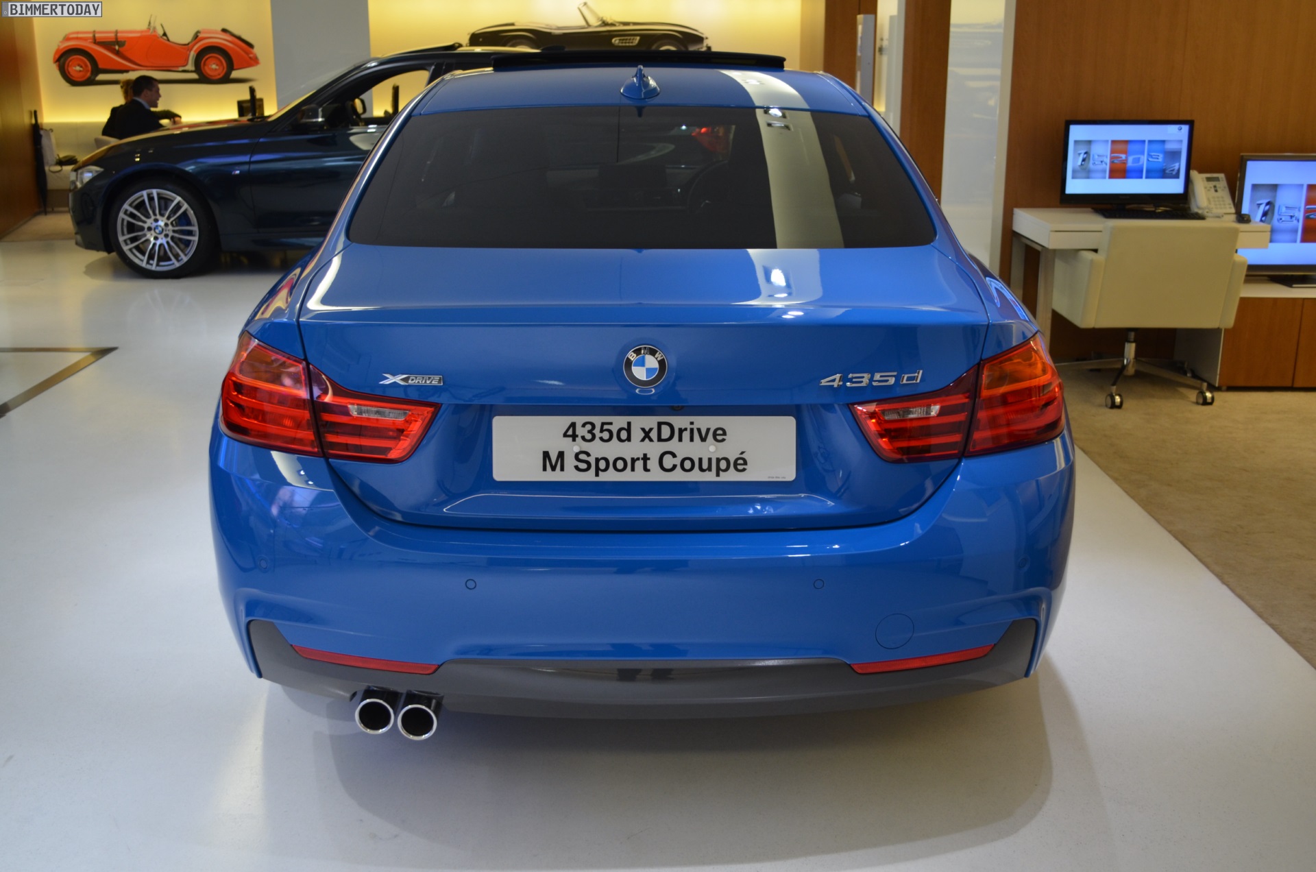 Der Biturbo-Diesel mit sechs Zylindern in Reihe leistet 313 PS und ist ausschließlich mit Allradantrieb xDrive erhältlich. In nur 4,7 Sekunden beschleunigt das BMW 435d xDrive Coupé auf Landstraßentempo, bei 250 km/h schiebt die Elektronik weiterer Beschleunigung einen künstlichen Riegel vor. Die Preise für den Top-Diesel beginnen in Deutschland bei 54.600 Euro.