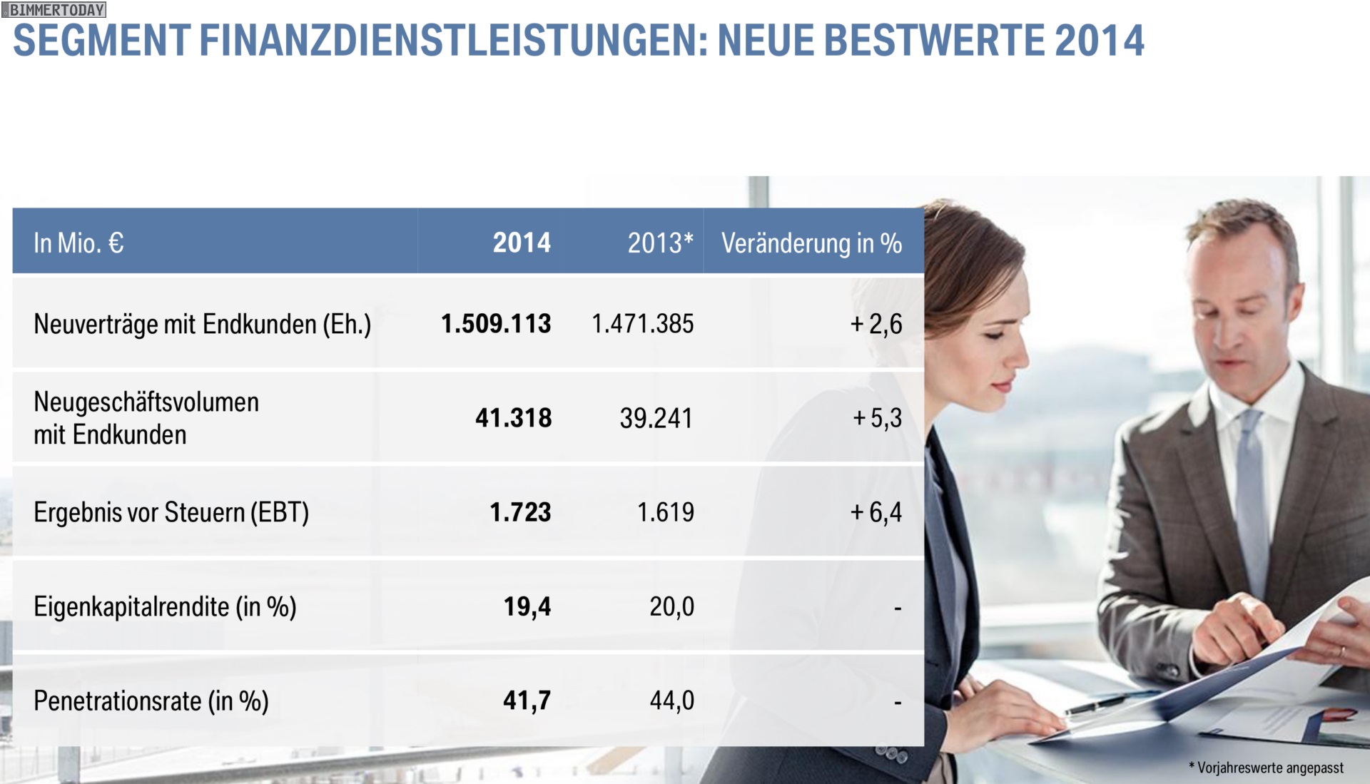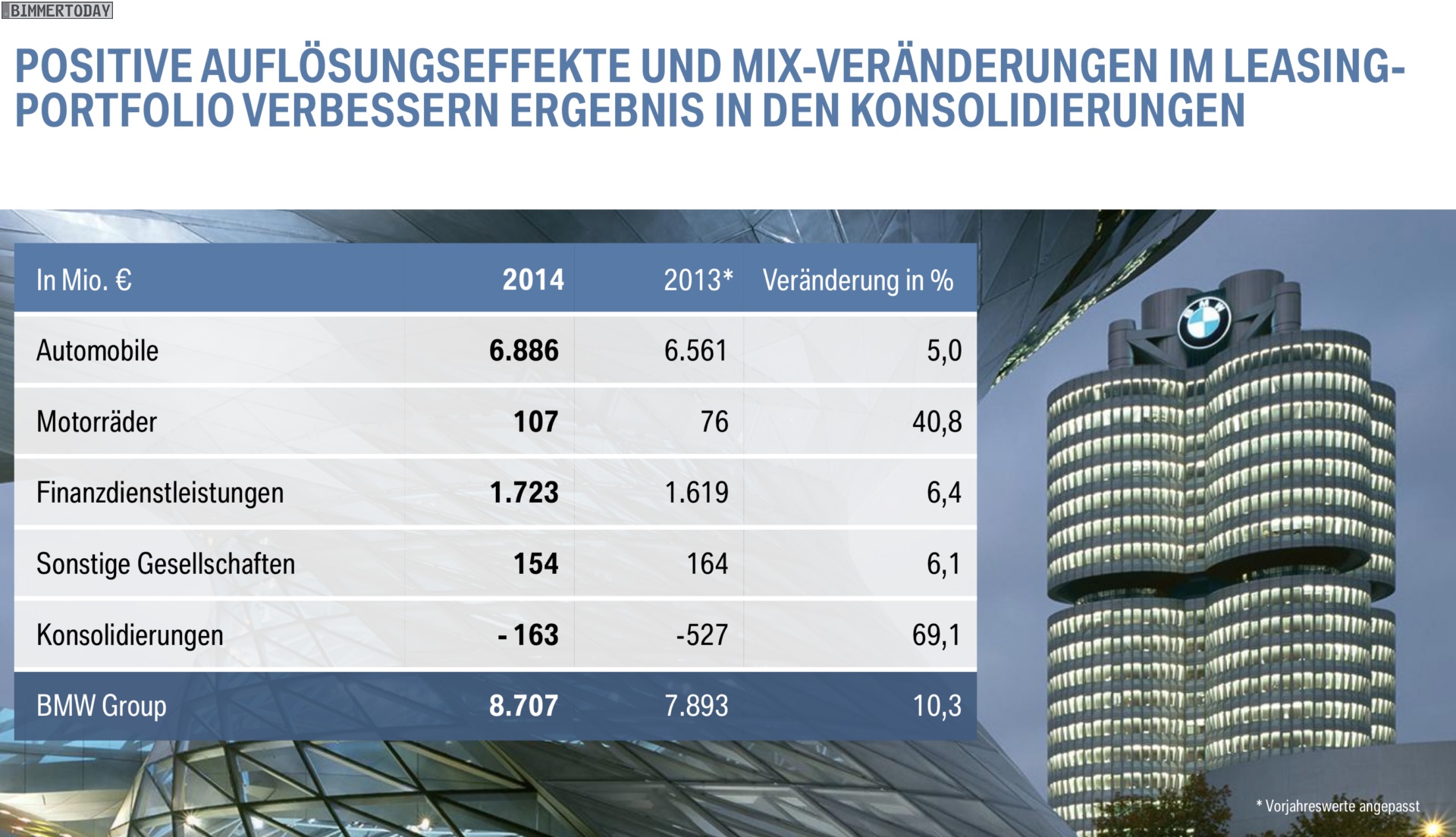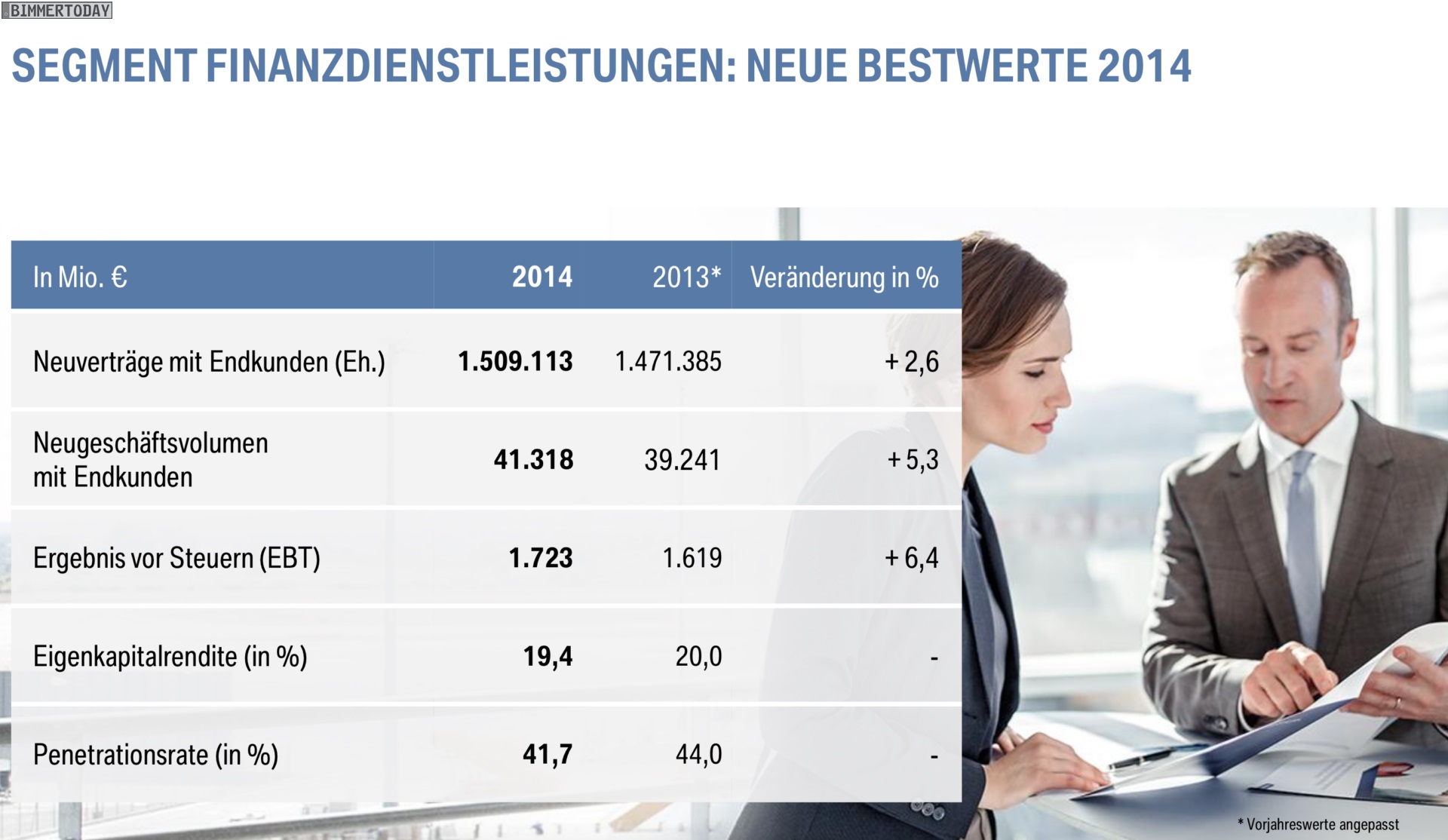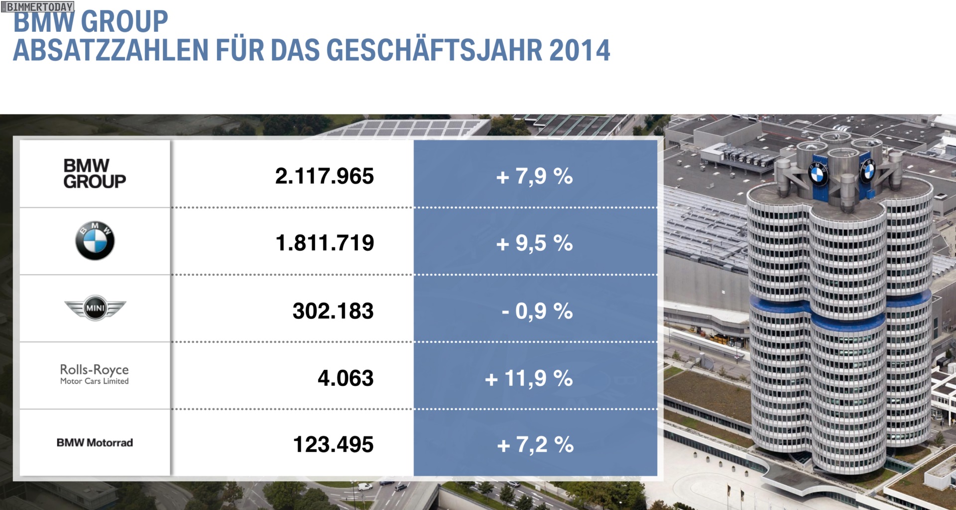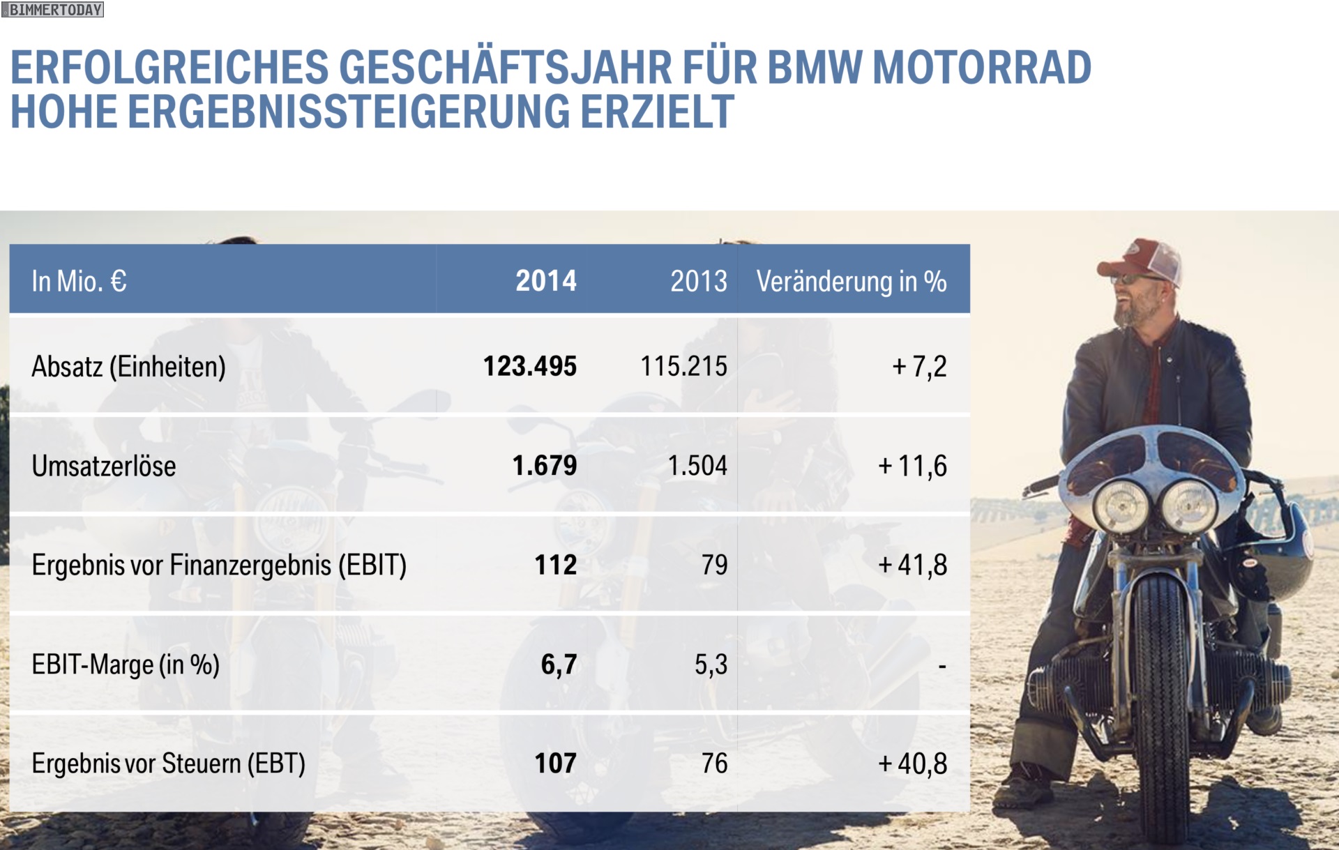 Dr. Norbert Reithofer (Vorsitzender des Vorstands der BMW AG): “Im Geschäftsjahr 2014 haben wir unsere erfolgreiche Entwicklung seit der globalen Finanz und Wirtschaftskrise 2008 / 2009 fortgesetzt. In einem schwierigen Umfeld hatten wir uns ambitionierte Ziele gesetzt: einen Absatzrekord mit über 2 Millionen Automobilen; einen neuen Bestwert beim Konzernergebnis vor Steuern, der deutlich über dem Wert des Vorjahres liegt; eine EBITMarge im Segment Automobile im Zielkorridor von 8 bis 10 Prozent.