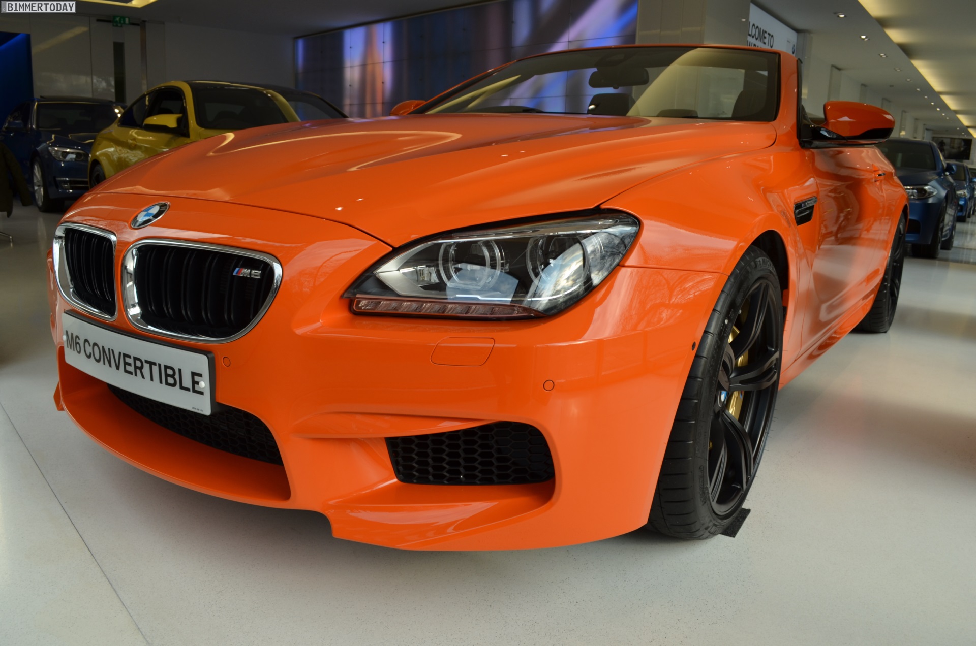 Nicht jede Farbe hält das mit ihrem Namen einhergehende Versprechen, bei der BMW Individual-Lackierung Feuerorange sind derartige Befürchtungen aber völlig unangebracht. BMW Park Lane in London zeigt am Beispiel eines BMW M6 Cabrio F12, wie auffällig die Farbe sein kann und macht das üppig motorisierte Luxus-Cabrio damit zu einem der Hingucker im prominent bestückten Showroom.