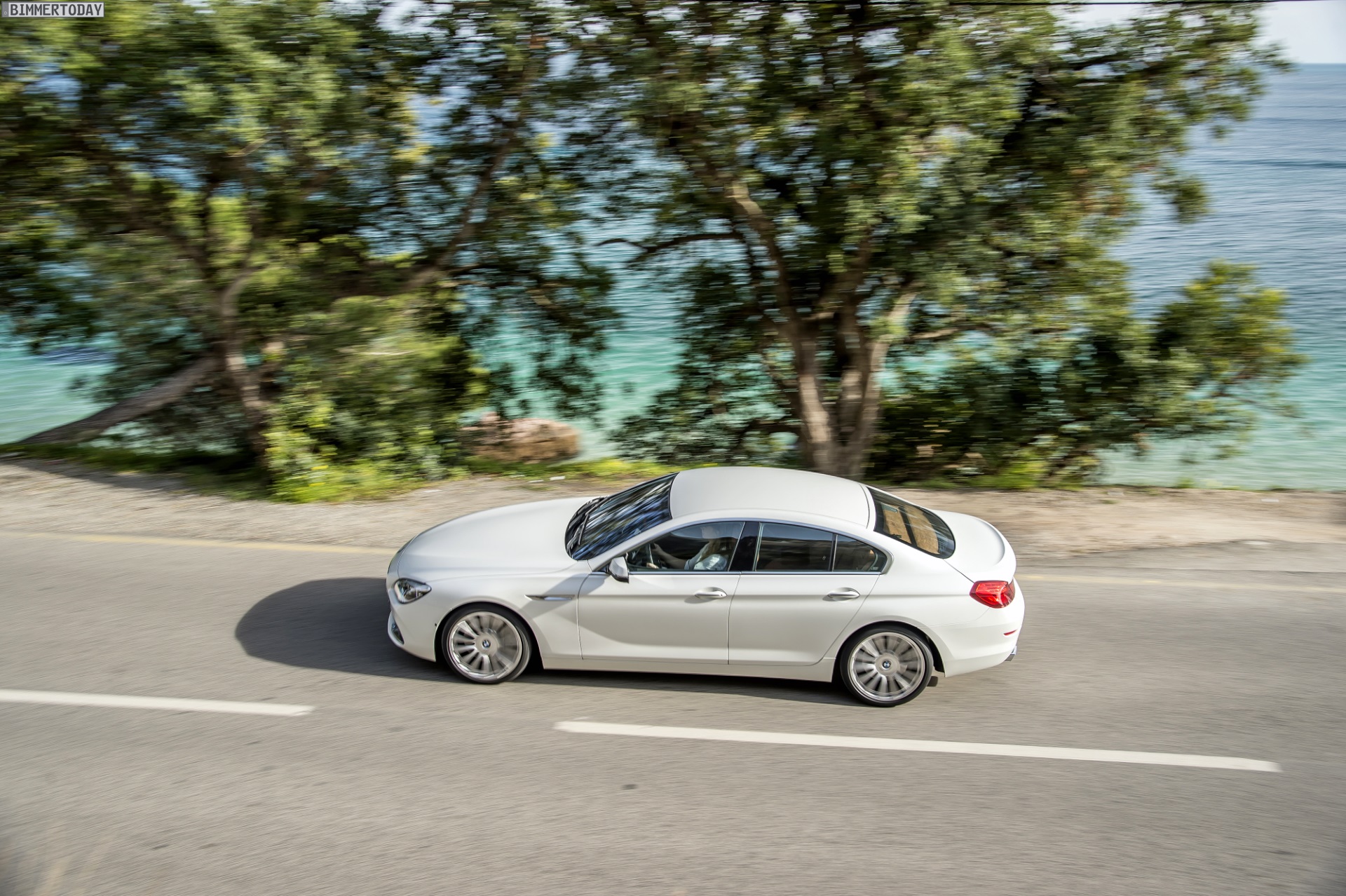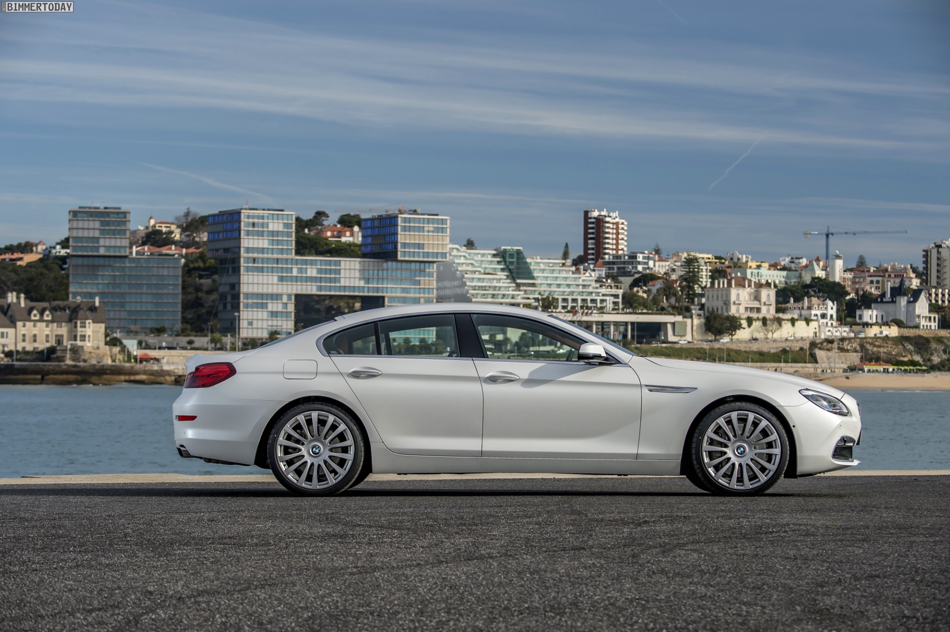 Mit seiner matten Lackierung in BMW Frozen Brilliant White zieht das über fünf Meter lange und 139,2 Zentimeter flache BMW 6er Gran Coupé noch mehr Blicke an und hebt sich zugleich noch stärker aus der automobilen Masse heraus. Die BMW Individual-Felgen V-Speiche 374 I in 20 Zoll harmonieren perfekt mit den eleganten Linien des viertürigen Luxus-Gleiters.