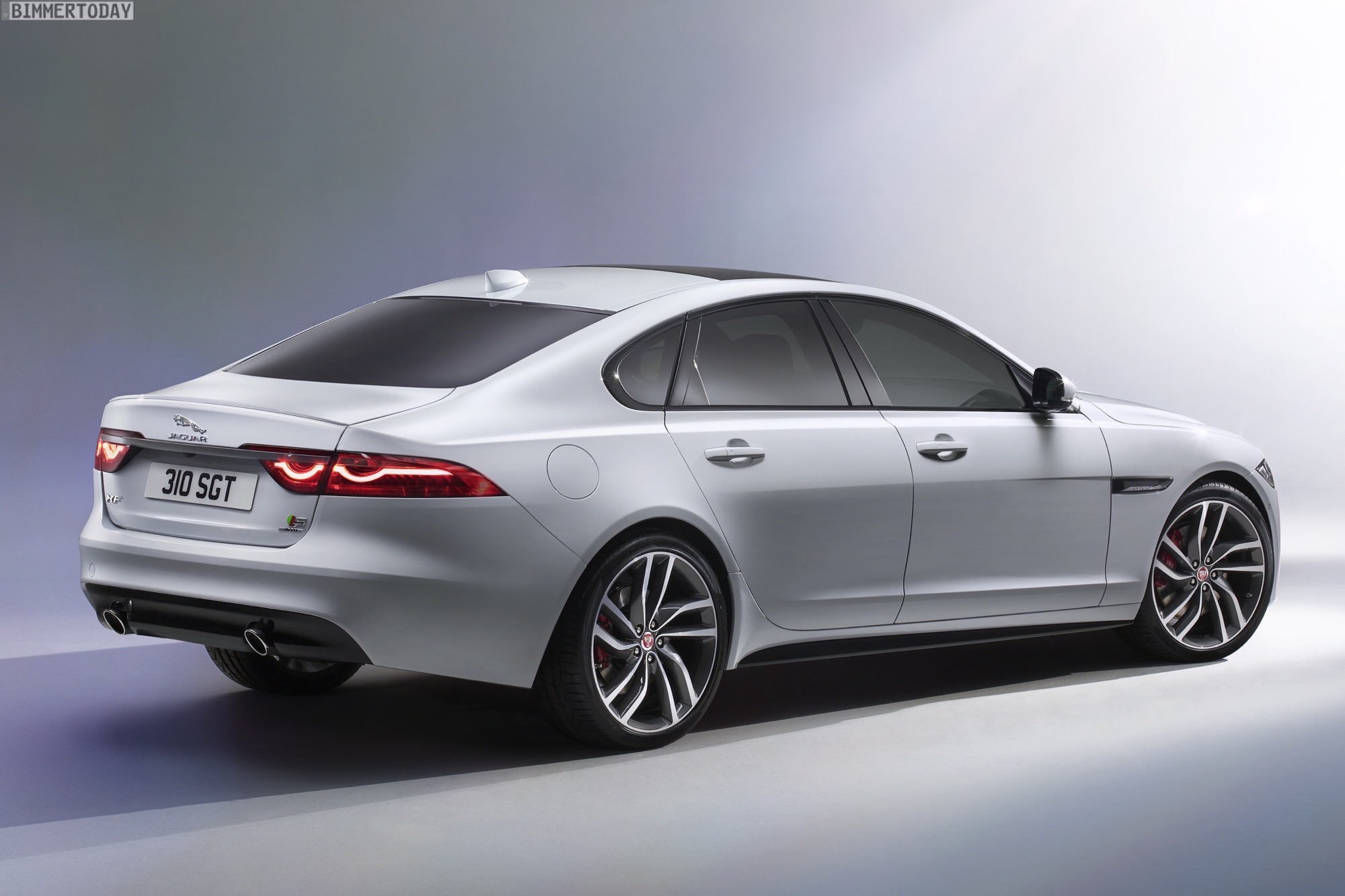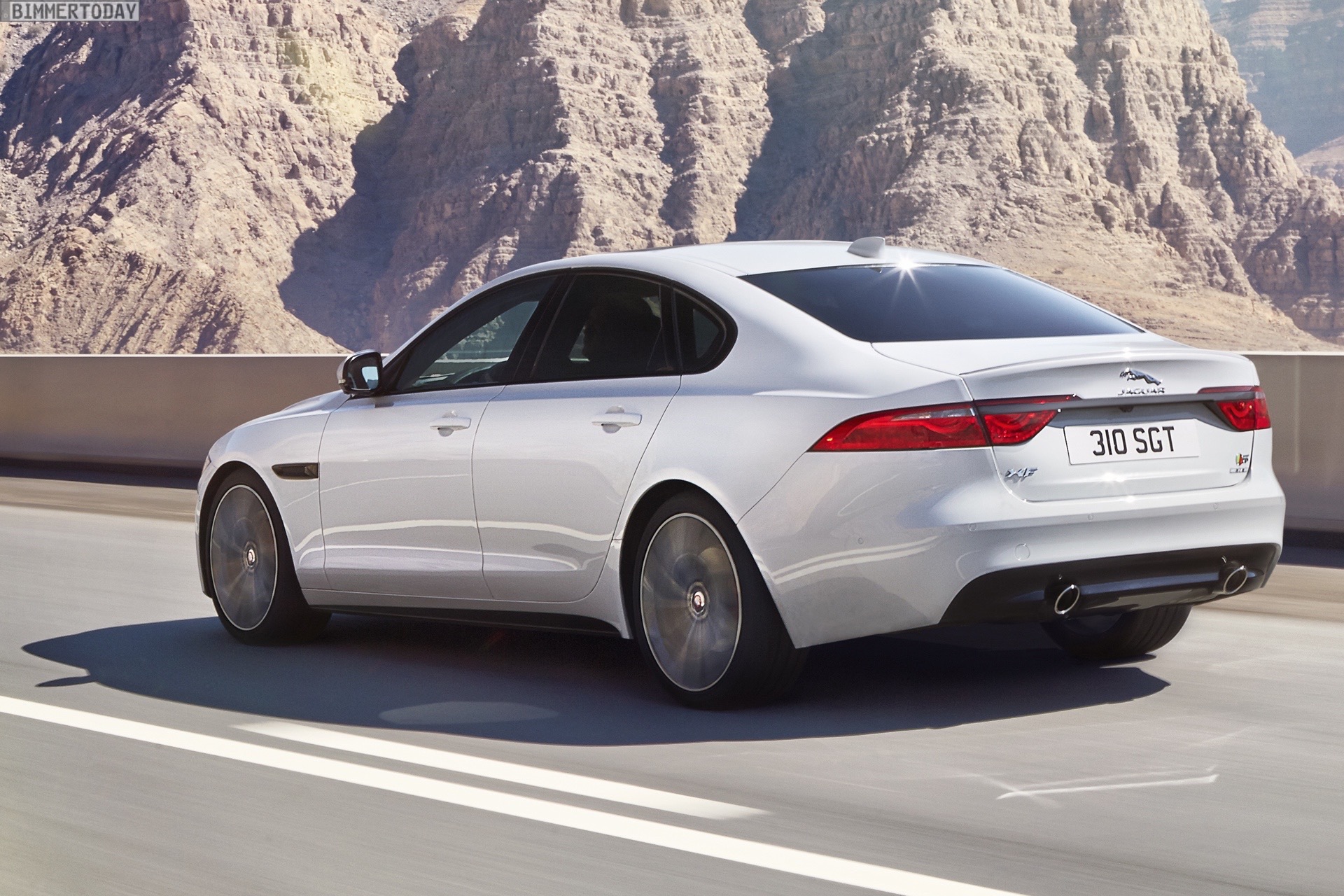 Das technische Layout des Jaguar XF 2015 erinnert mit Hinterradantrieb, ausgeglichener Gewichtsverteilung, längs montierten Motoren und optionalem Allradantrieb an den in München entwickelten weltweiten Marktführer im Segment der Premium-Oberklasse.