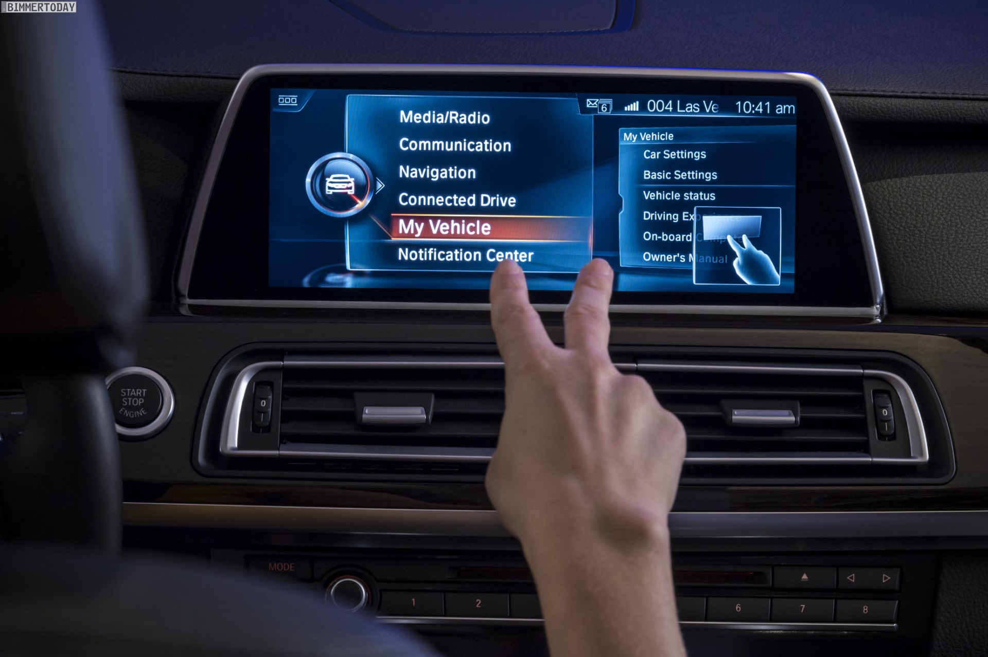 Ein weiterer Teil des Bedienkonzepts rund um eine neue BMW iDrive-Generation wurde bereits Anfang des Jahres auf der CES enthüllt, erstmals wird das Infotainment-Display in der Mitte des Armaturenbretts als Touchscreen ausgeführt sein. Obwohl weiterhin alle Eingaben mit dem iDrive-Controller erledigt werden können, soll die optionale Bedienung per Fingerzeig das iDrive-System noch intuitiver bedienbar machen.