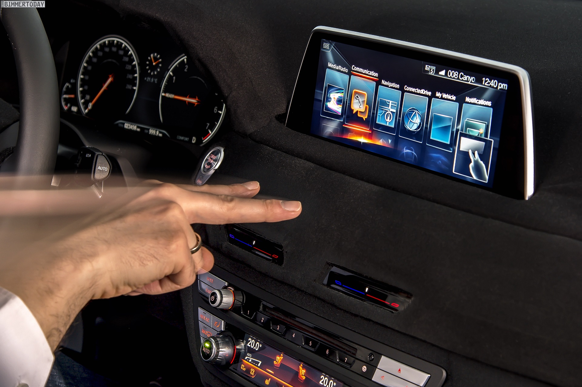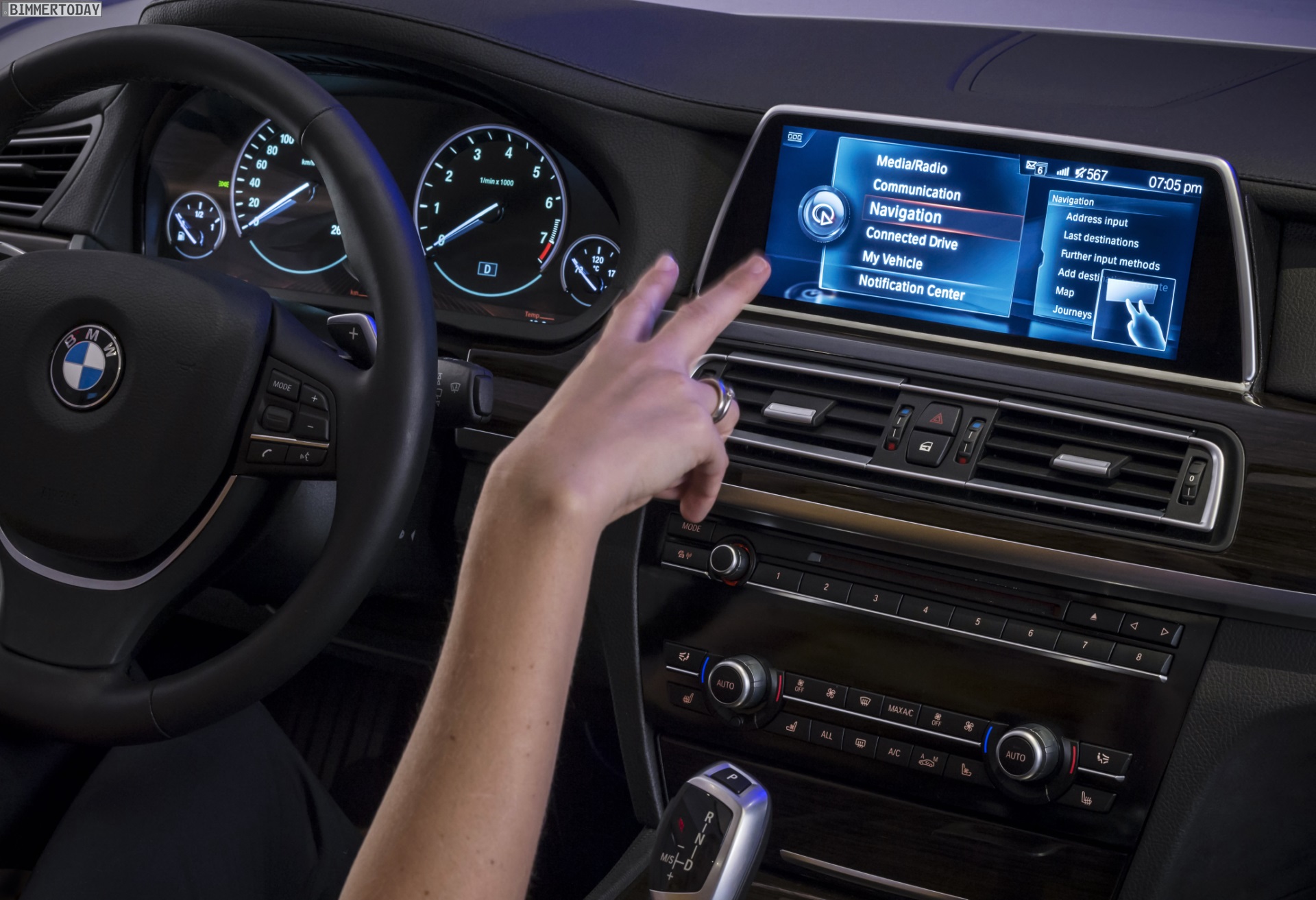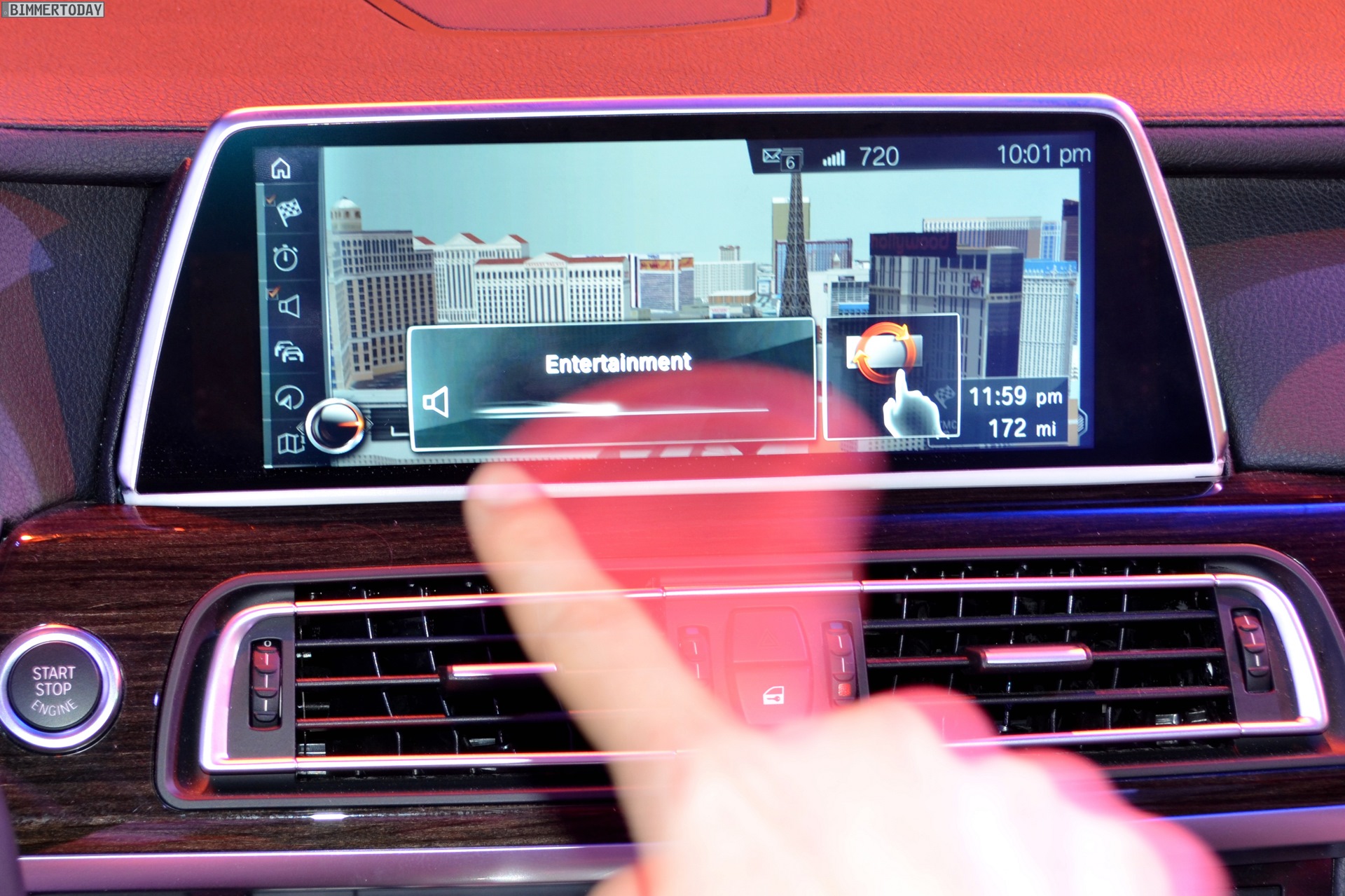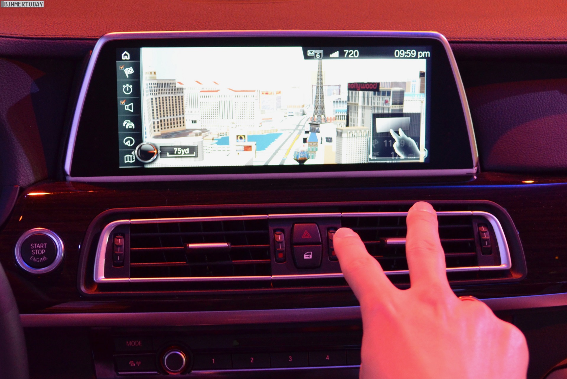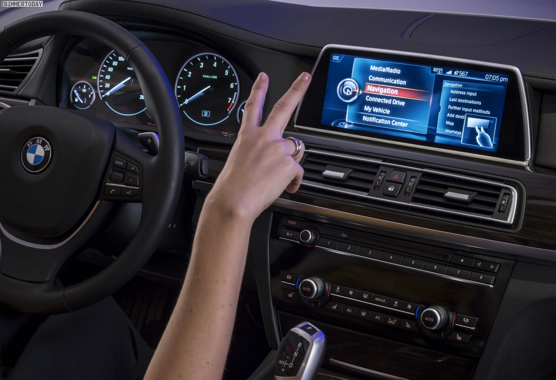 Unser Hands-Off-Video zeigt die neue BMW Gestiksteuerung in einem Cockpit-Mockup, das eine abgesteckte Version des neuen BMW iDrive-Systems mit dem Design des auslaufenden F01 kombiniert. Das zentrale Infotainment-Display ist dabei erstmals in einem BMW als Touchscreen ausgeführt und erlaubt nicht nur die gewohnte Steuerung per Sprache oder iDrive-Controller, sondern ermöglicht auch intuitive Berührungen des Bildschirms wie auf Smartphone oder Tablet.