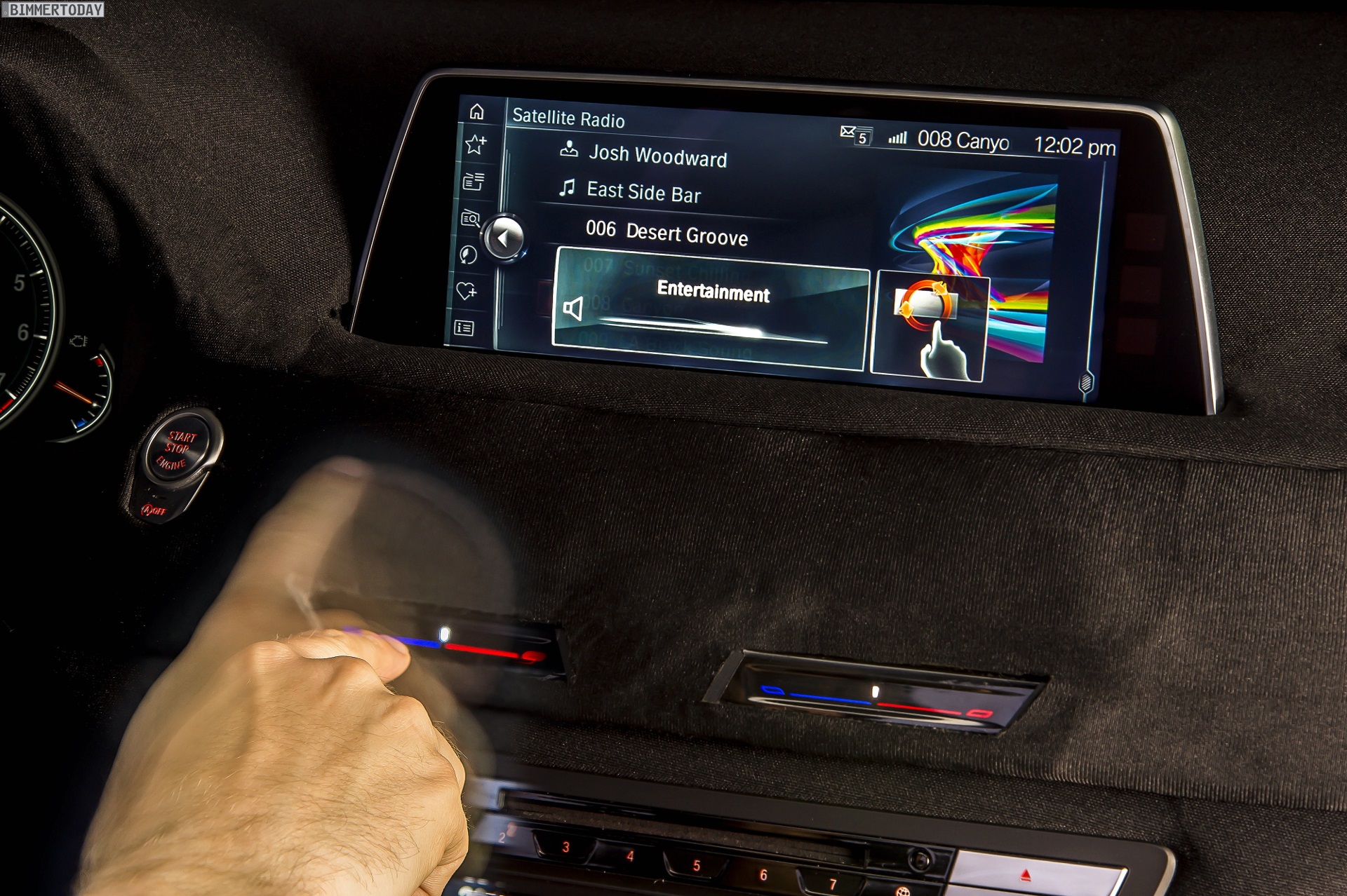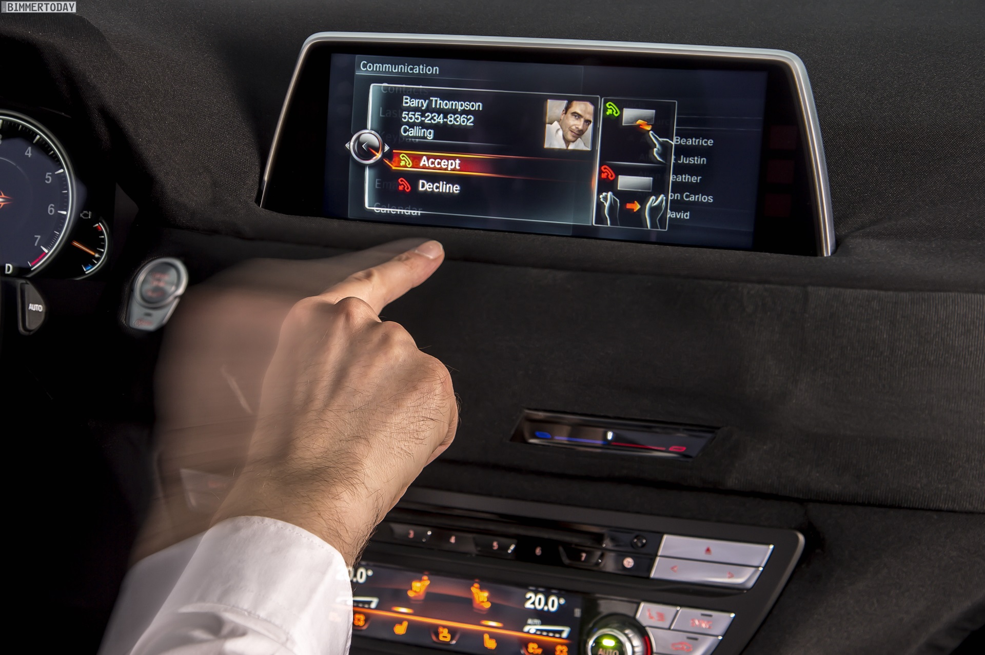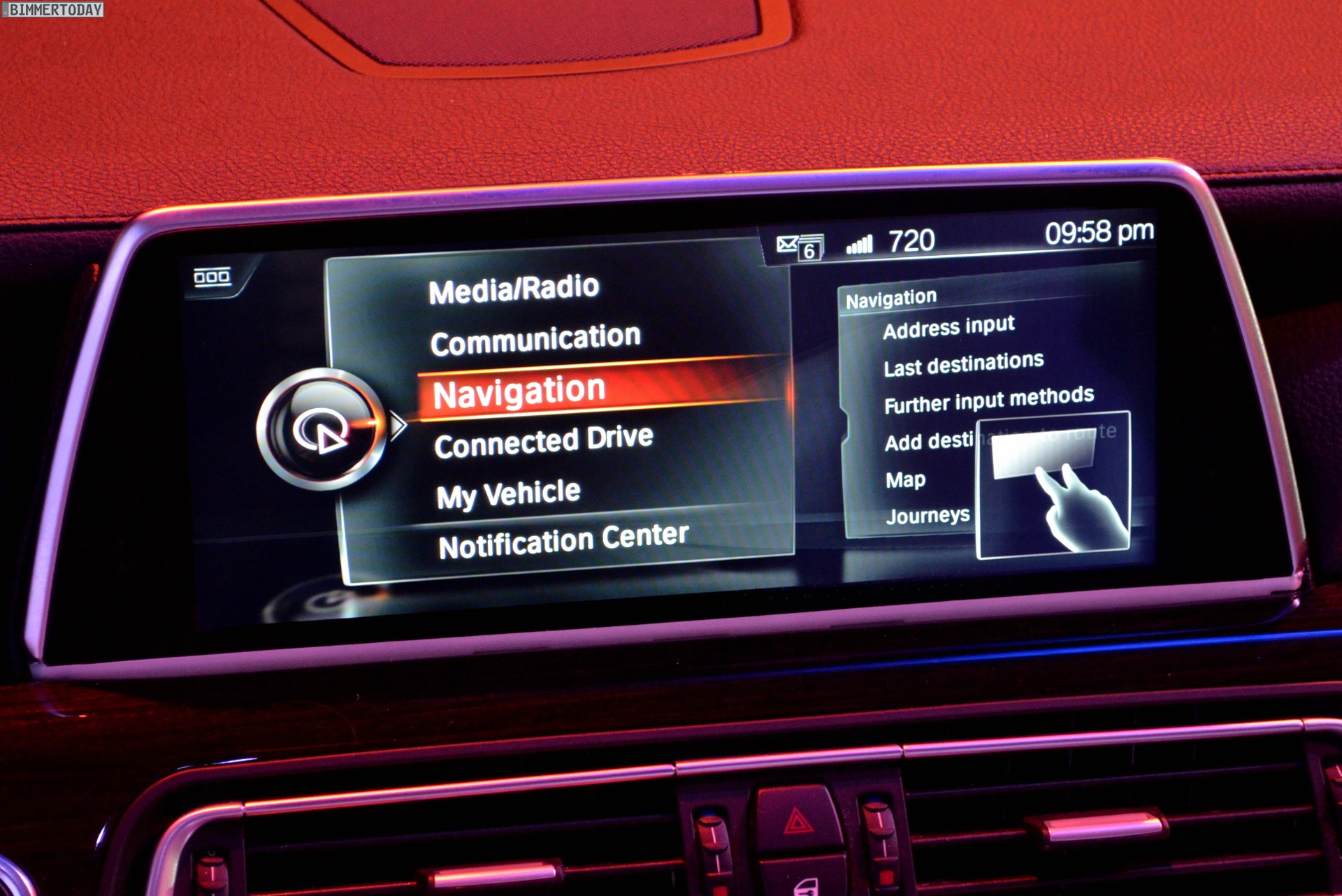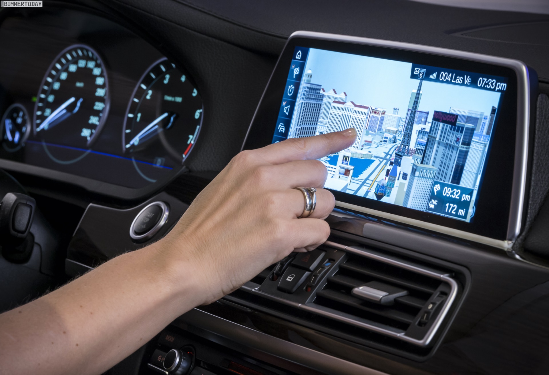 Unser Hands-Off-Video zeigt die neue BMW Gestiksteuerung in einem Cockpit-Mockup, das eine abgesteckte Version des neuen BMW iDrive-Systems mit dem Design des auslaufenden F01 kombiniert. Das zentrale Infotainment-Display ist dabei erstmals in einem BMW als Touchscreen ausgeführt und erlaubt nicht nur die gewohnte Steuerung per Sprache oder iDrive-Controller, sondern ermöglicht auch intuitive Berührungen des Bildschirms wie auf Smartphone oder Tablet.