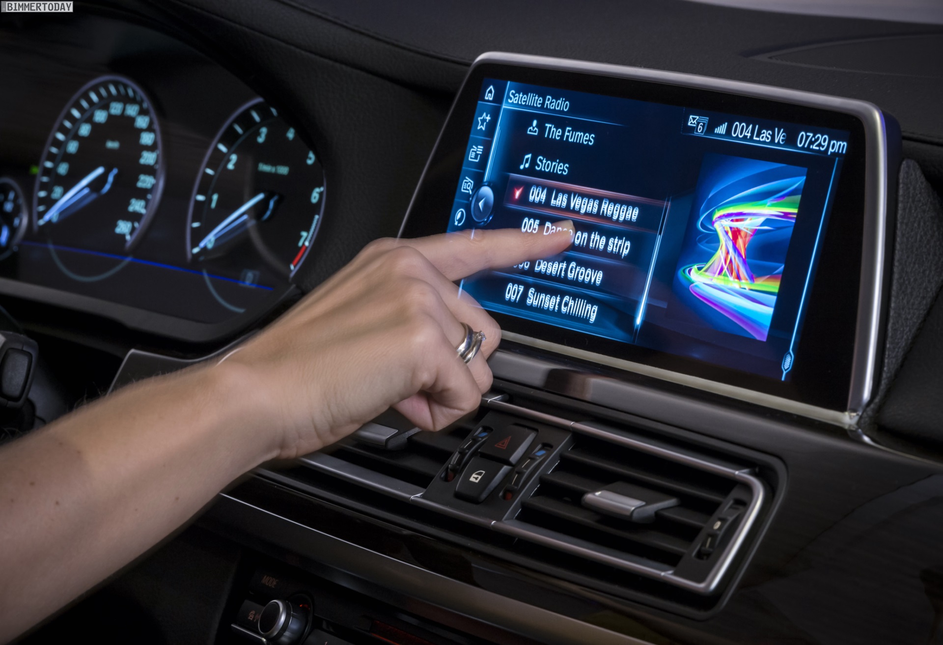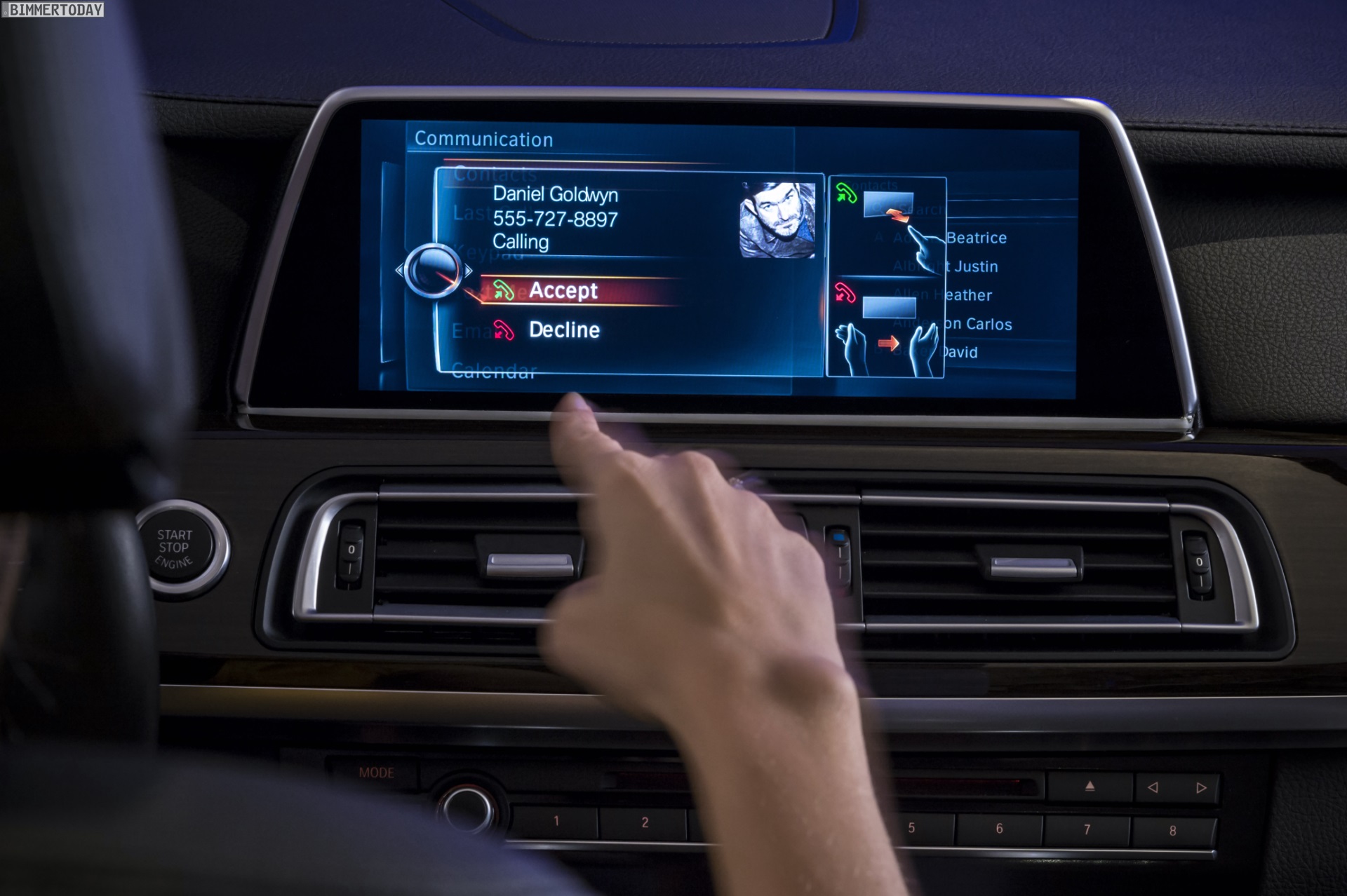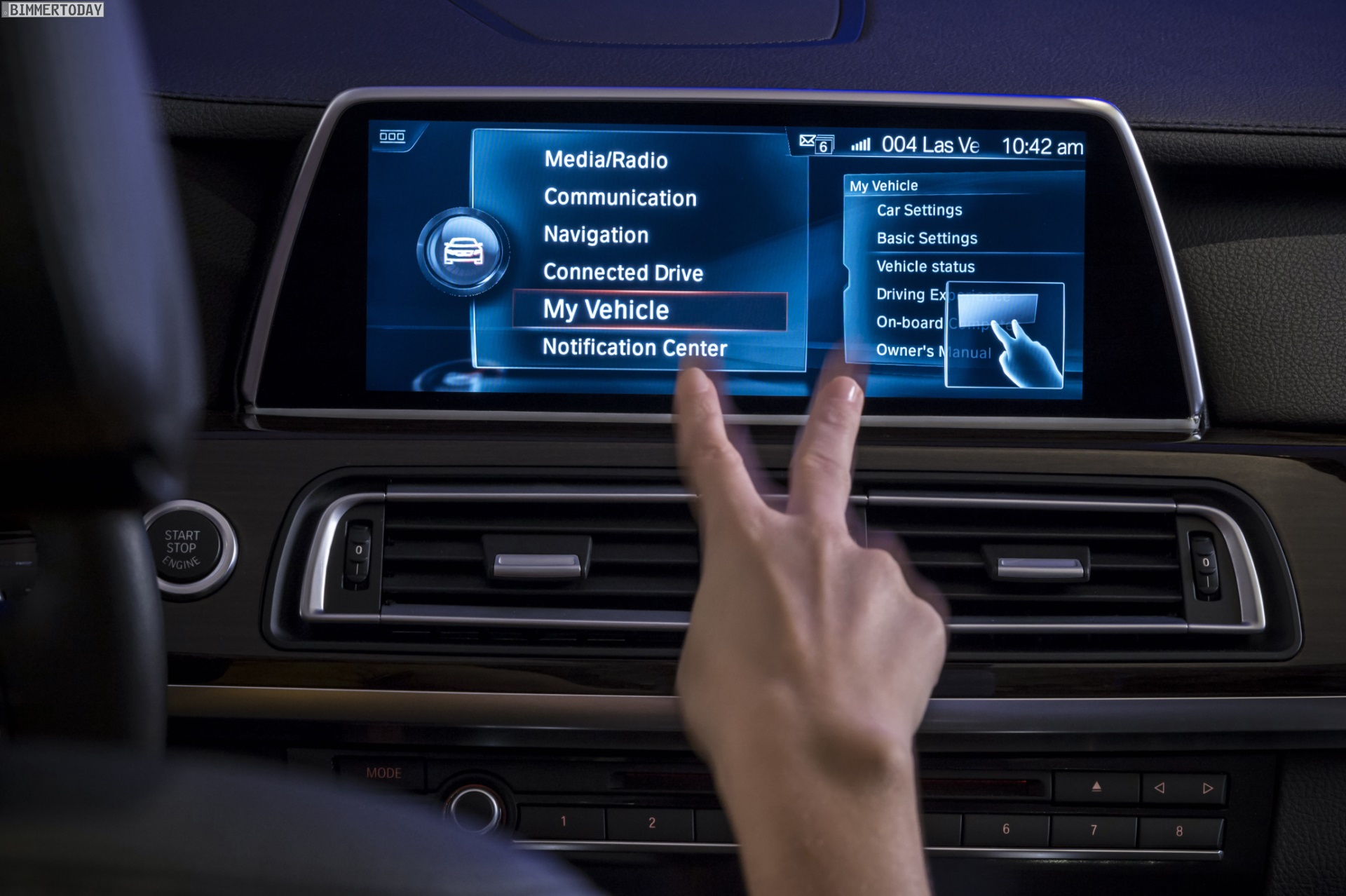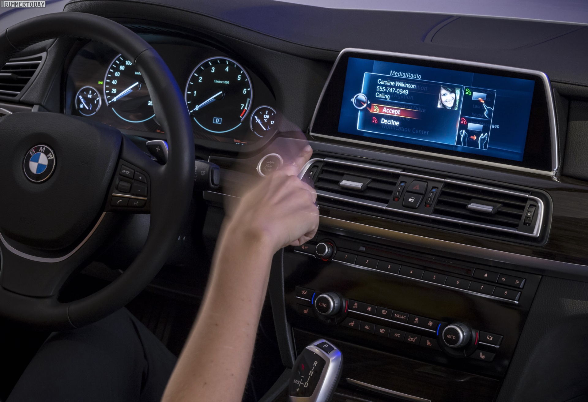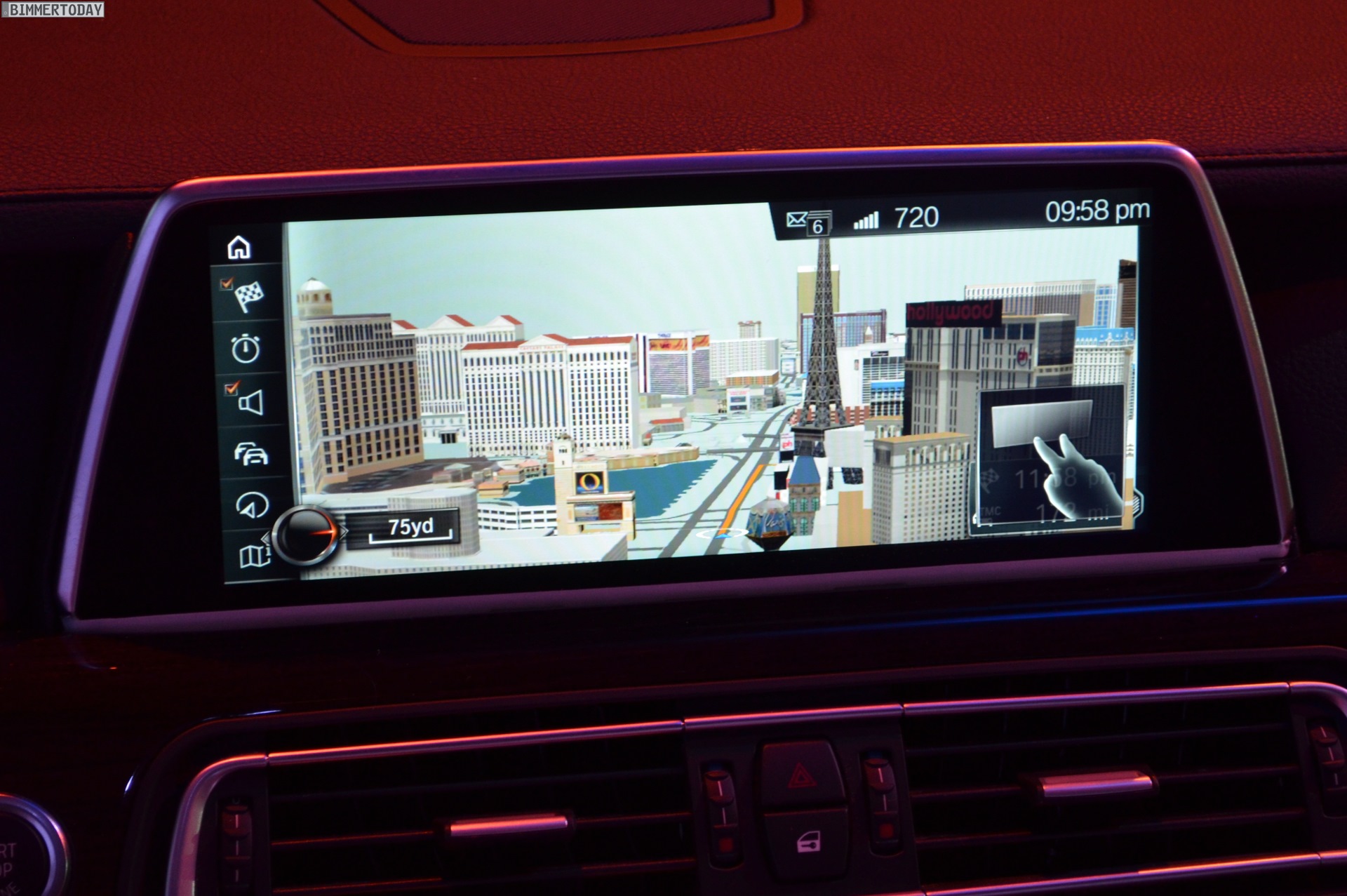 Unser Hands-Off-Video zeigt die neue BMW Gestiksteuerung in einem Cockpit-Mockup, das eine abgesteckte Version des neuen BMW iDrive-Systems mit dem Design des auslaufenden F01 kombiniert. Das zentrale Infotainment-Display ist dabei erstmals in einem BMW als Touchscreen ausgeführt und erlaubt nicht nur die gewohnte Steuerung per Sprache oder iDrive-Controller, sondern ermöglicht auch intuitive Berührungen des Bildschirms wie auf Smartphone oder Tablet.