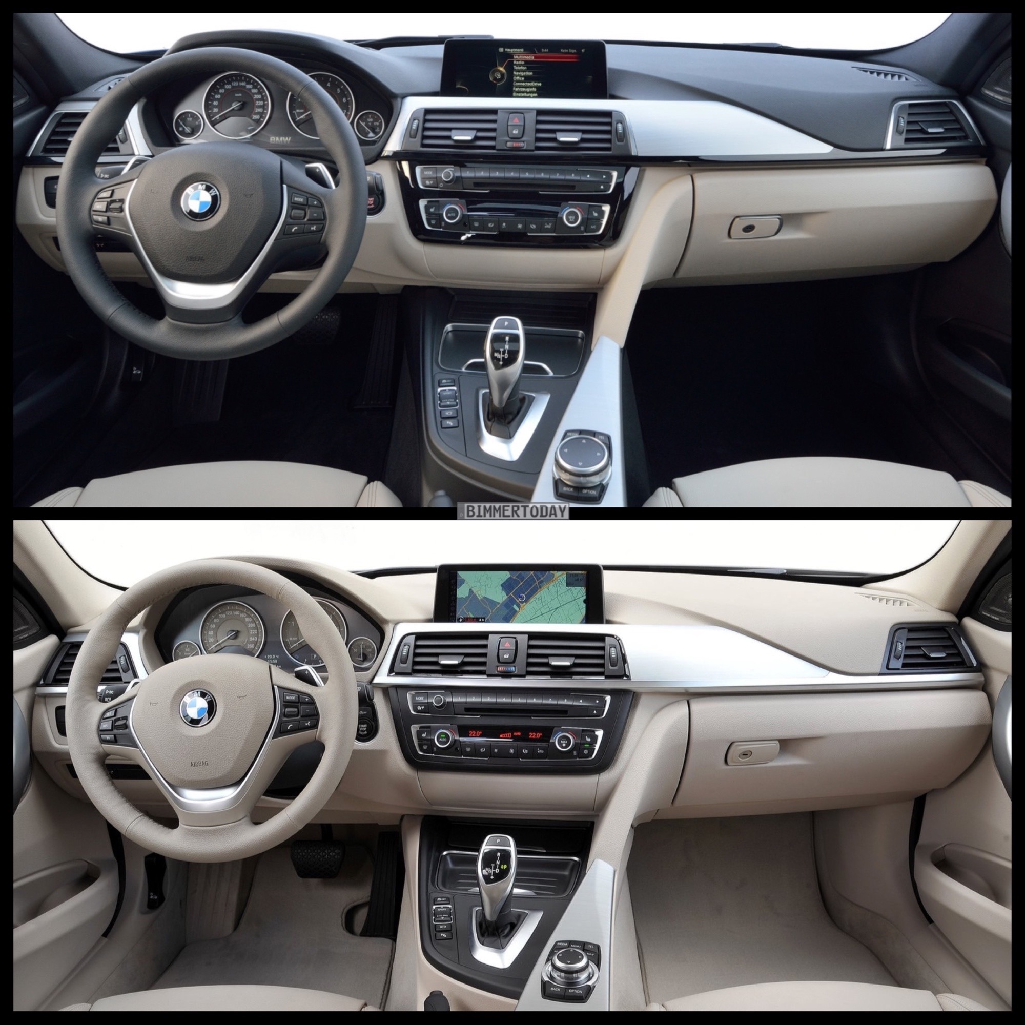 Auch im Innenraum sind die Änderungen ein Fall für F30-Kenner: Genau wie im 1er Facelift (F20 LCI) kommt ein überarbeitetes Bedienteil für die Klimaanlage zum Einsatz und rund um Instrumente der Mittelkonsole wird künftig Kunststoff mit einer Hochglanz-Oberfläche verwendet. Hinzu kommen einige wenige zusätzliche Chrom-Applikationen und das überarbeitete Navigationssystem, genau wie beim Gesamtfahrzeug konzentrieren sich die Änderungen aber auch beim Navi auf die Technik.