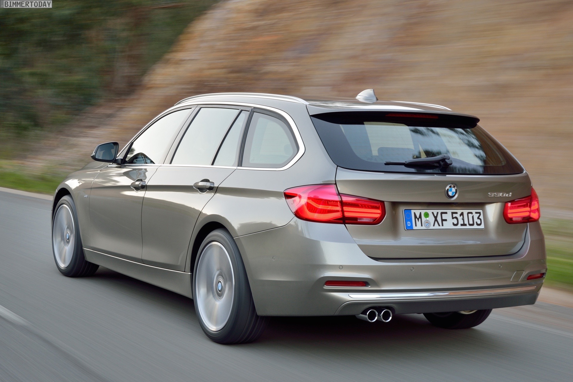 Genau wie bei der Limousine fallen die äußerlichen Veränderungen des BMW 3er Facelift 2015 auch beim Touring sehr dezent aus. Unser Bild-Vergleich zeigt den beliebten Mittelklasse-Kombi vor und nach dem Facelift direkt nebeneinander, so lassen sich die geänderten Schürzen und natürlich das völlig neu gezeichnete Innenleben von Scheinwerfern und Rückleuchten besonders gut erkennen.