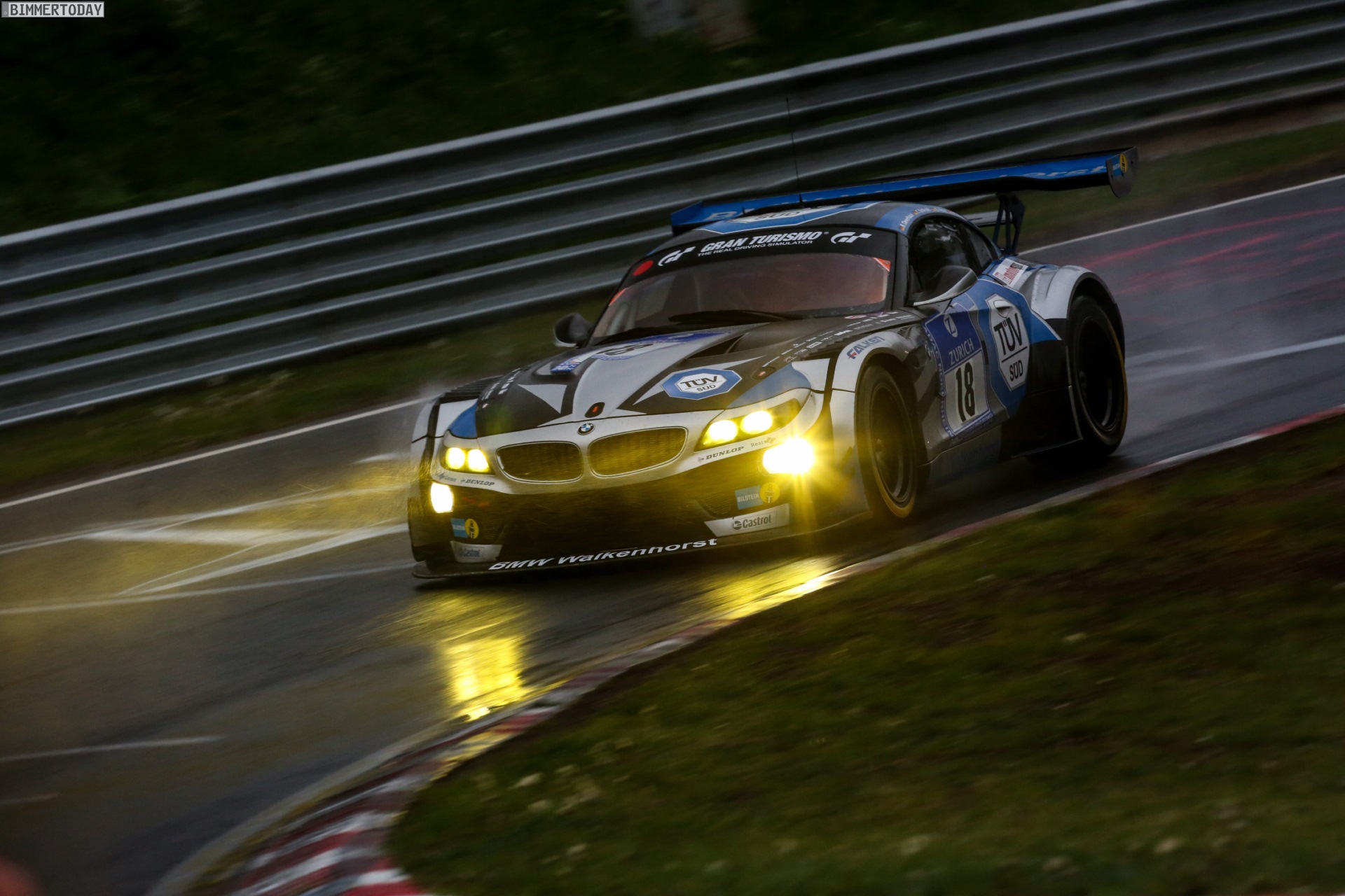 Einsetzender Regen hat die Startphase des 24 Stunden-Rennens auf der Nürburgring Nordschleife entscheidend beeinflusst. Drei der vier nach einem starken Qualifying von den Plätzen 1, 3, 4 und 6 gestarteten BMW Z4 GT3 der Teams Schubert Motorsport und Marc VDS Racing belegten unmittelbar nach dem Start die ersten drei Ränge, doch der kurz nach den ersten Boxenstopps einsetzende Regen wirbelte das Klassement kräftig durcheinander.