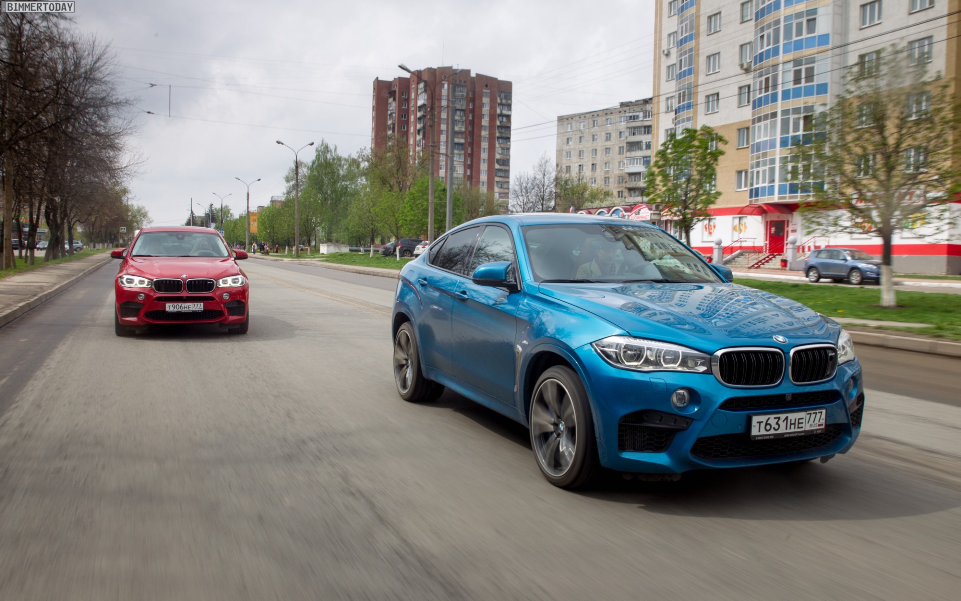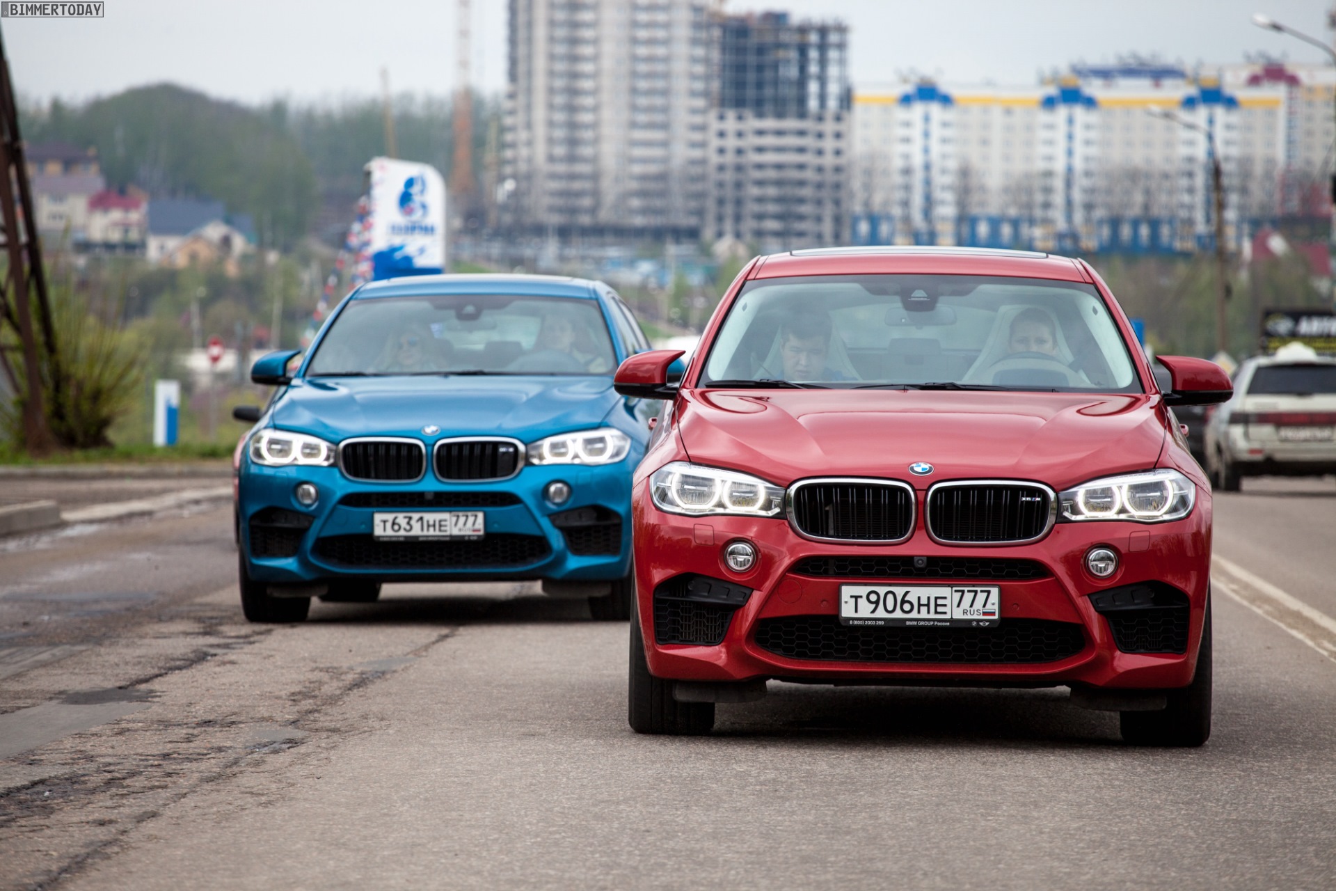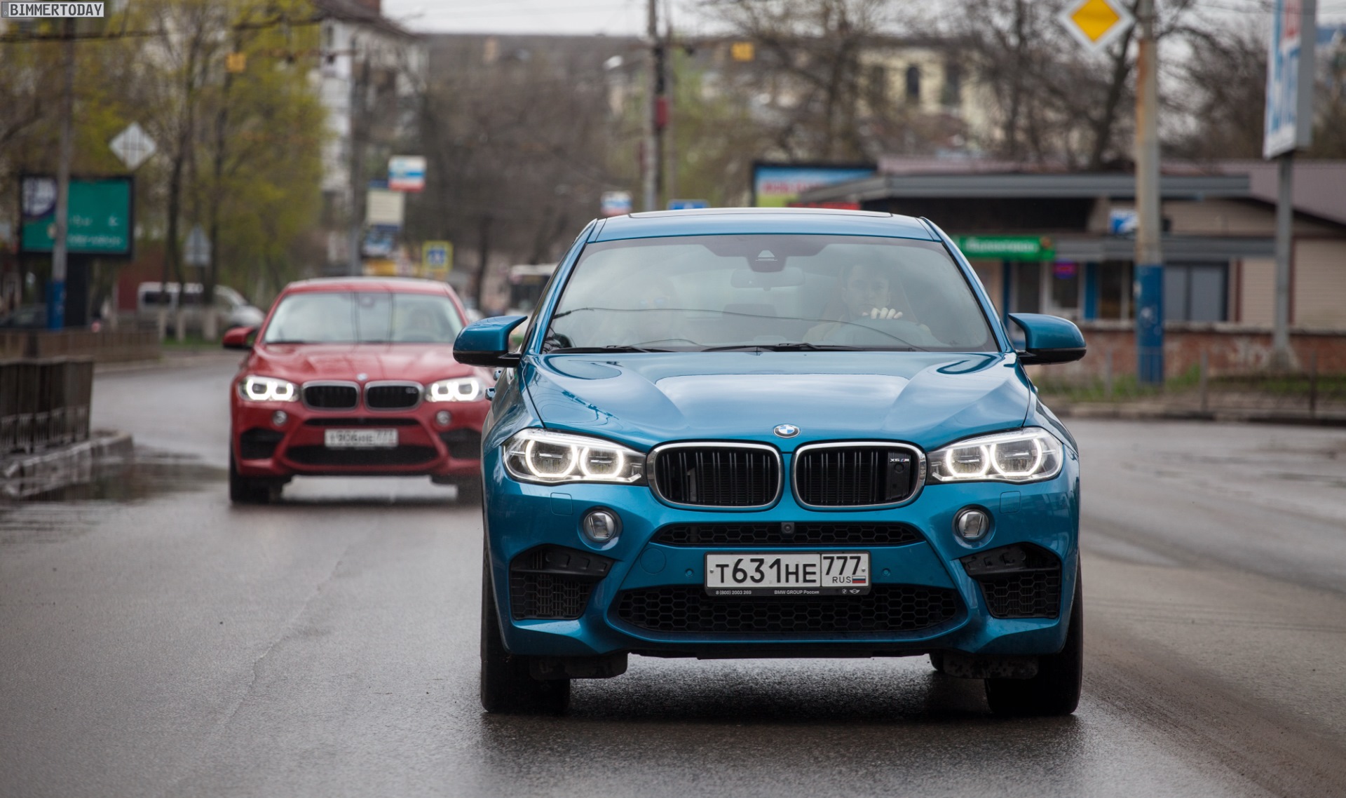 Diese zwei Autos bringen deutlich über 1000 PS auf die Straße – und wiegen zusammen mehr als 4,5 Tonnen. Aus Russland erreichen uns einige neue Fotos vom neuen BMW X6 M F86, der dabei gleich im Doppelpack auftritt. Erstmals sehen wir das 575 PS starke Power-SUV in Melbourne Rot, das zweite Fahrzeug ist in der derzeit nur für X5 M und X6 M erhältlichen Launch-Farbe Long Beach Blue lackiert.