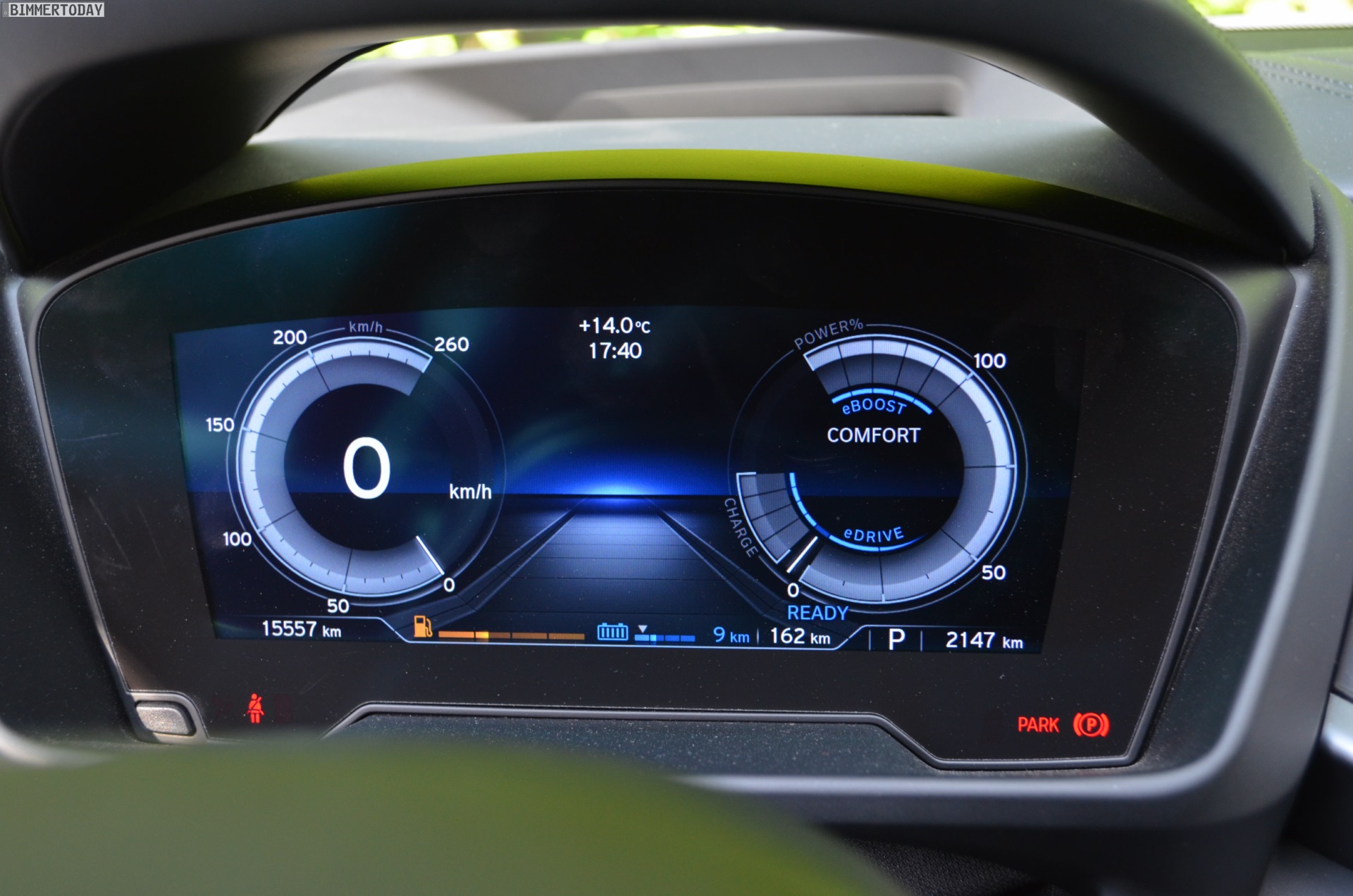 Wird vor einem Überholvorgang per Schaltwippe der richtige Gang der Sechsgang-Automatik eingelegt, ist auch der Verbrenner sofort zur Stelle. Kommt der Kickdown hingegen unerwartet, spürt man die unterschiedliche Potenz der beiden Motoren deutlich: Während das Getriebe noch den richtigen Gang für den Verbrenner sucht und dessen Turbolader Druck aufbaut, setzt bereits die Beschleunigung des 131 PS leistenden E-Motors ein. Wenige Augenblicke später übernimmt der 231 PS starke Dreizylinder das Kommando und sorgt für spürbar mehr Druck im Kreuz.