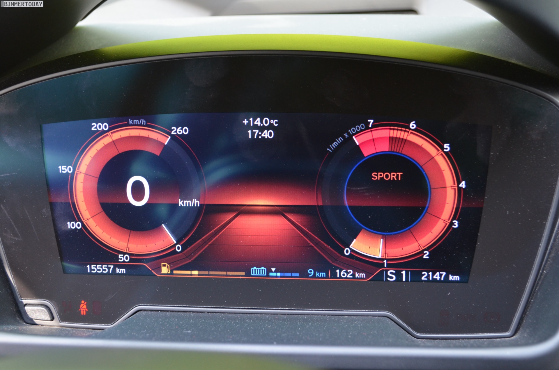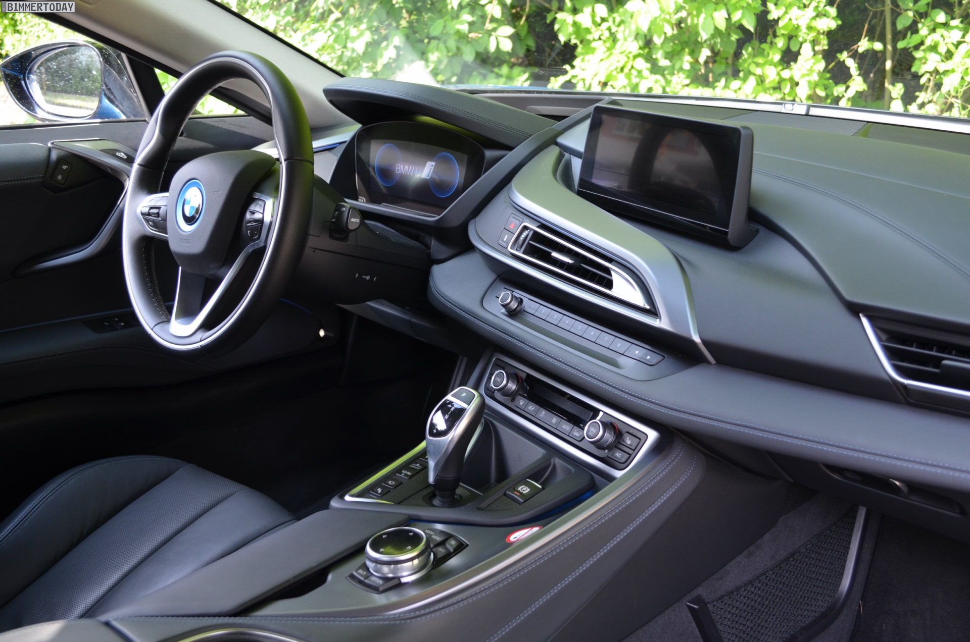 Wenn der Einstieg gelungen und die Flügeltür geschlossen ist, kommt im i8 sofort Sportwagen-Feeling auf. Die Sitzposition ist tief, links und rechts werden die Insassen von der Carbon-Fahrgastzelle umfasst, das Cockpit ist deutlich auf den Fahrer zugeschnitten. Doch nach dem Druck auf den Startknopf erwacht anders als bei gewöhnlichen Sportwagen kein großvolumiges Triebwerk zum Leben, nur eine kurze Melodie weist den Fahrer auf die Einsatzbereitschaft des Fahrzeugs hin.