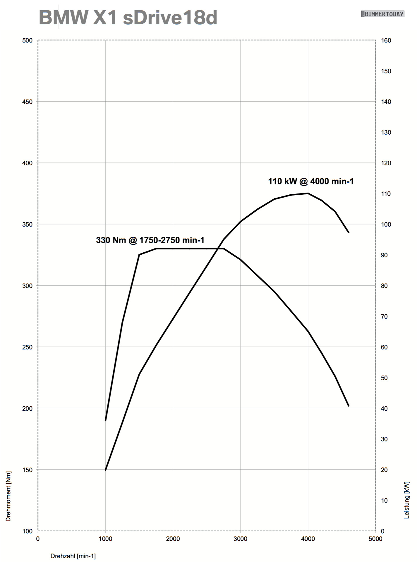 - BMW X1 sDrive18d: 150 PS, 330 Nm, 9,2s 0-100, 4,1-4,5 l/100km