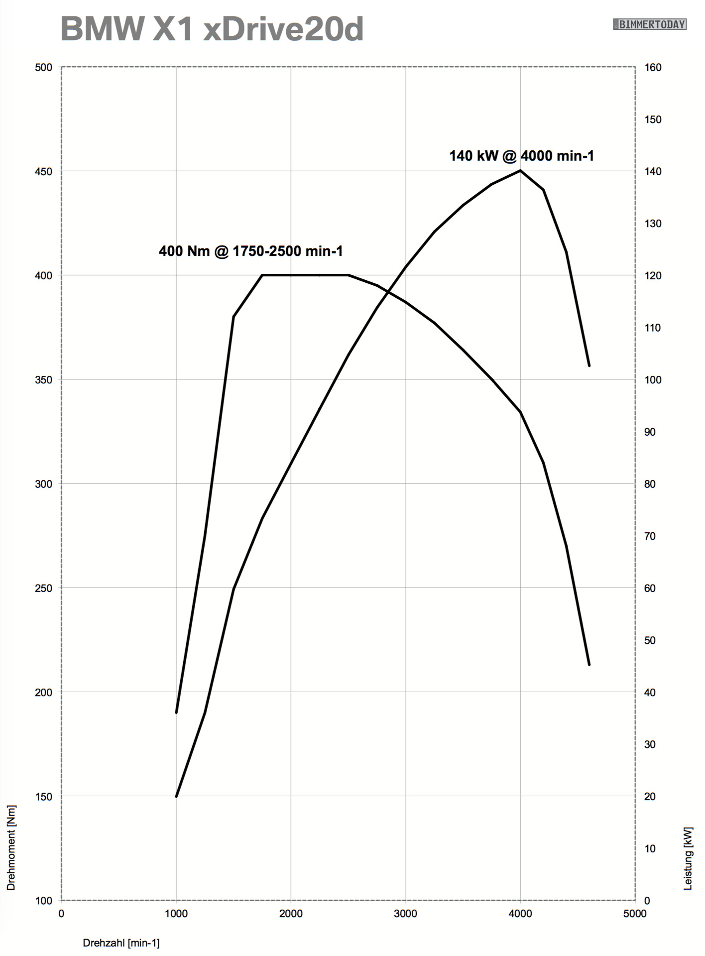 - BMW X1 xDrive20d: 190 PS, 400 Nm, 7,6s 0-100, 4,9-5,1 l/100km