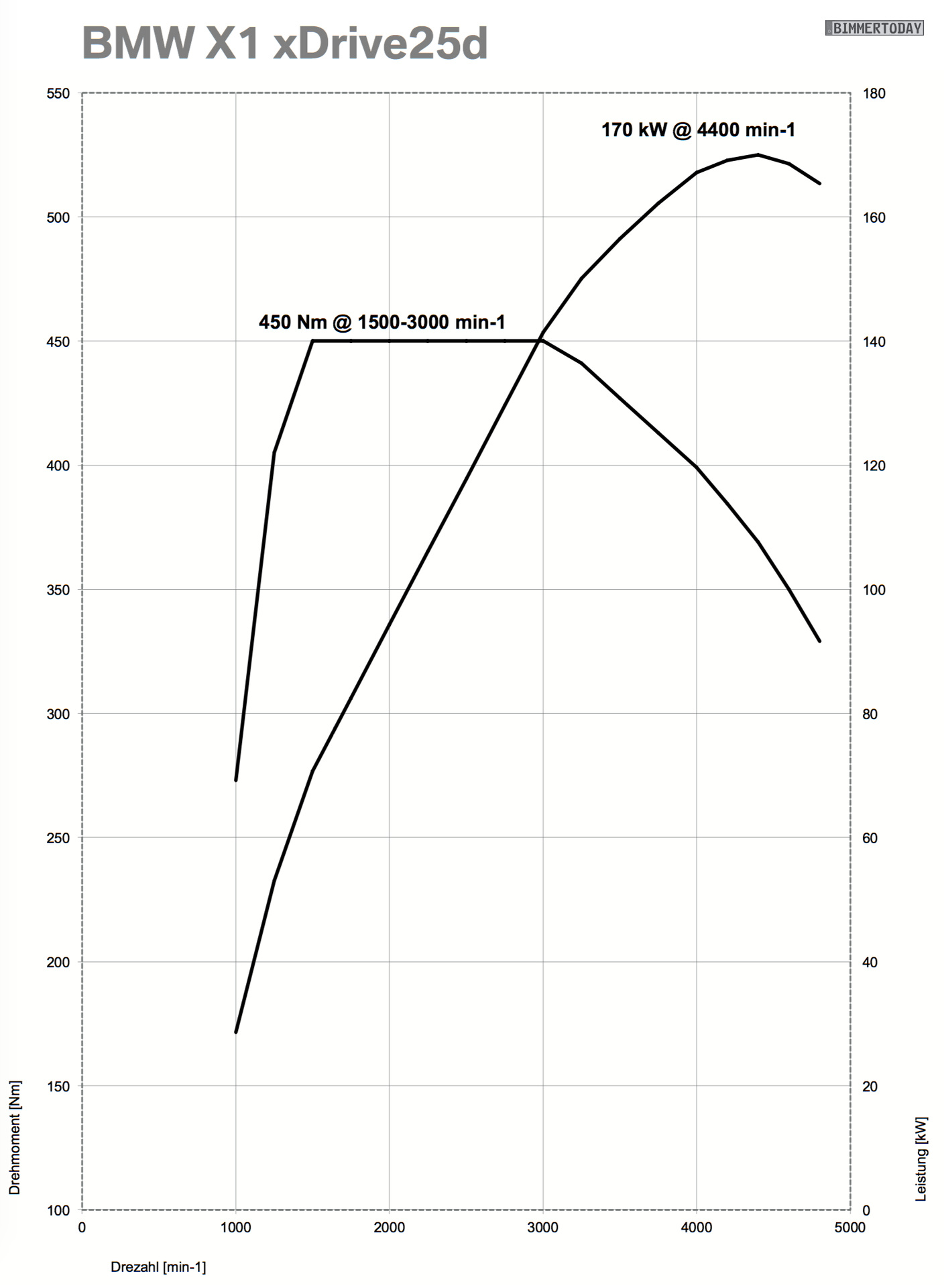 - BMW X1 xDrive25d: 231 PS, 450 Nm, 6,6s 0-100, 5,0-5,2 l/100km