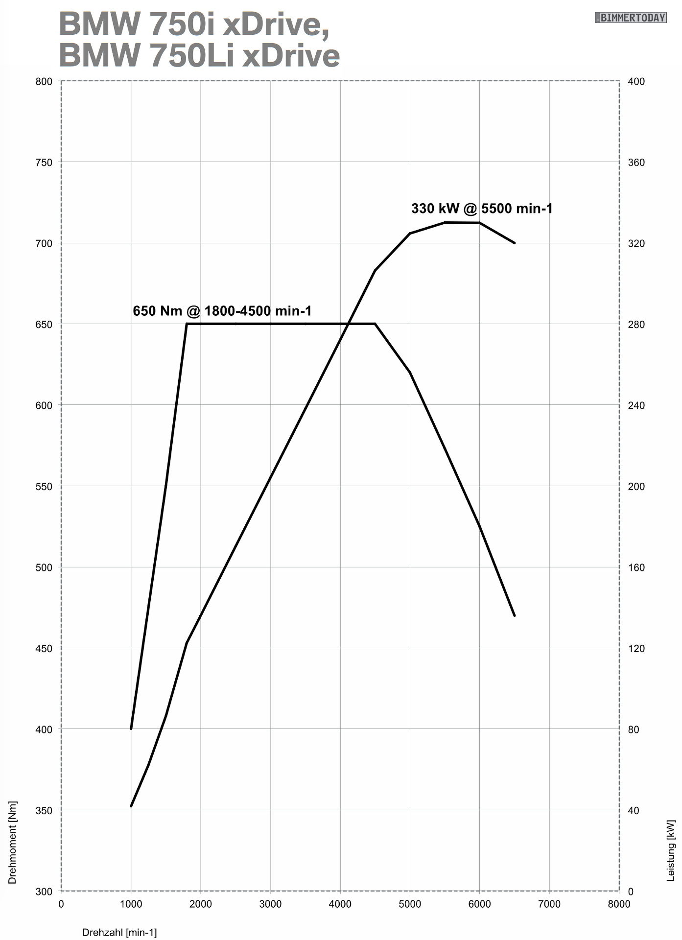 BMW 750Li xDrive: 450 PS, 650 Nm, 4,5s 0-100, 8,3-8,5 l/100km, 1990 kg