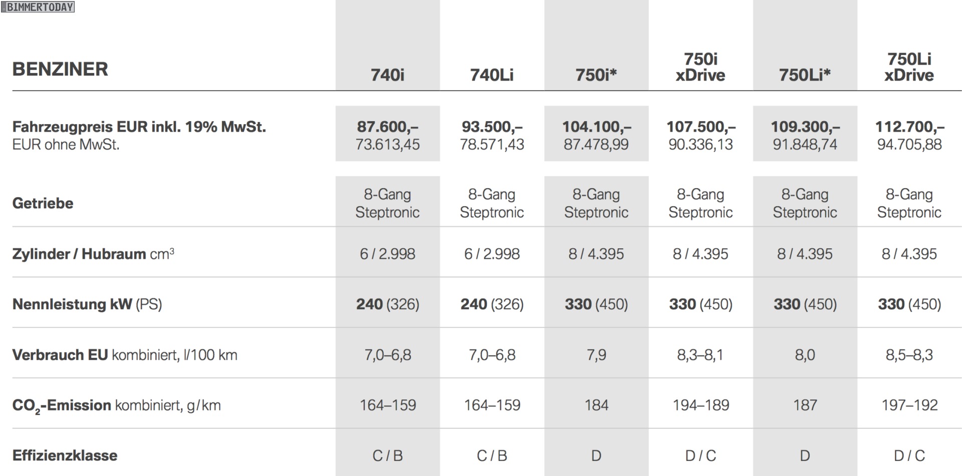 Weniger überraschend ist die Tatsache, dass BMW 750i G11 und BMW 750Li G12 zeitnah auch ohne Allradantrieb xDrive erhältlich sein werden. Der Verbrauch des vorläufigen Topmodells mit 450 PS starkem V8-Biturbo sinkt damit bestenfalls auf 7,9 Liter, die Langversion landet bei 8,0 Liter Normverbrauch.