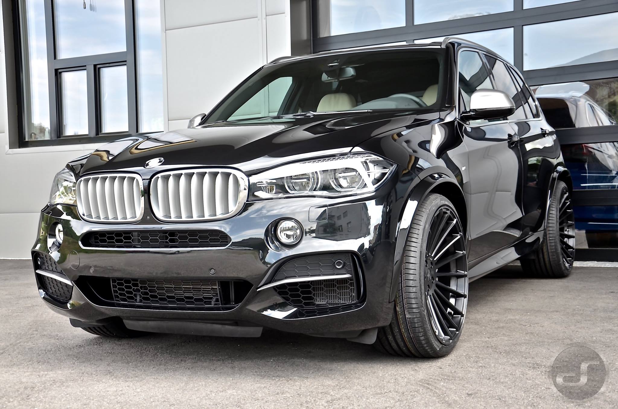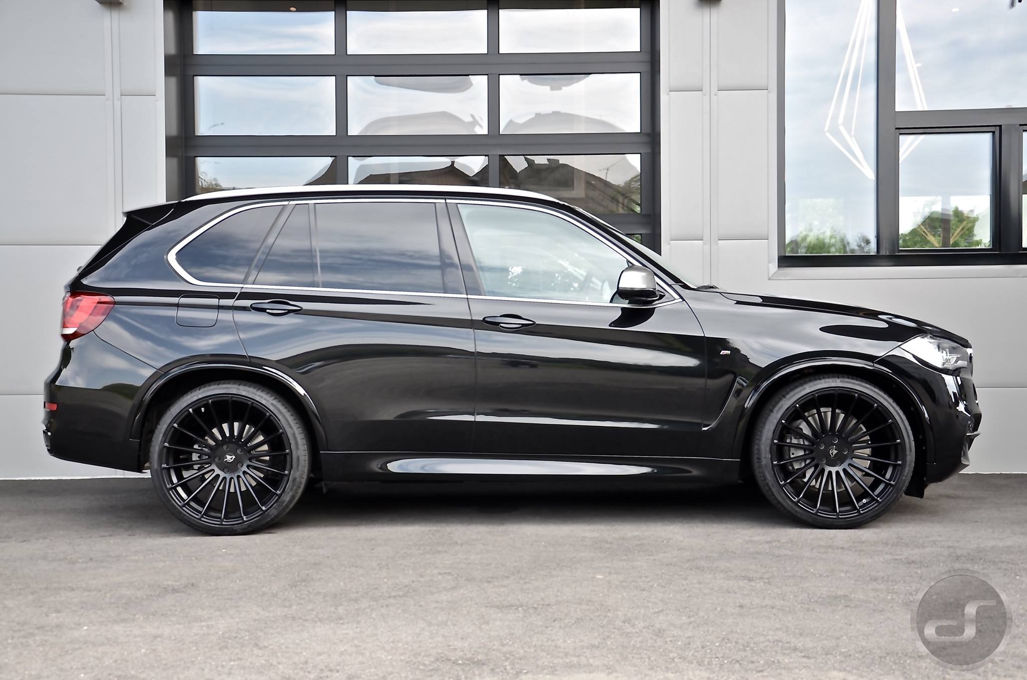 Abgesehen von den 23 Zoll großen Hamann Anniversary Evo Black Line-Felgen ist der gezeigte BMW X5 F15 weitgehend serienmäßig: Nur die für die breiten Reifen nötigen, aber dezent realisierten Radlaufverbreiterungen und der ebenfalls von Hamann zugesteuerte Satz Tieferlegungsfedern unterscheiden das luxuriöse Tuning-SUV von der im BMW Werk Spartanburg gebauten Serie.