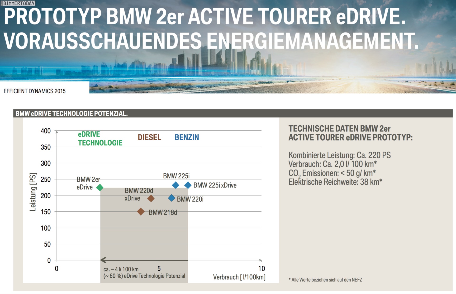Unterm Strich fährt sich der Plug-in-Hybrid-Prototyp schon heute wie ein Serienauto, auch wenn der Marktstart erst für Anfang 2016 geplant ist. Offiziell enthüllt wird der BMW 225e Active Tourer auf der IAA 2015, dann dürften sich die Münchner auch verbindlich zum Preis äußern.