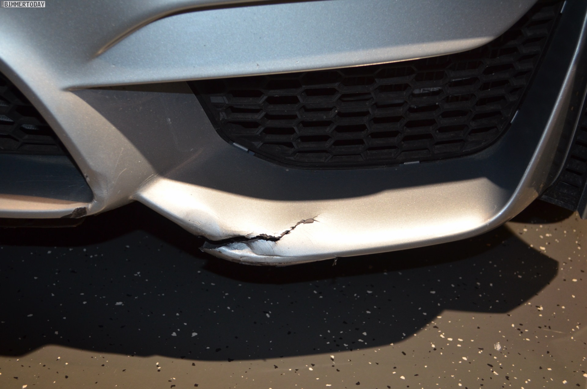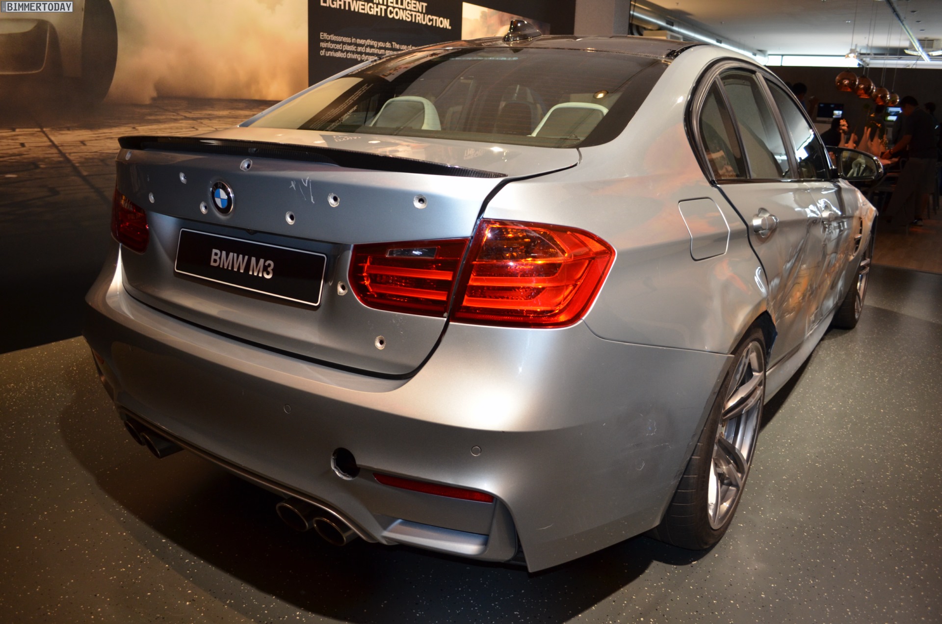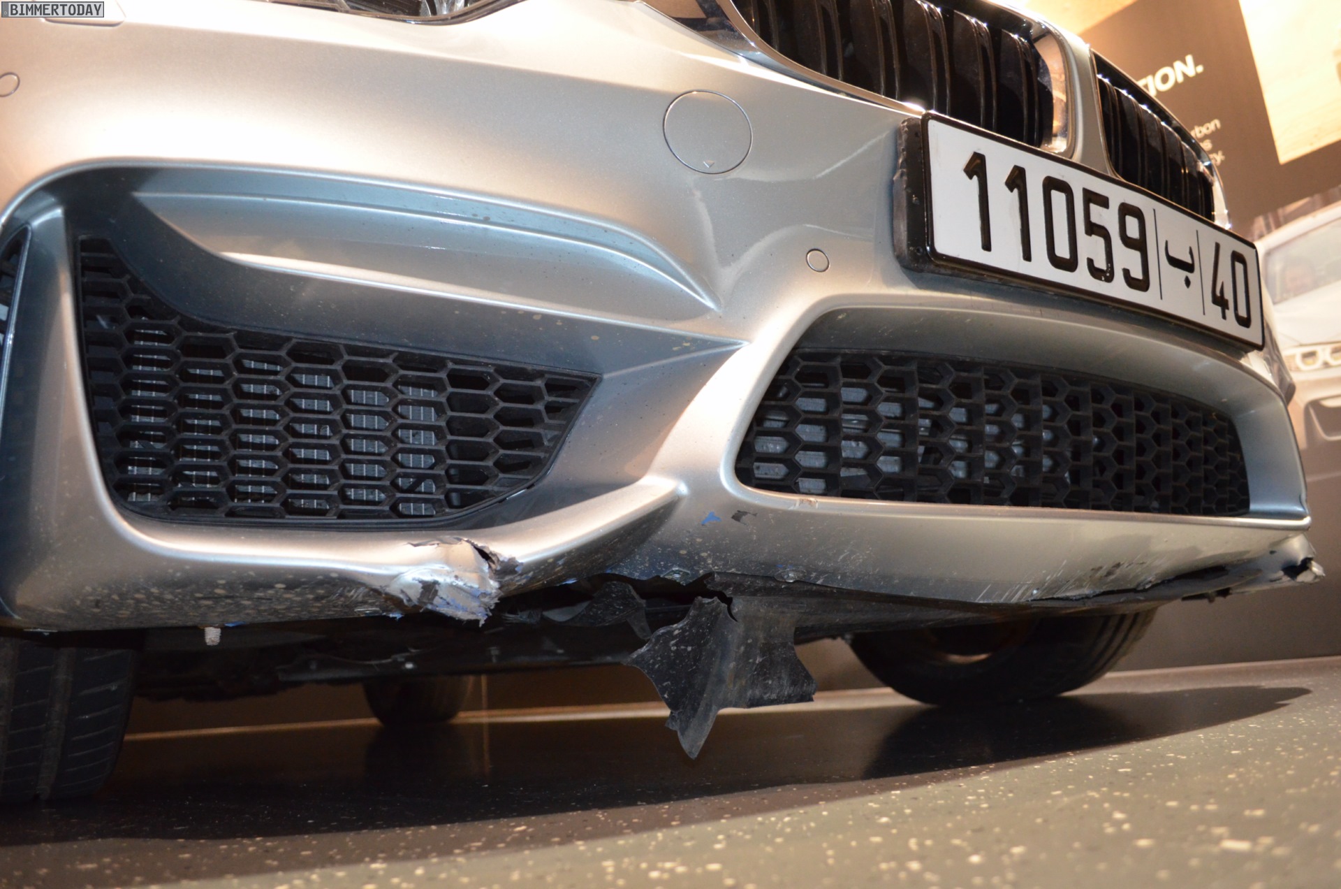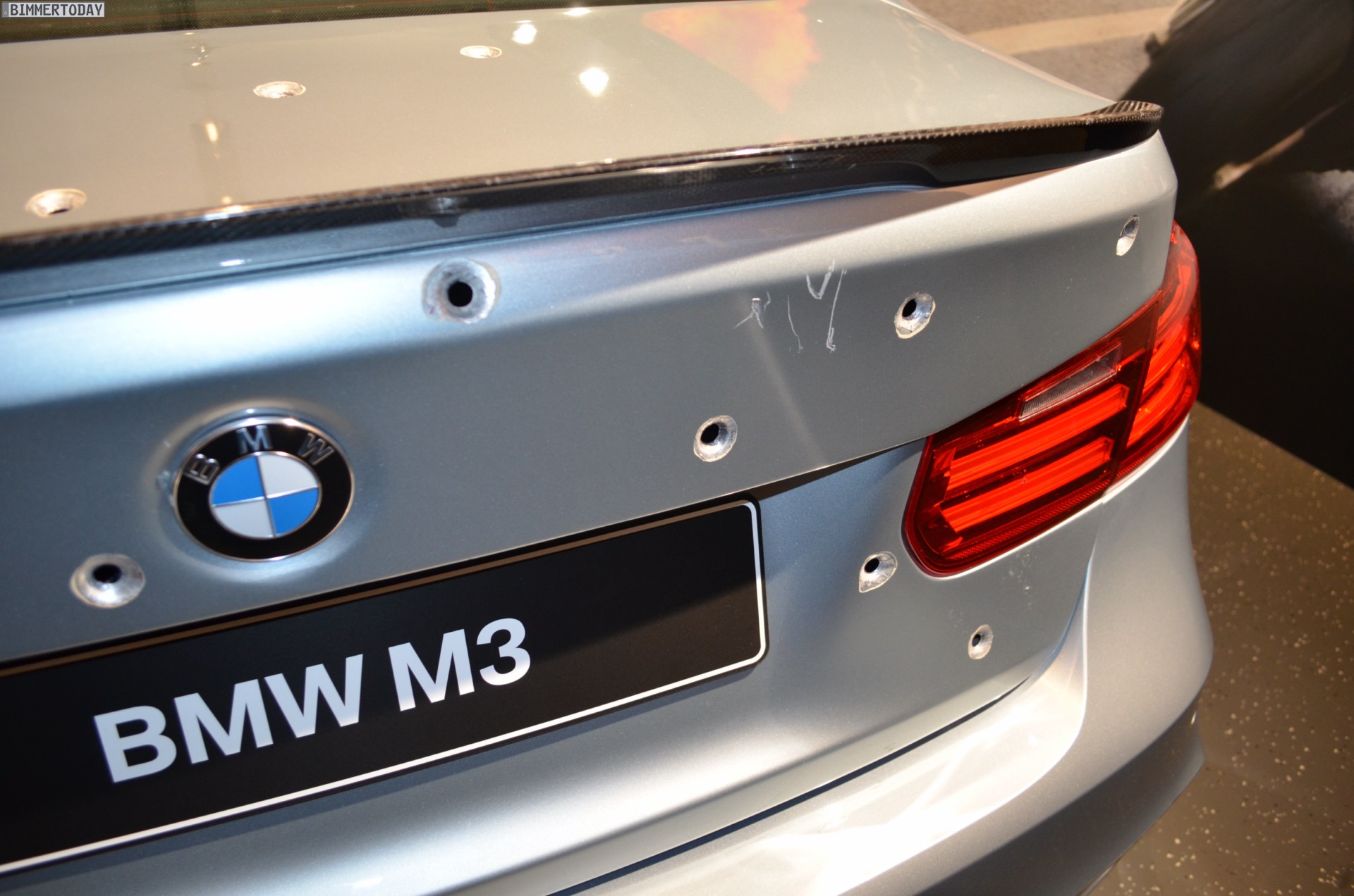 Neben kleineren Beschädigungen an der Frontschürze sowie am Carbon-Dach weist die BMW M3 Limousine aus Mission Impossible V auch großflächige Schäden an der rechten Fahrzeugseite sowie einige Einschusslöcher in der Kofferraum-Haube auf.