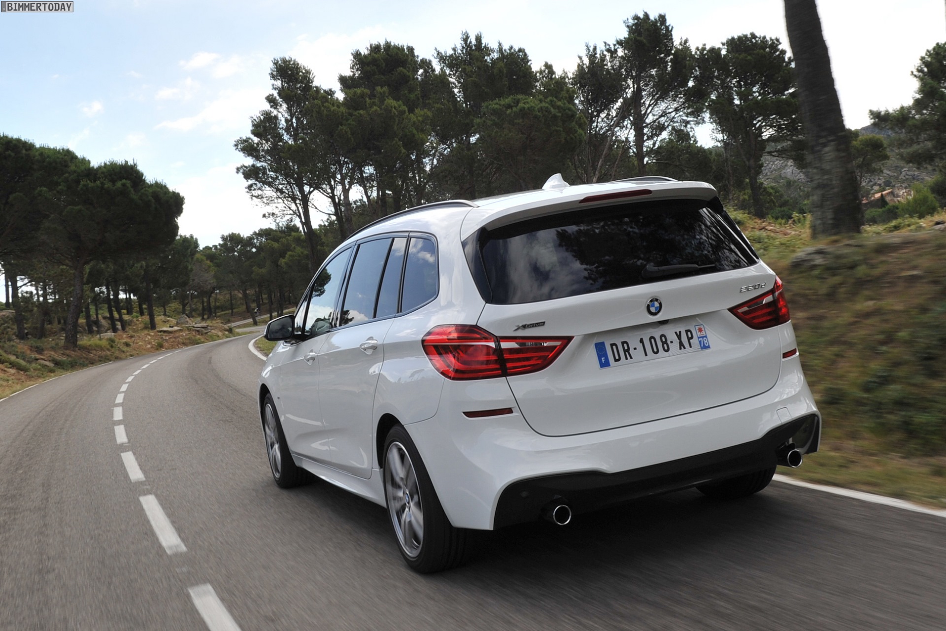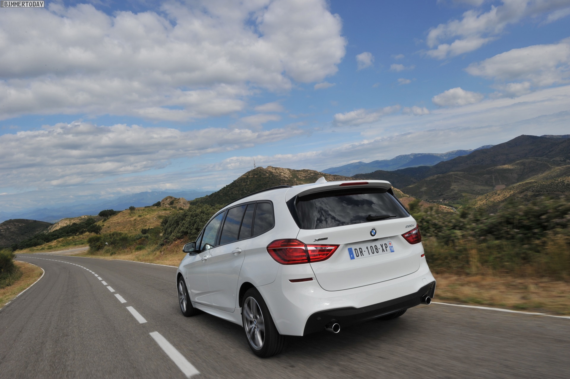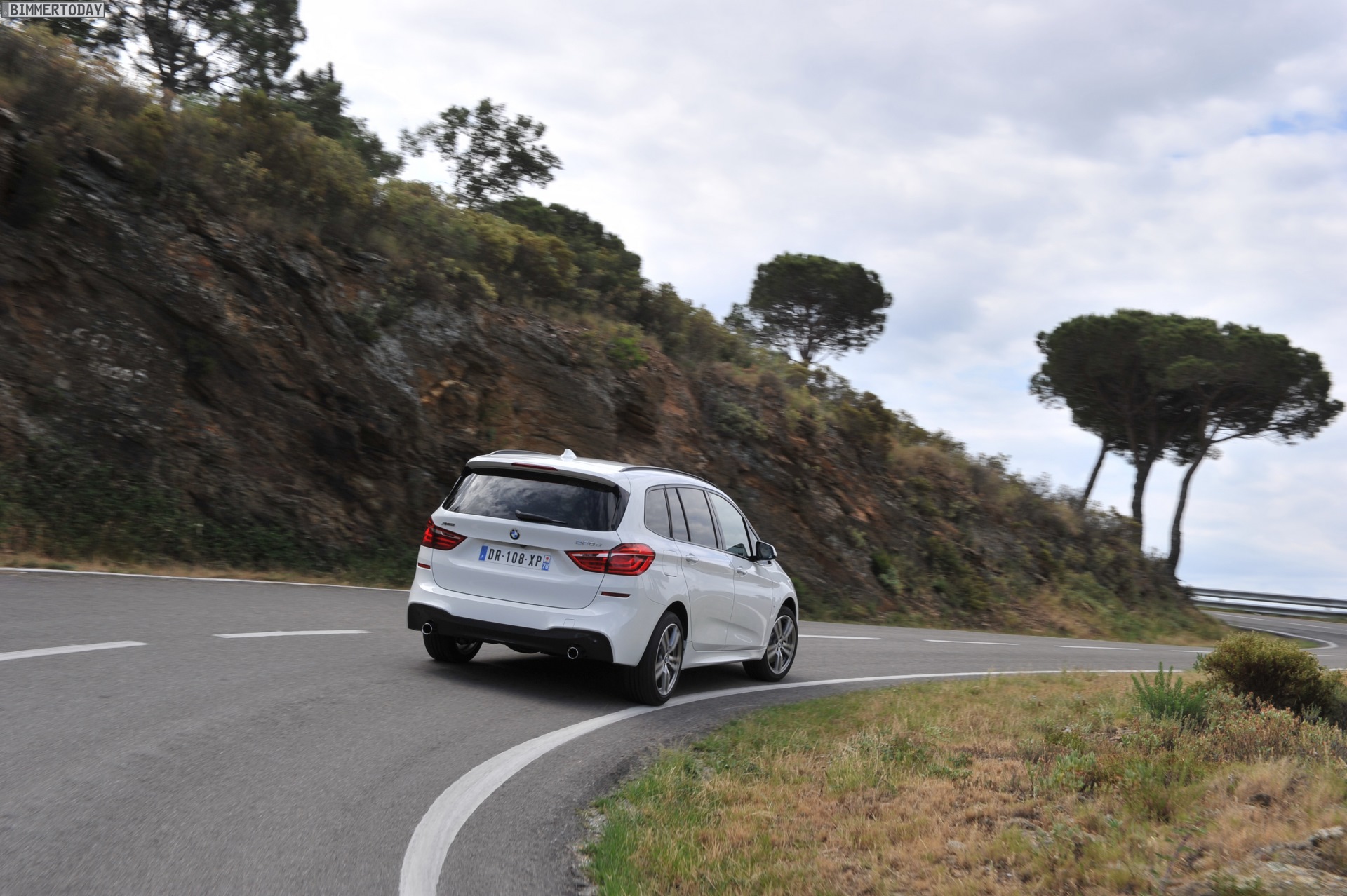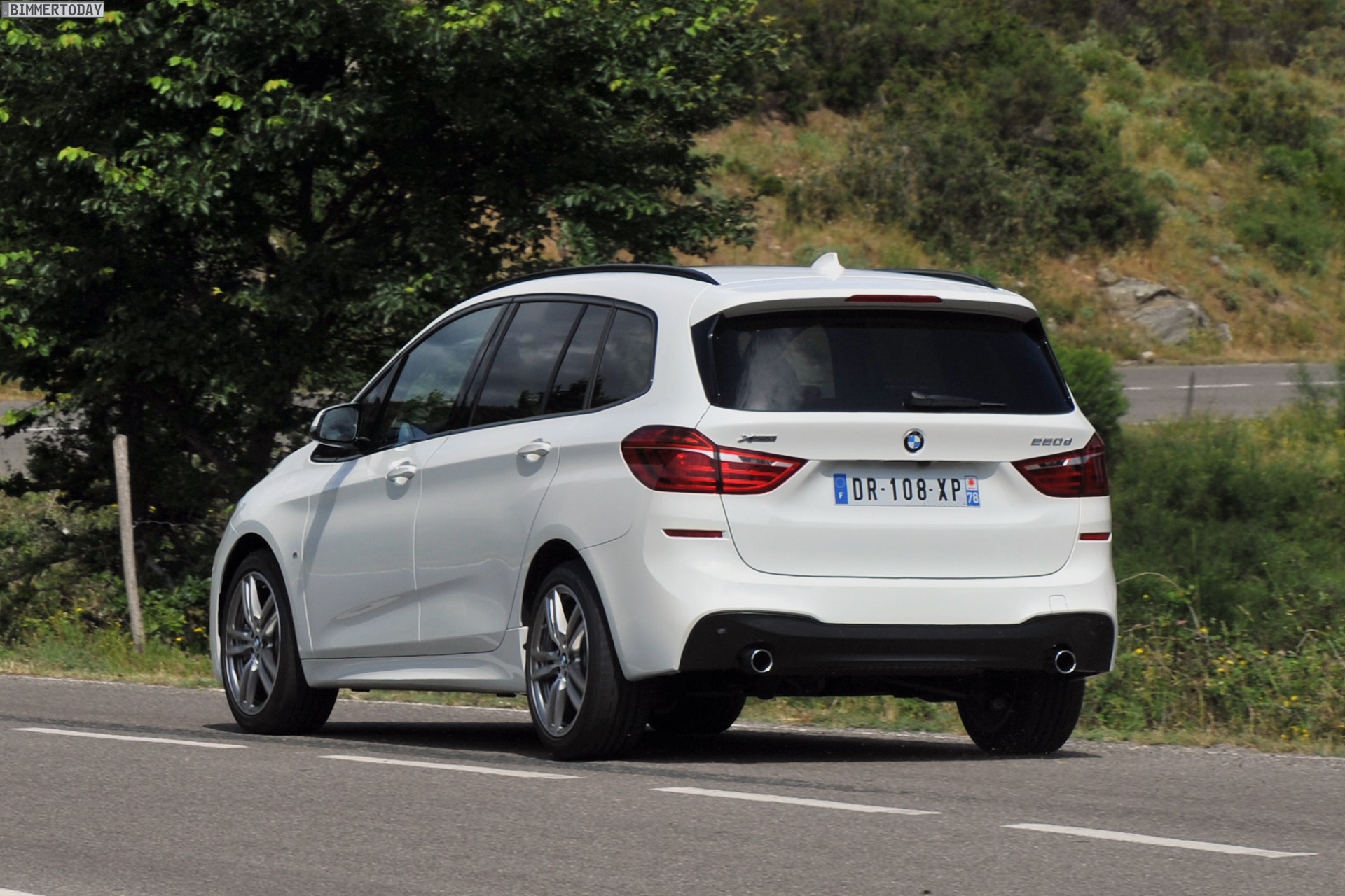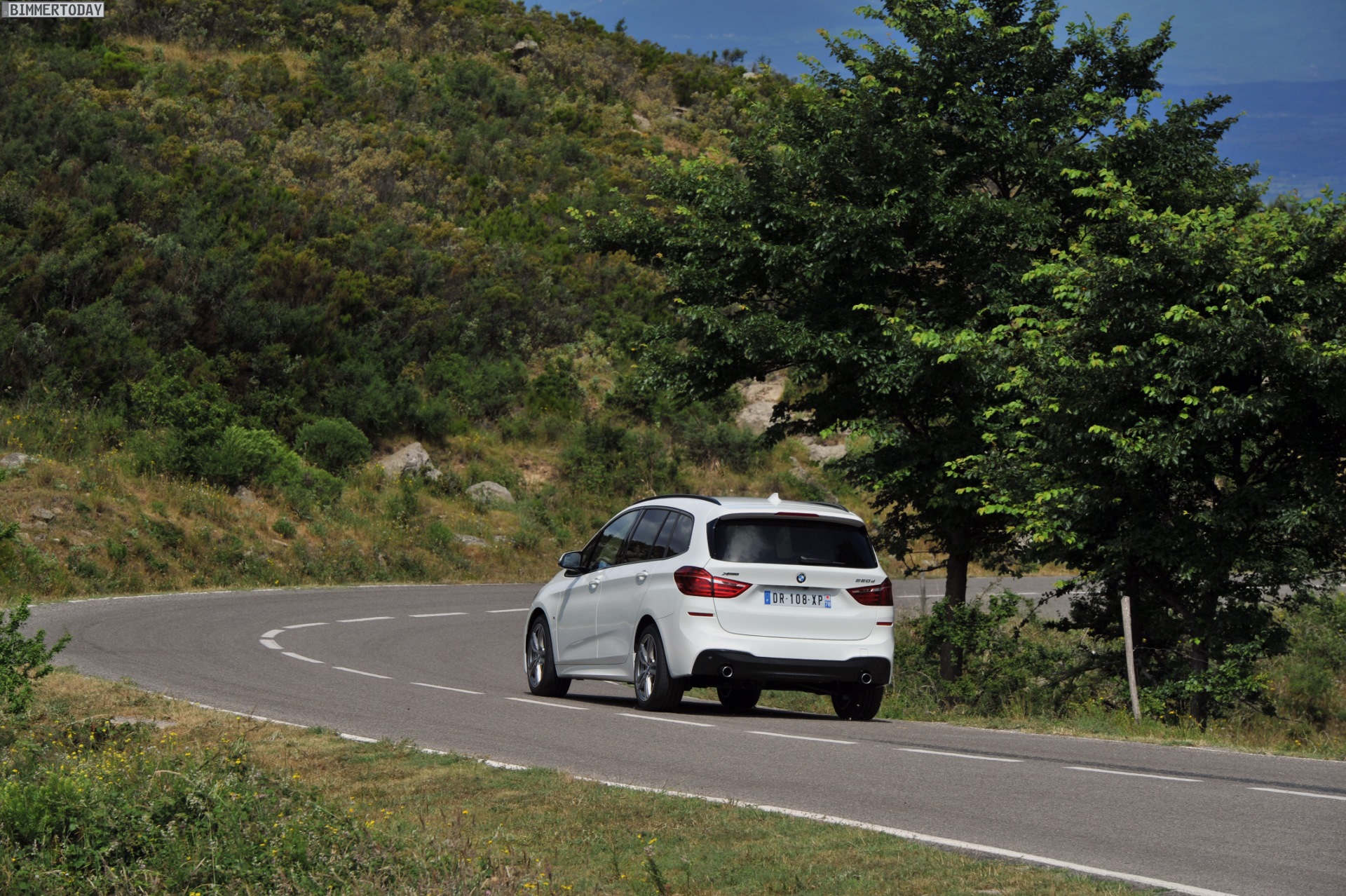 Einige weitere Fotos aus Frankreich zeigen den BMW 2er Gran Tourer mit M Sport-Paket in Alpinweiß Metallic. Bei diesem F46 handelt es sich um einen BMW 220d xDrive mit 190 PS starkem Diesel und Allradantrieb.