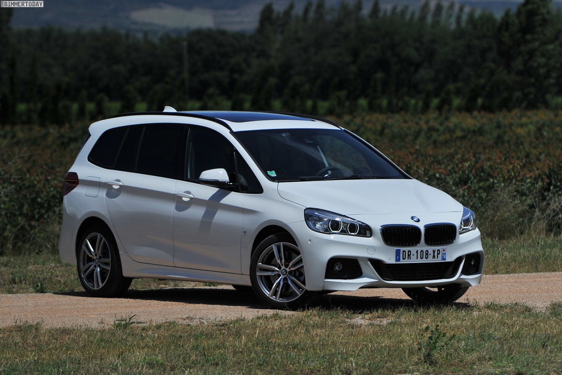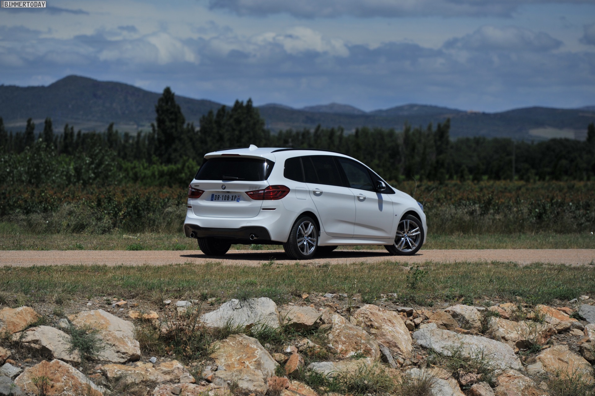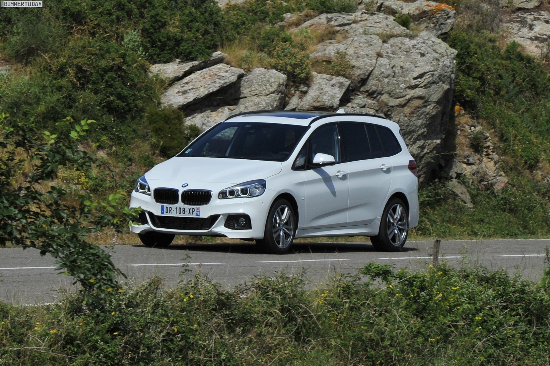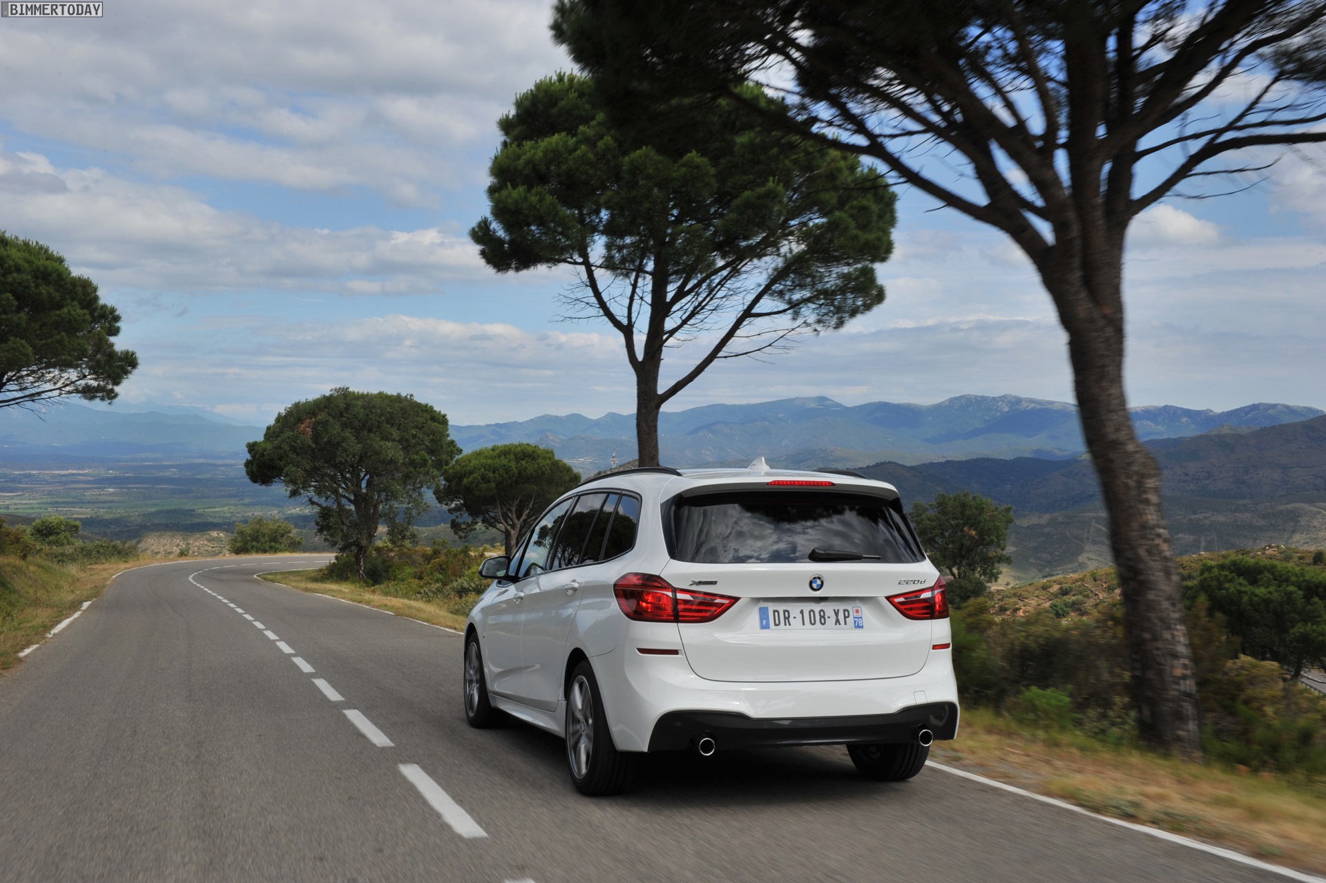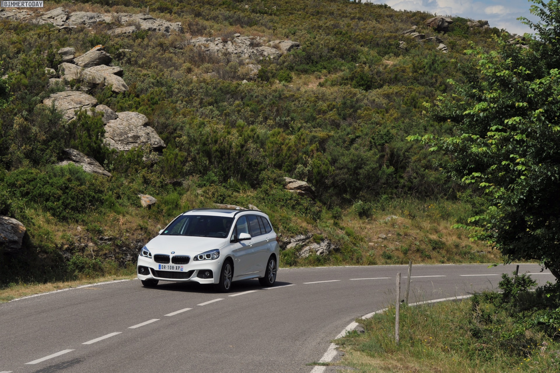 Einige weitere Fotos aus Frankreich zeigen den BMW 2er Gran Tourer mit M Sport-Paket in Alpinweiß Metallic. Bei diesem F46 handelt es sich um einen BMW 220d xDrive mit 190 PS starkem Diesel und Allradantrieb.