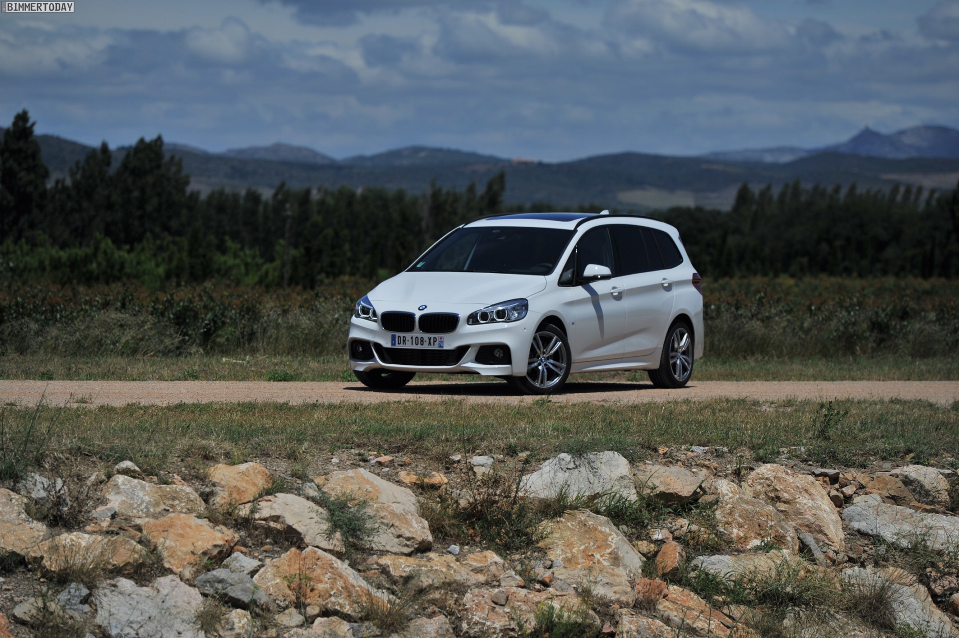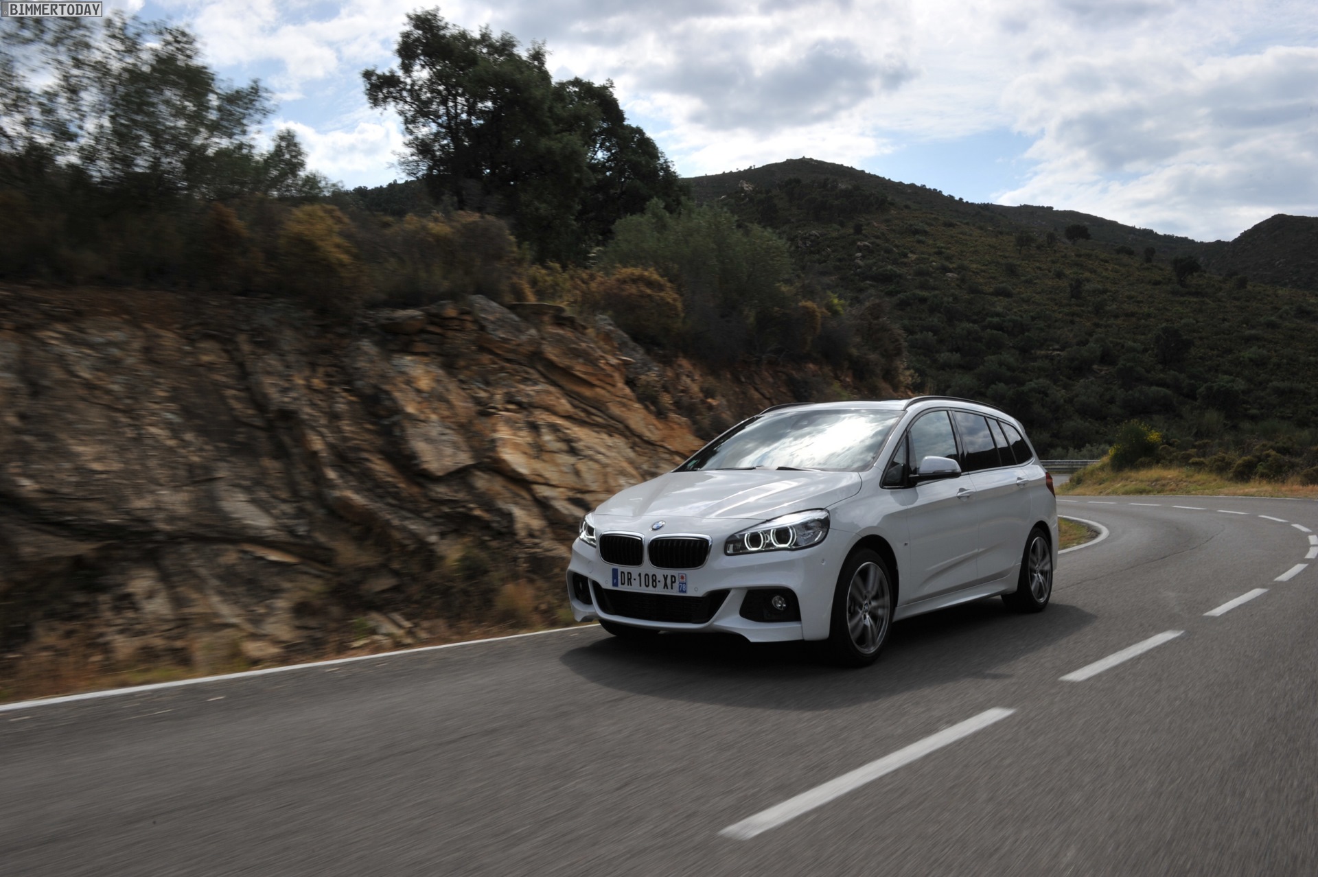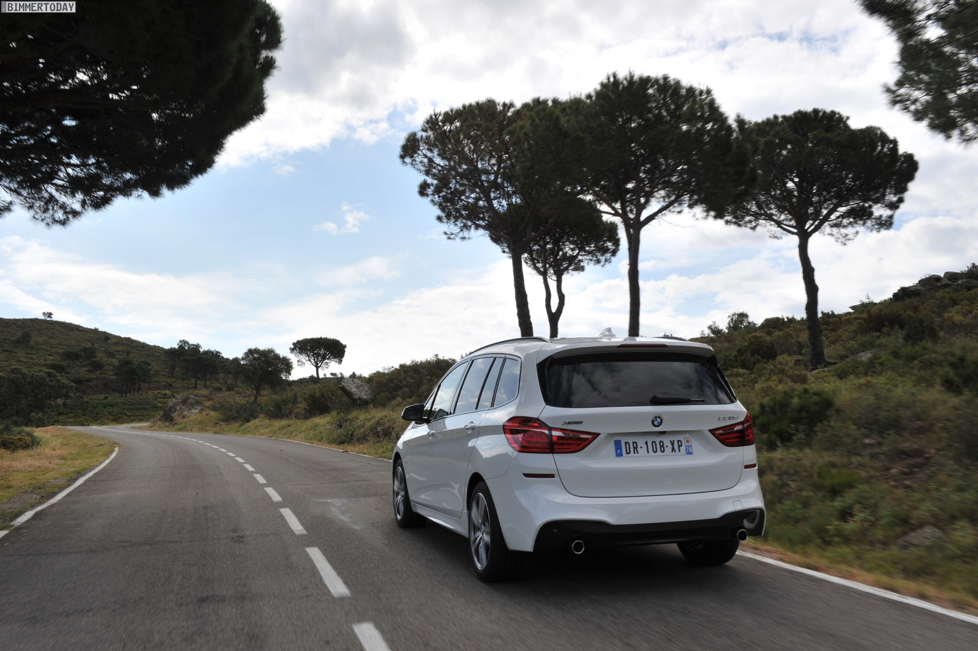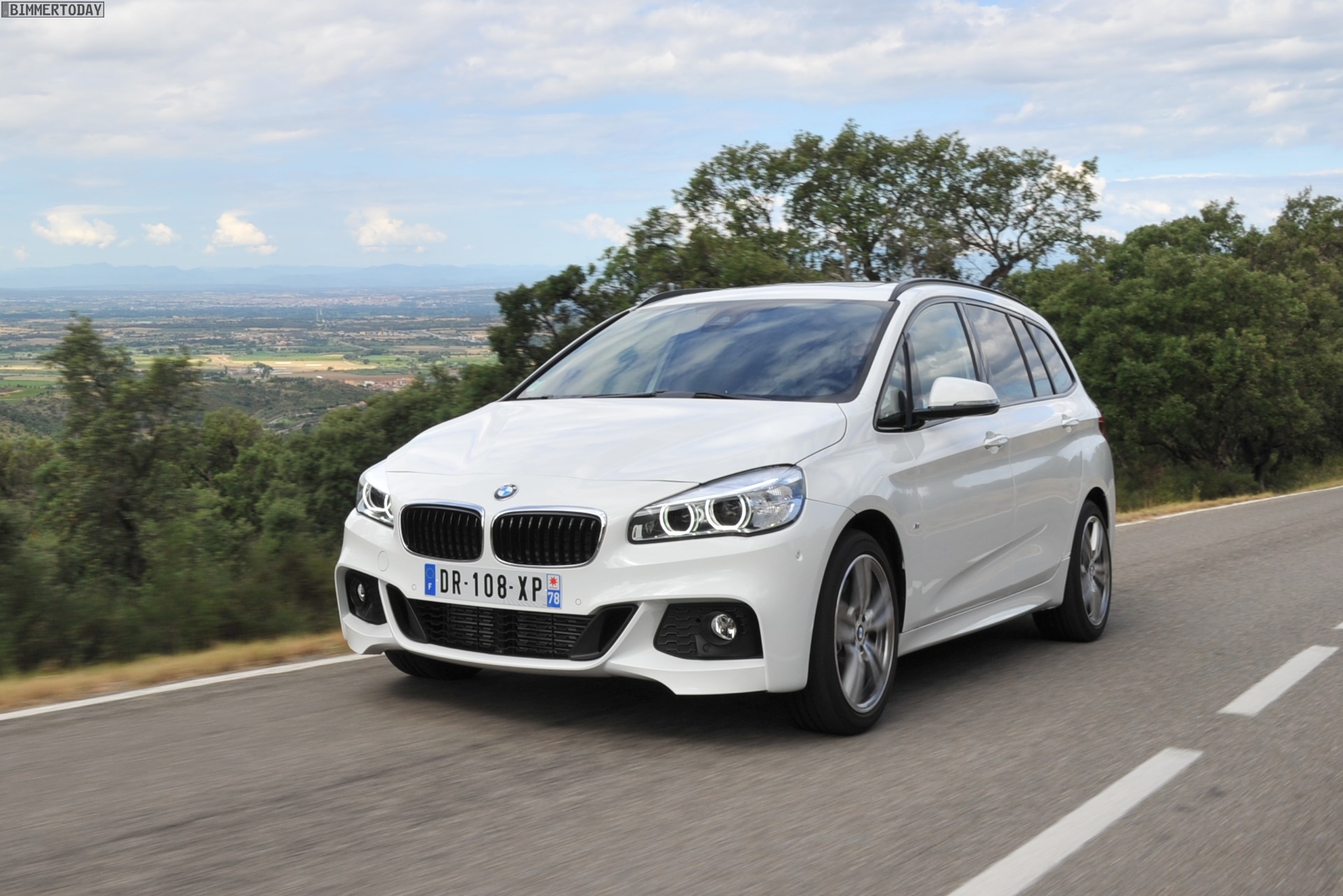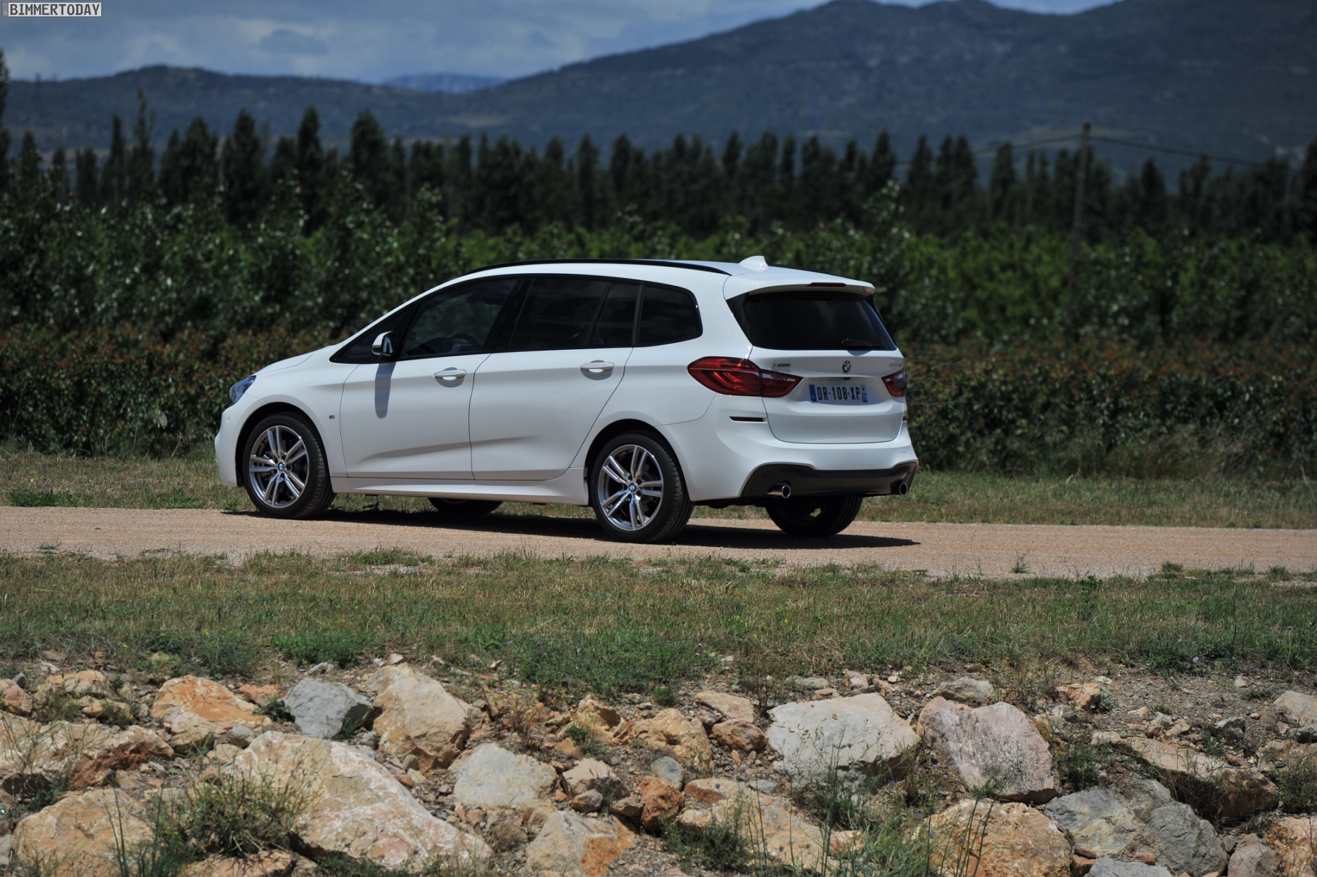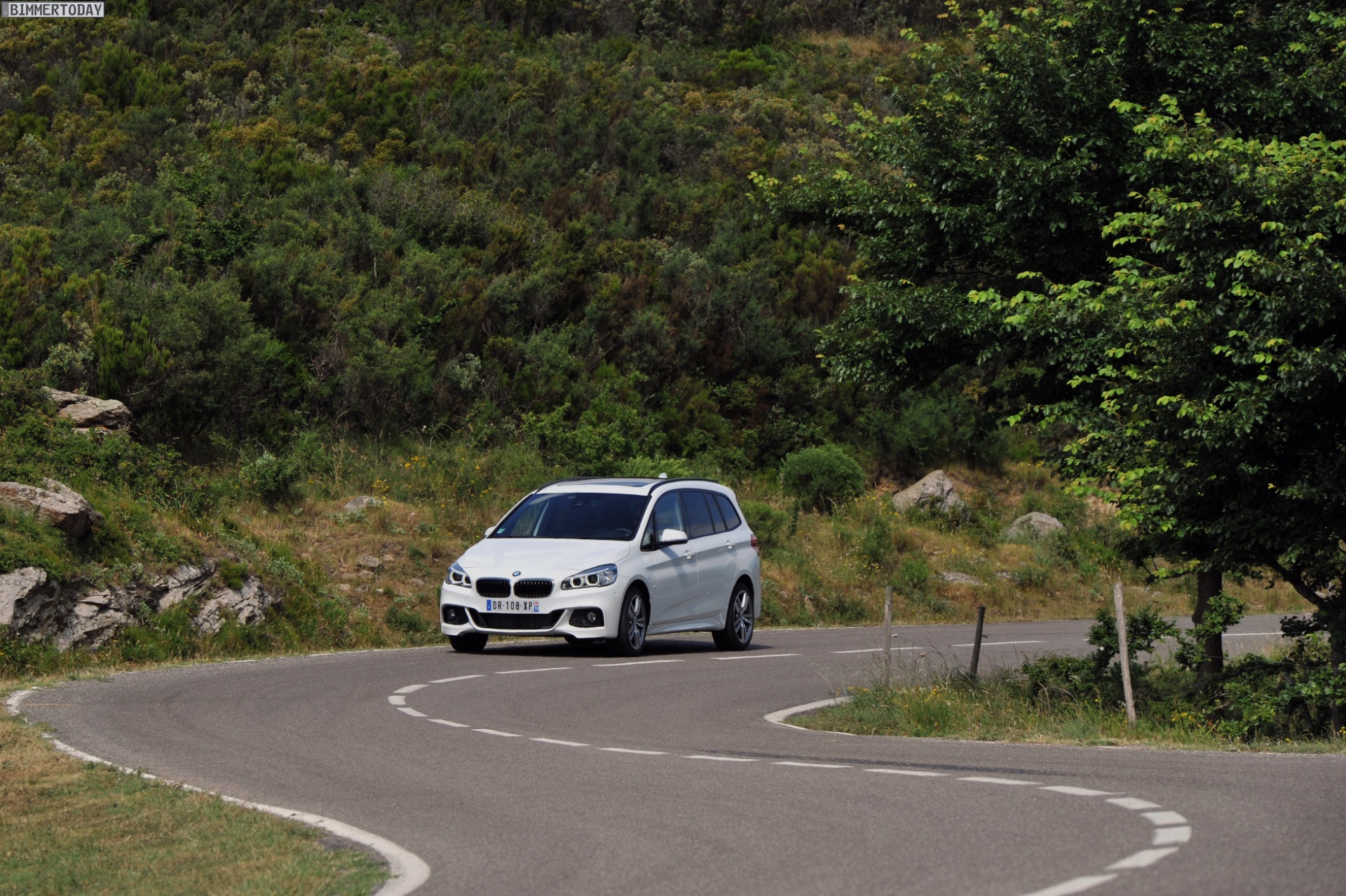 Einige weitere Fotos aus Frankreich zeigen den BMW 2er Gran Tourer mit M Sport-Paket in Alpinweiß Metallic. Bei diesem F46 handelt es sich um einen BMW 220d xDrive mit 190 PS starkem Diesel und Allradantrieb.