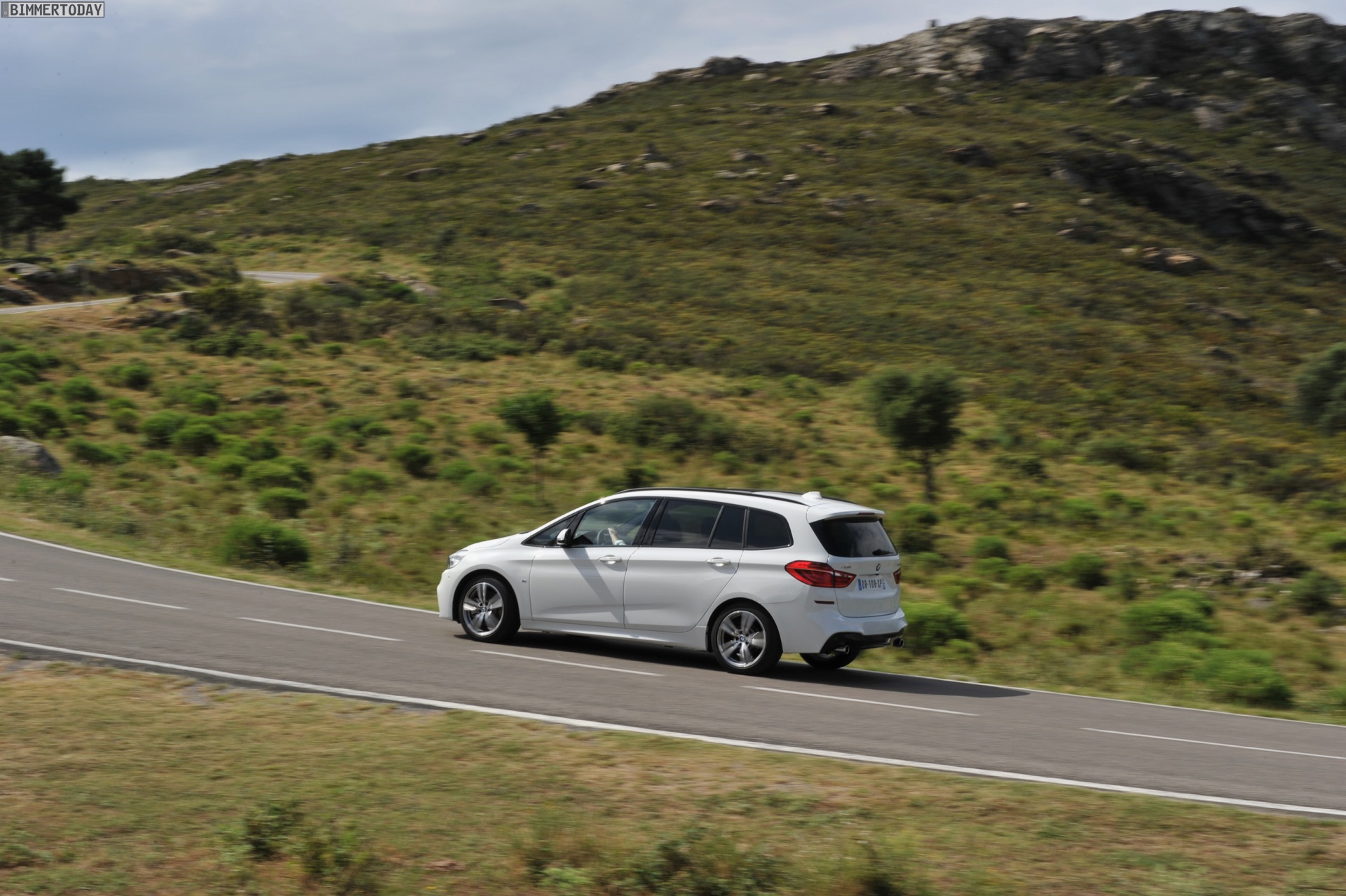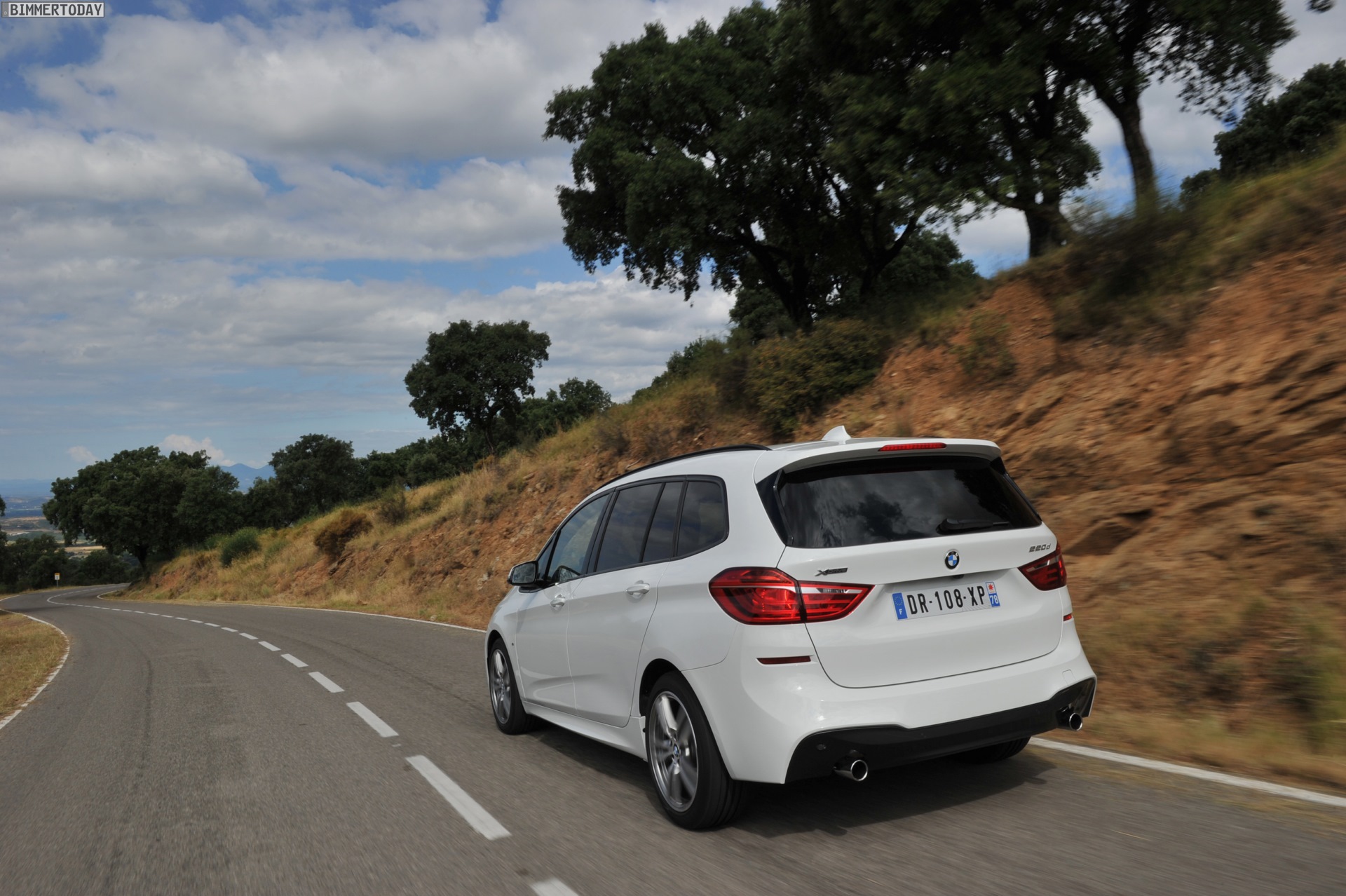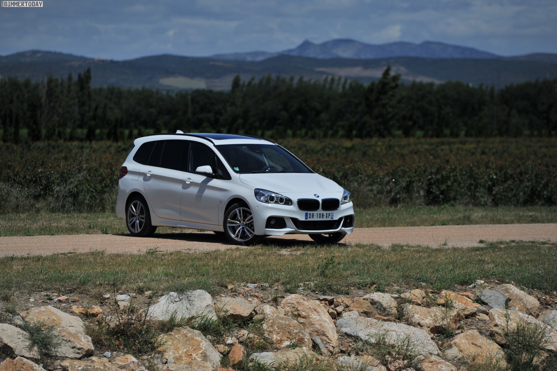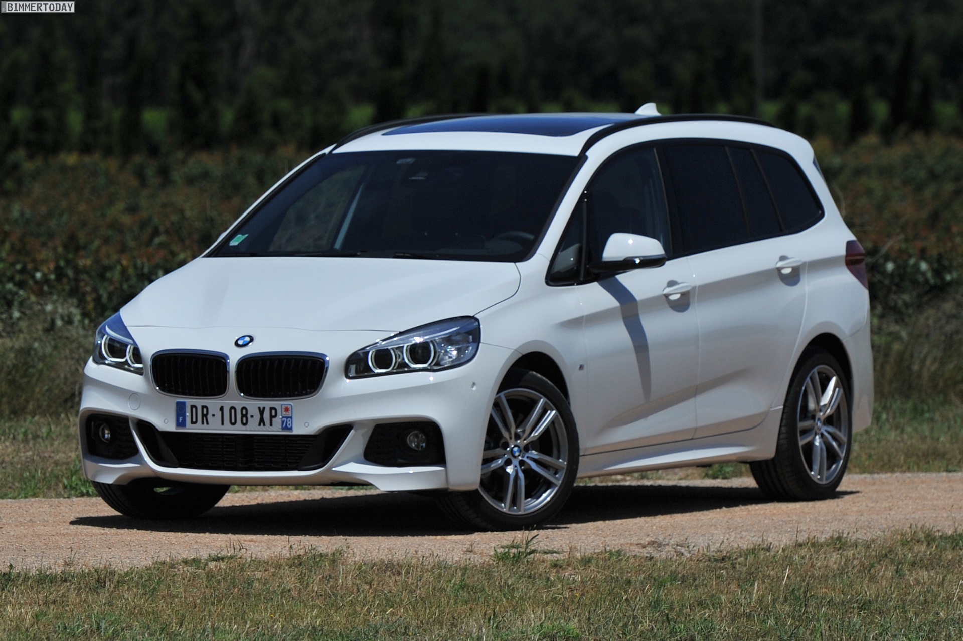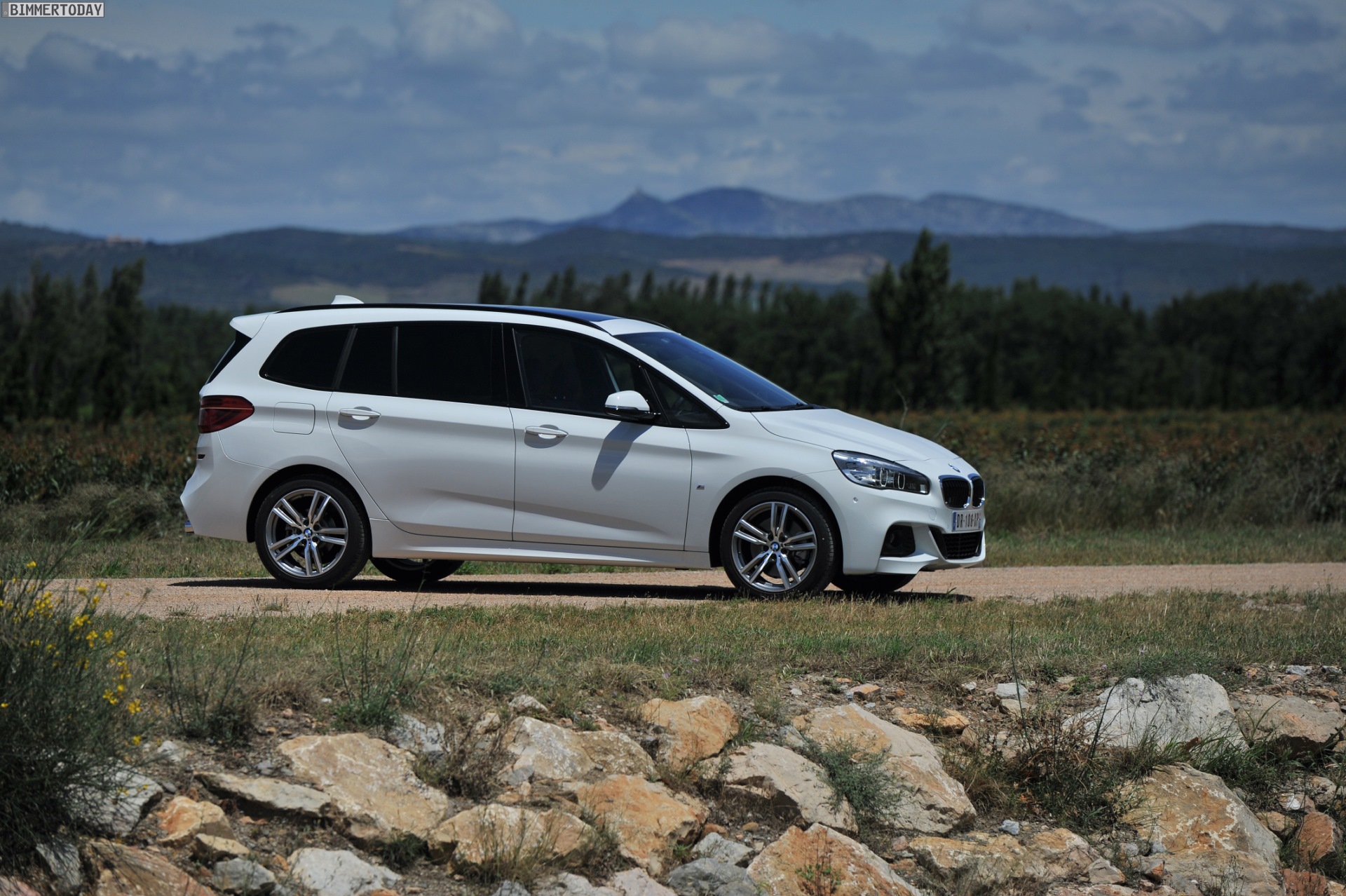 Einige weitere Fotos aus Frankreich zeigen den BMW 2er Gran Tourer mit M Sport-Paket in Alpinweiß Metallic. Bei diesem F46 handelt es sich um einen BMW 220d xDrive mit 190 PS starkem Diesel und Allradantrieb.