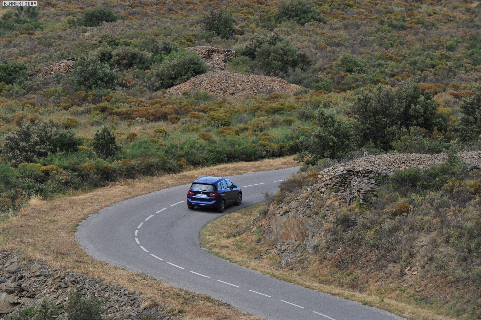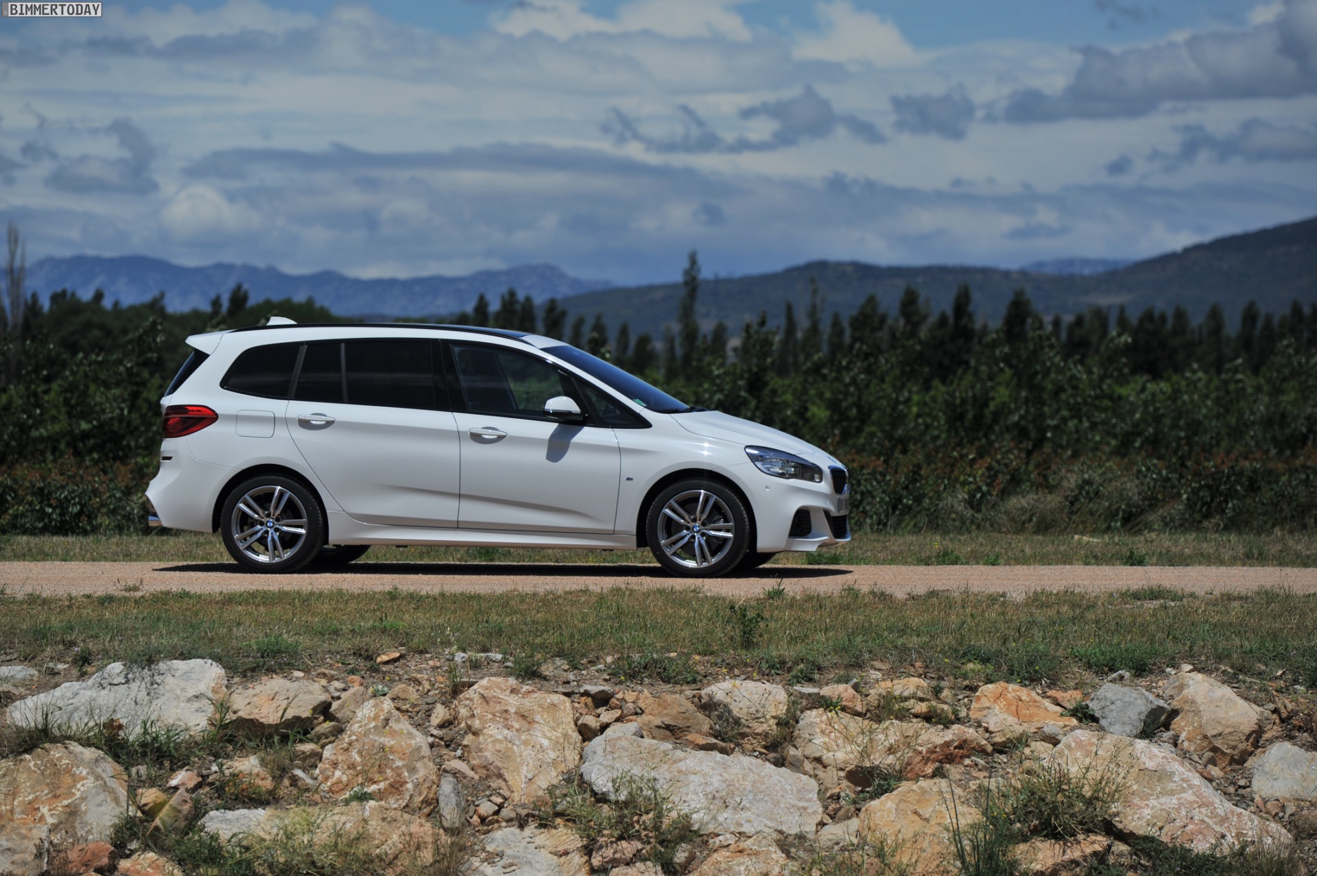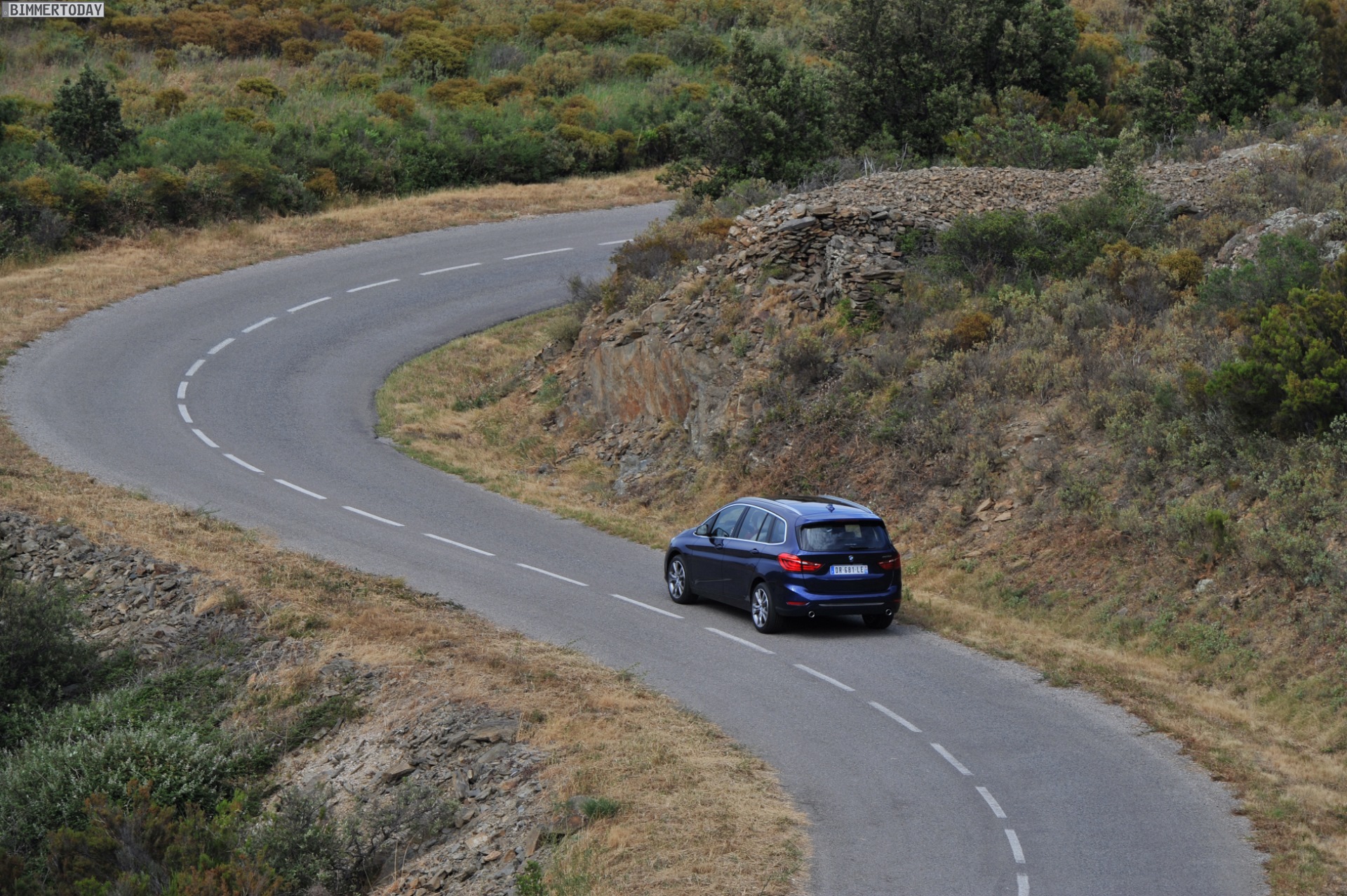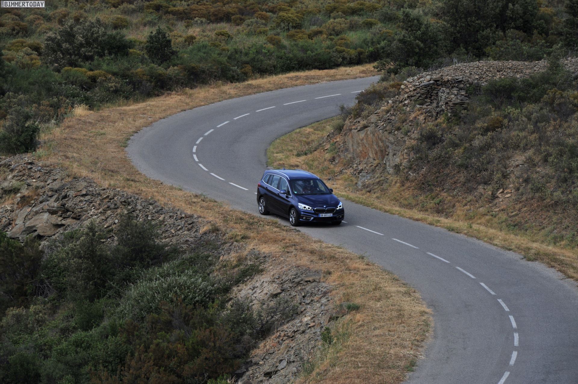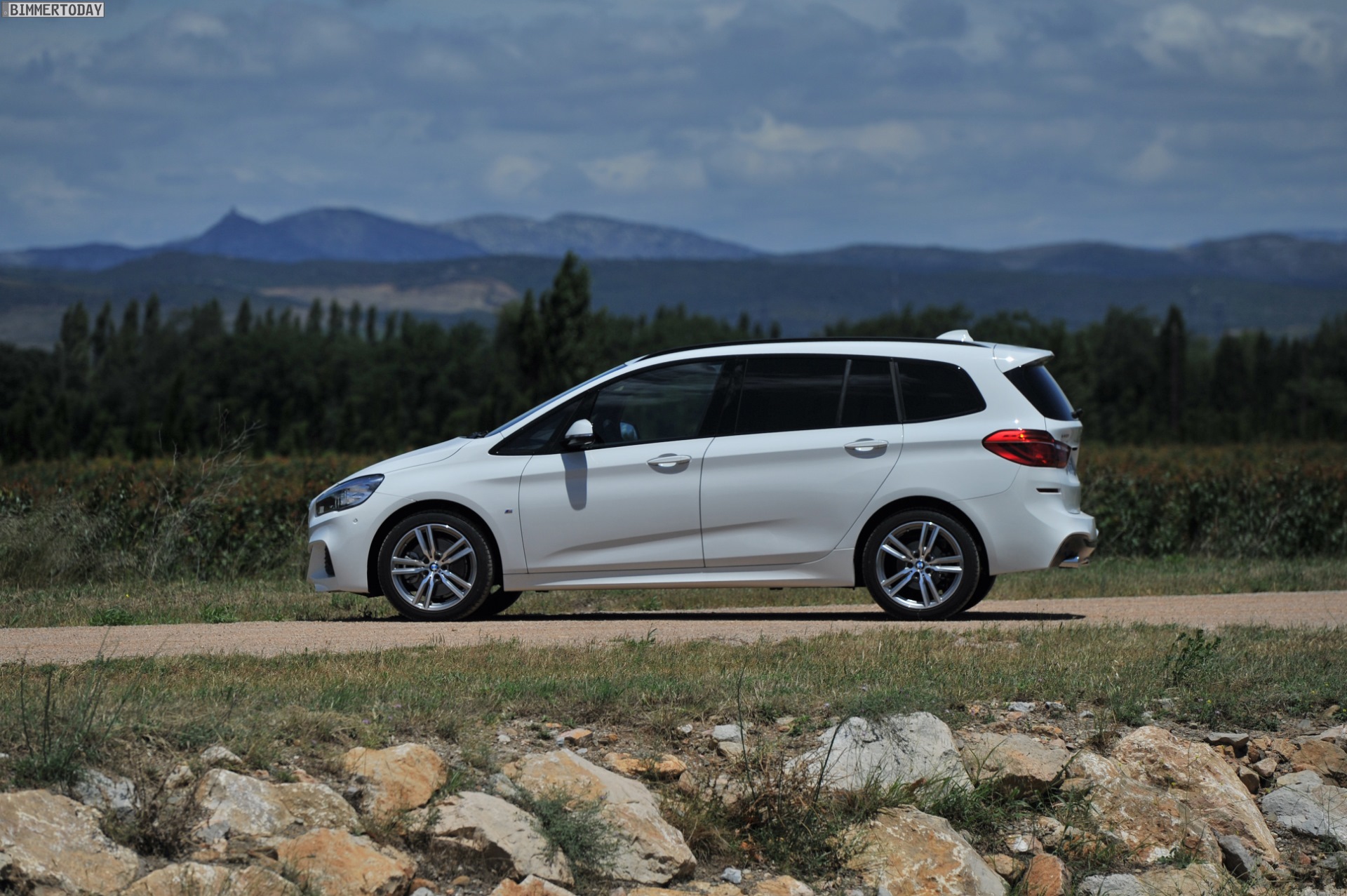 Einige weitere Fotos aus Frankreich zeigen den BMW 2er Gran Tourer mit M Sport-Paket in Alpinweiß Metallic. Bei diesem F46 handelt es sich um einen BMW 220d xDrive mit 190 PS starkem Diesel und Allradantrieb.