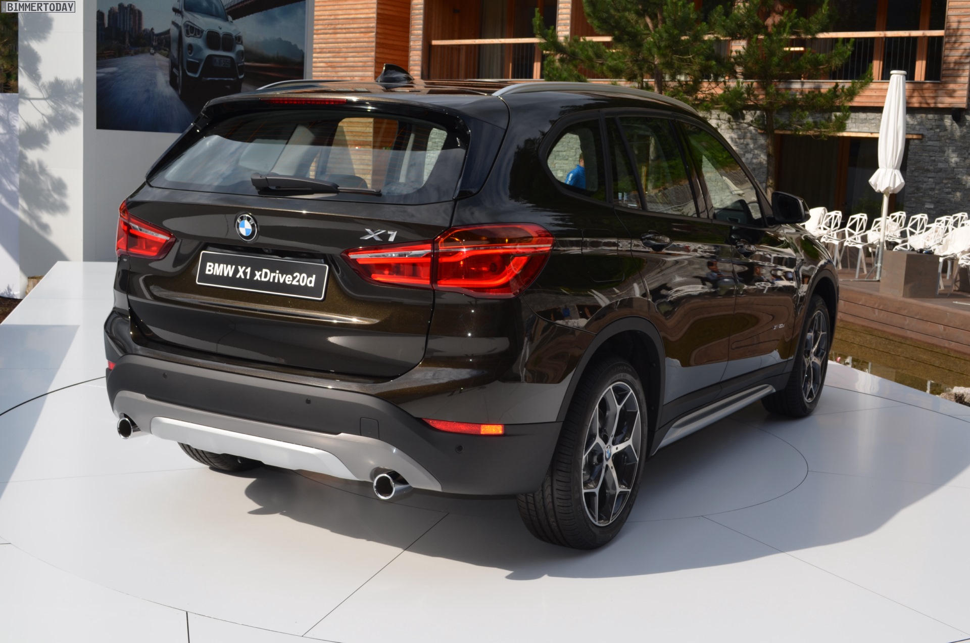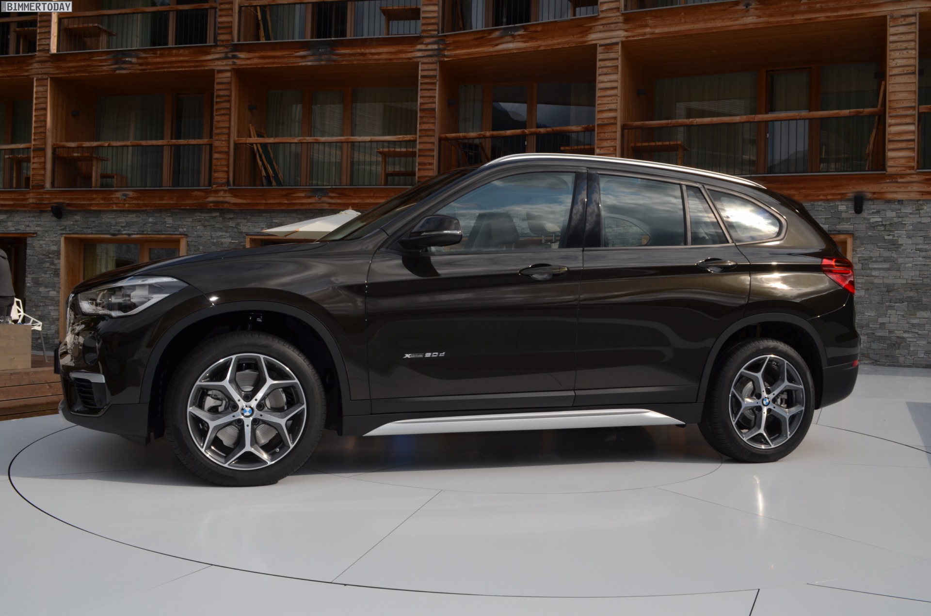 Zwar handelt es sich bei dem gezeigten Fahrzeug um ein Vorserien-Modell, äußerlich entspricht es aber dem Serienstand des BMW X1 F48 mit xLine-Paket. Wichtigstes Erkennungszeichen der xLine sind zahlreiche Elemente in mattem Silber, darunter ein angedeuteter Unterfahrschutz an Front- und Heckschürze.