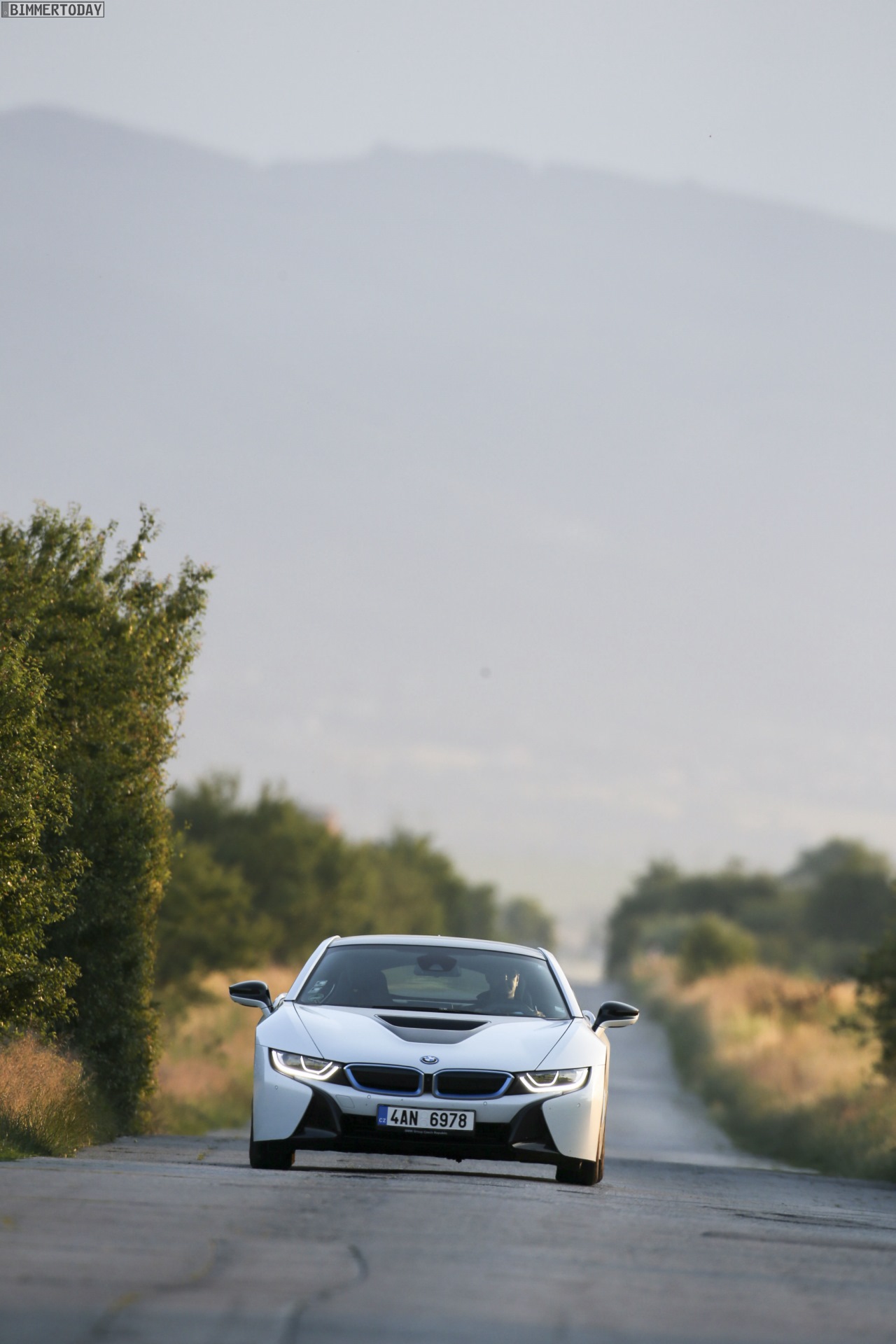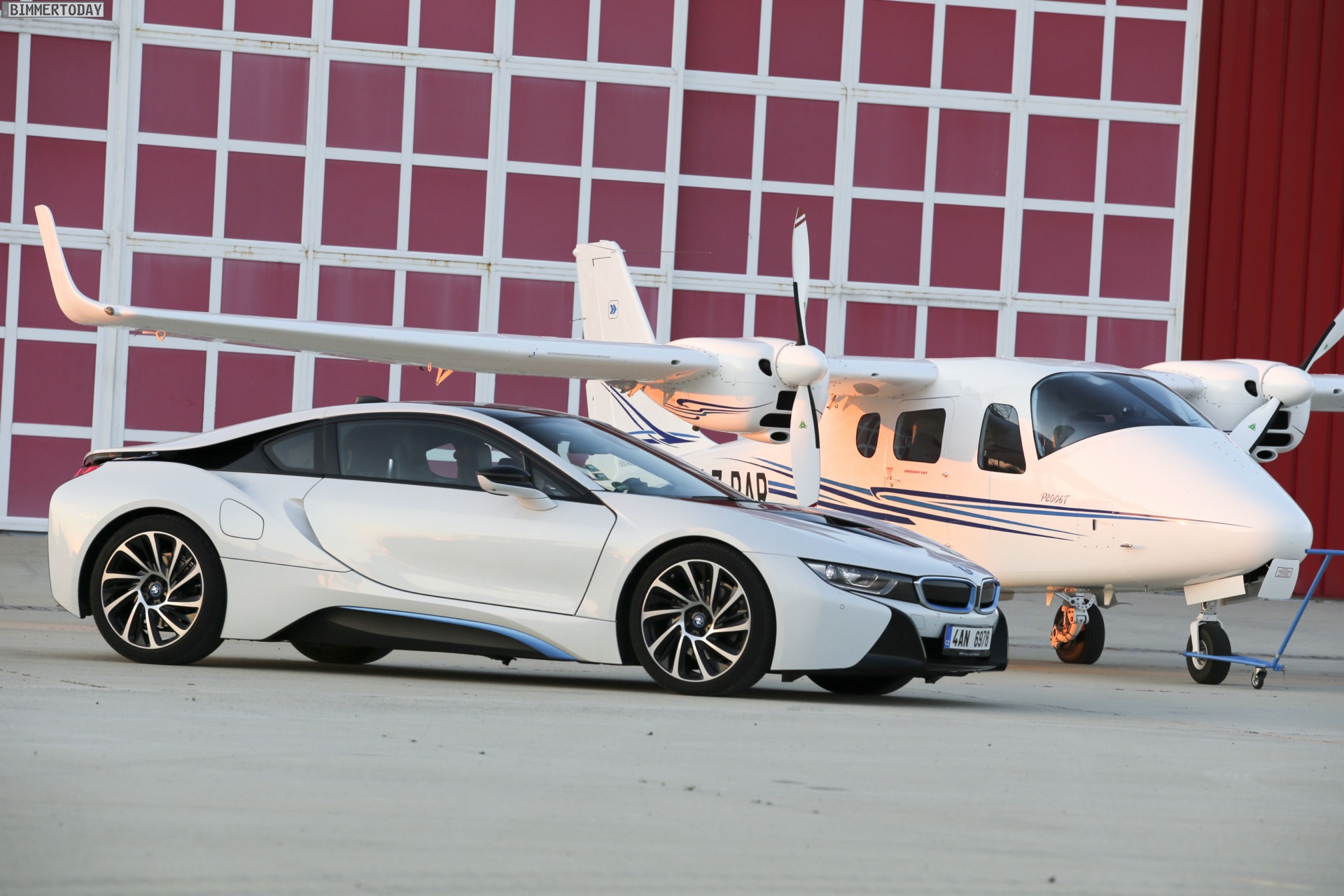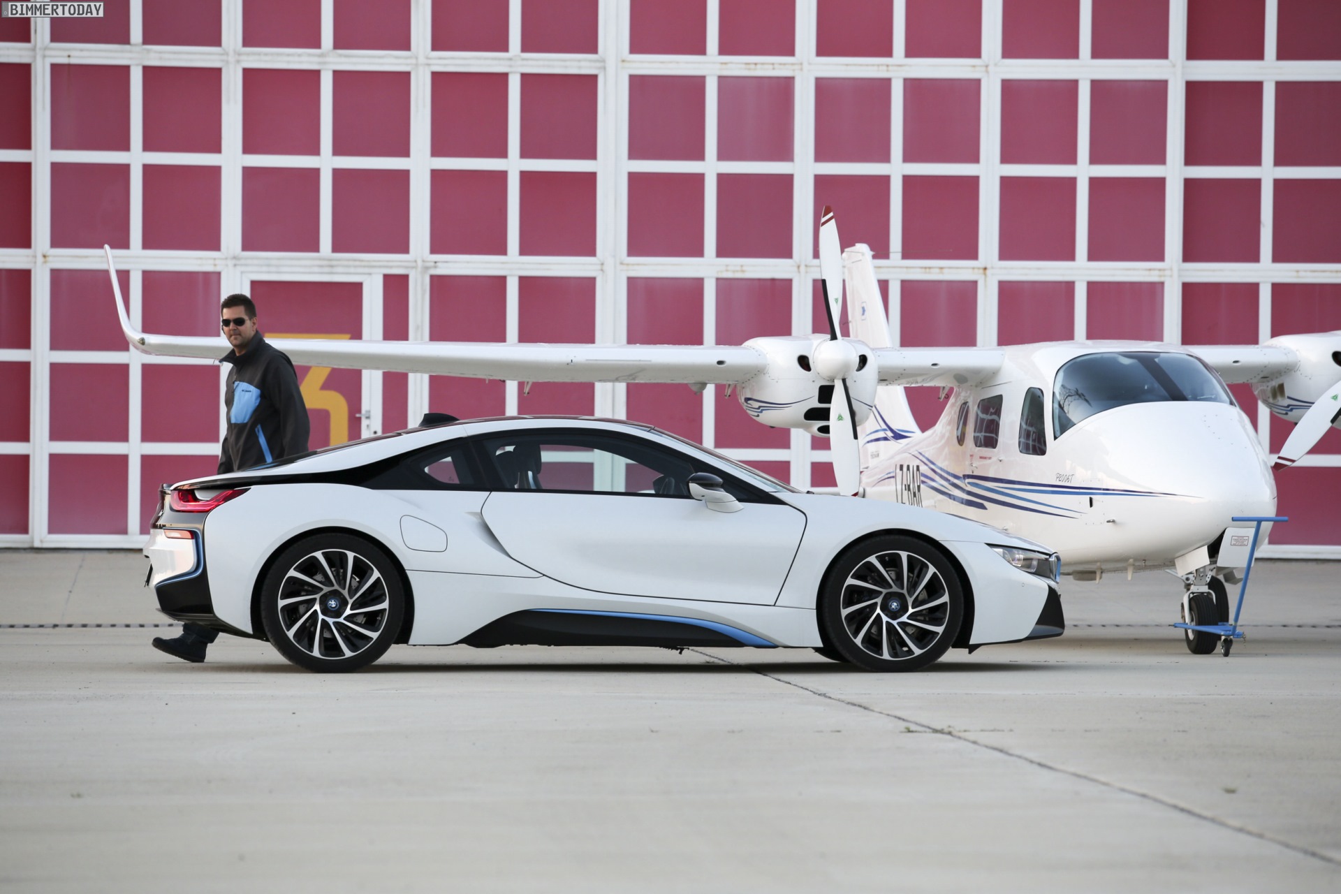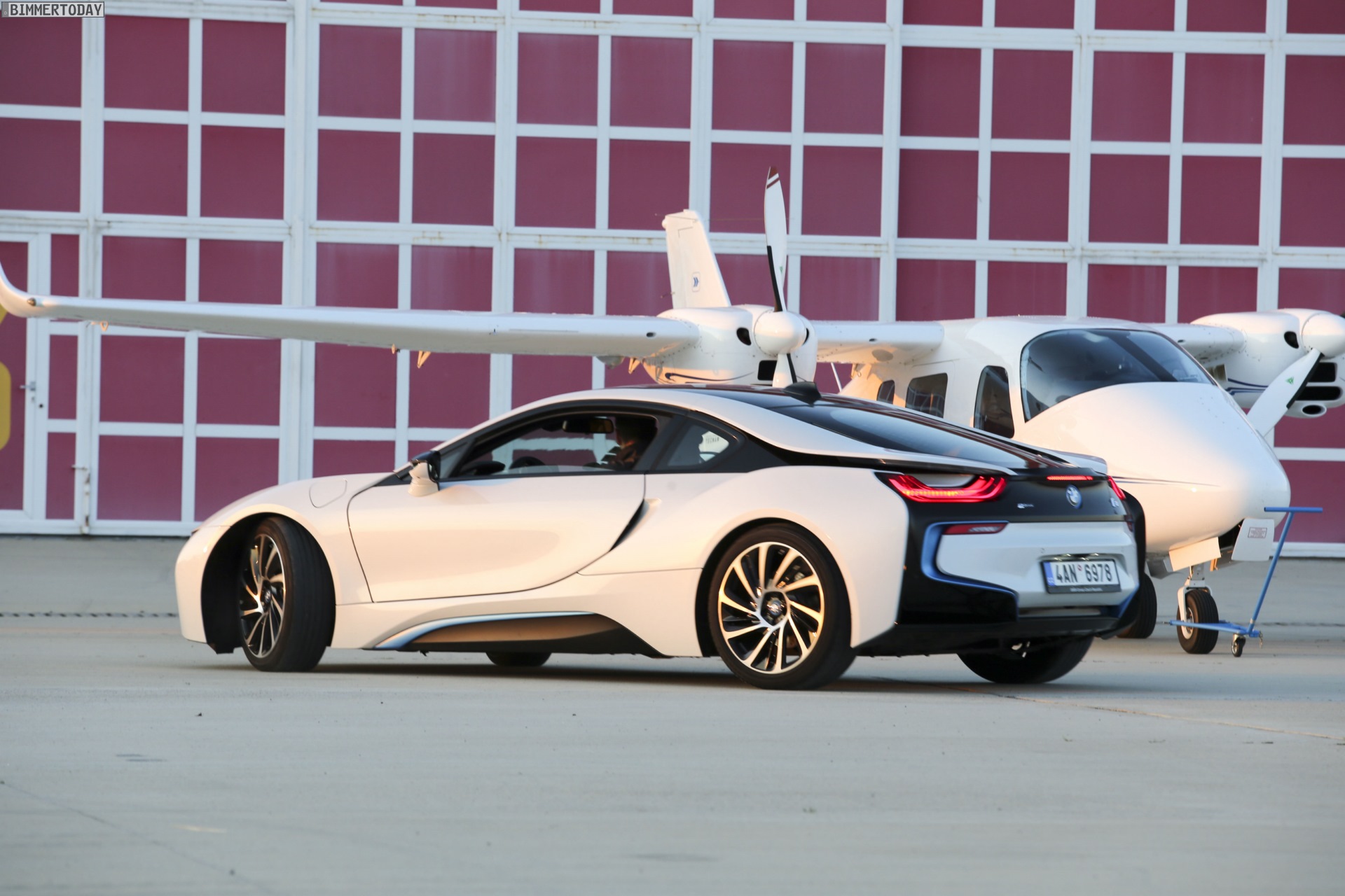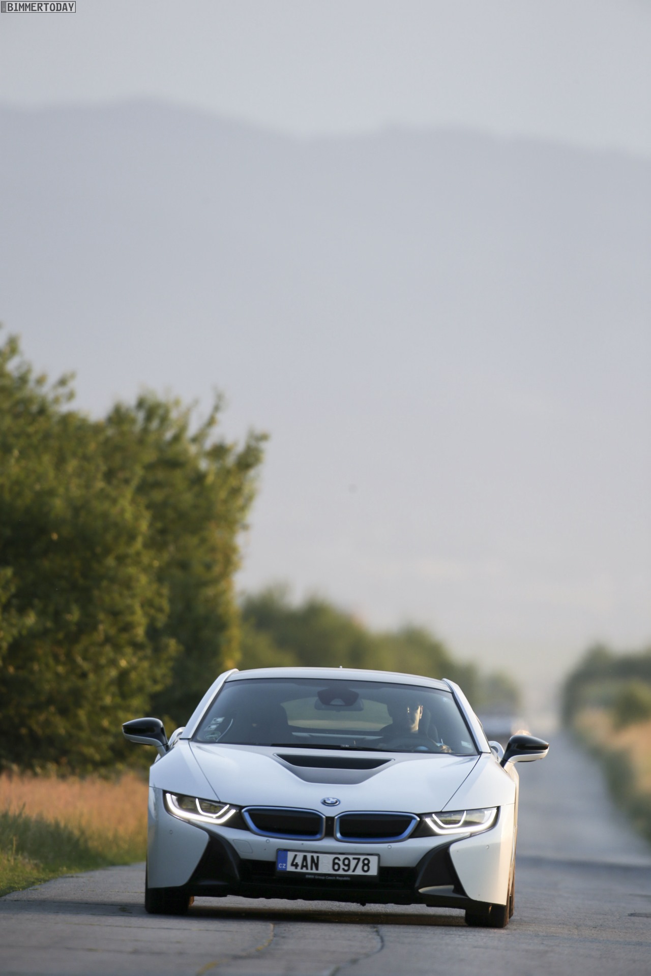 Aus Slowenien erreichen uns neue BMW i8-Fotos mit Wallpaper-Qualitäten. Die zum Teil auf dem Lesnovo Airport entstandenen Aufnahmen zeigen den Flügeltürer mit Plug-in-Hybrid-Antrieb in Kristallweiß Perleffekt mit Akzentein BMW i-Blau, die Elemente des sogenannten Black Belt sind natürlich auch bei dieser Variante in Schwarz ausgeführt.