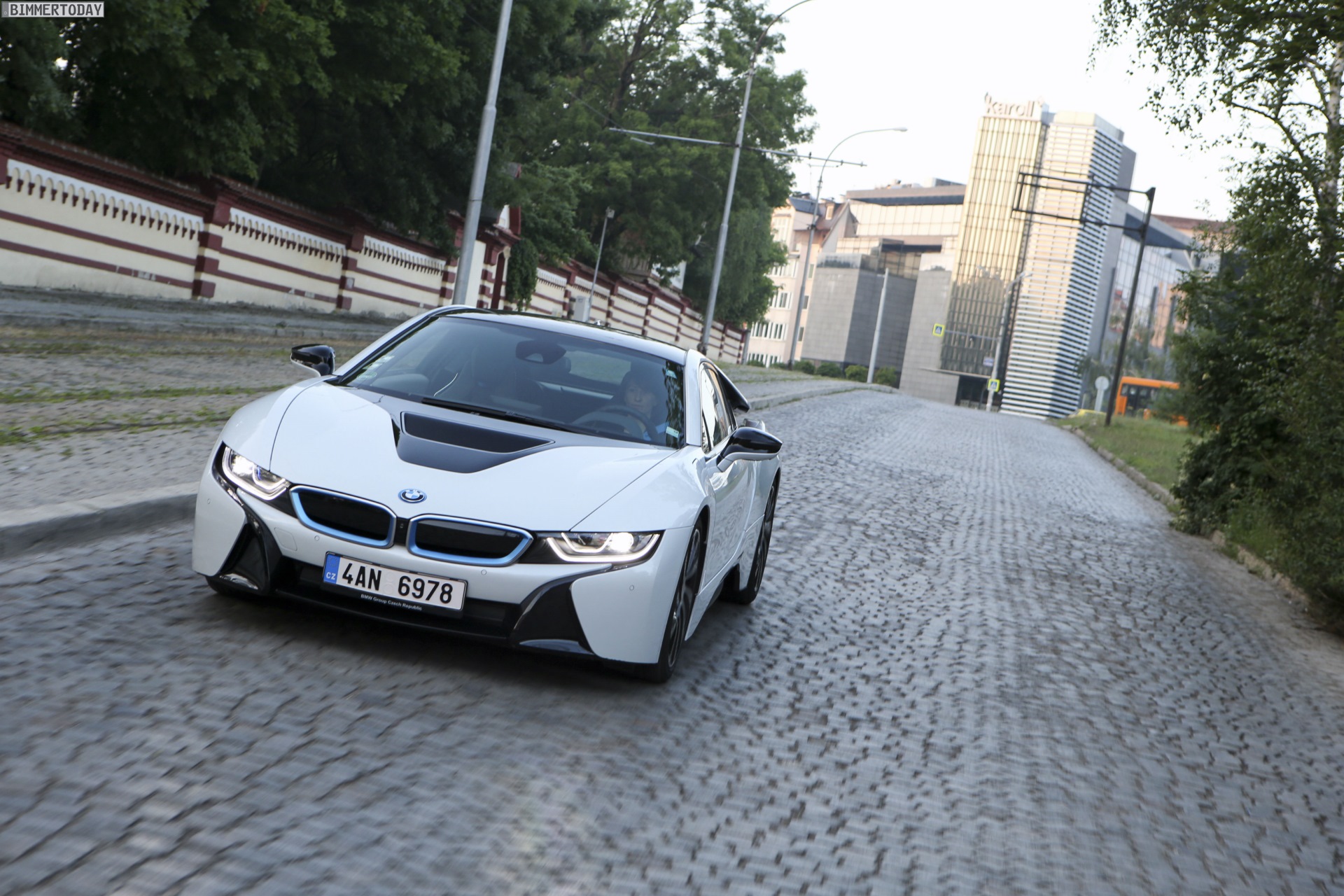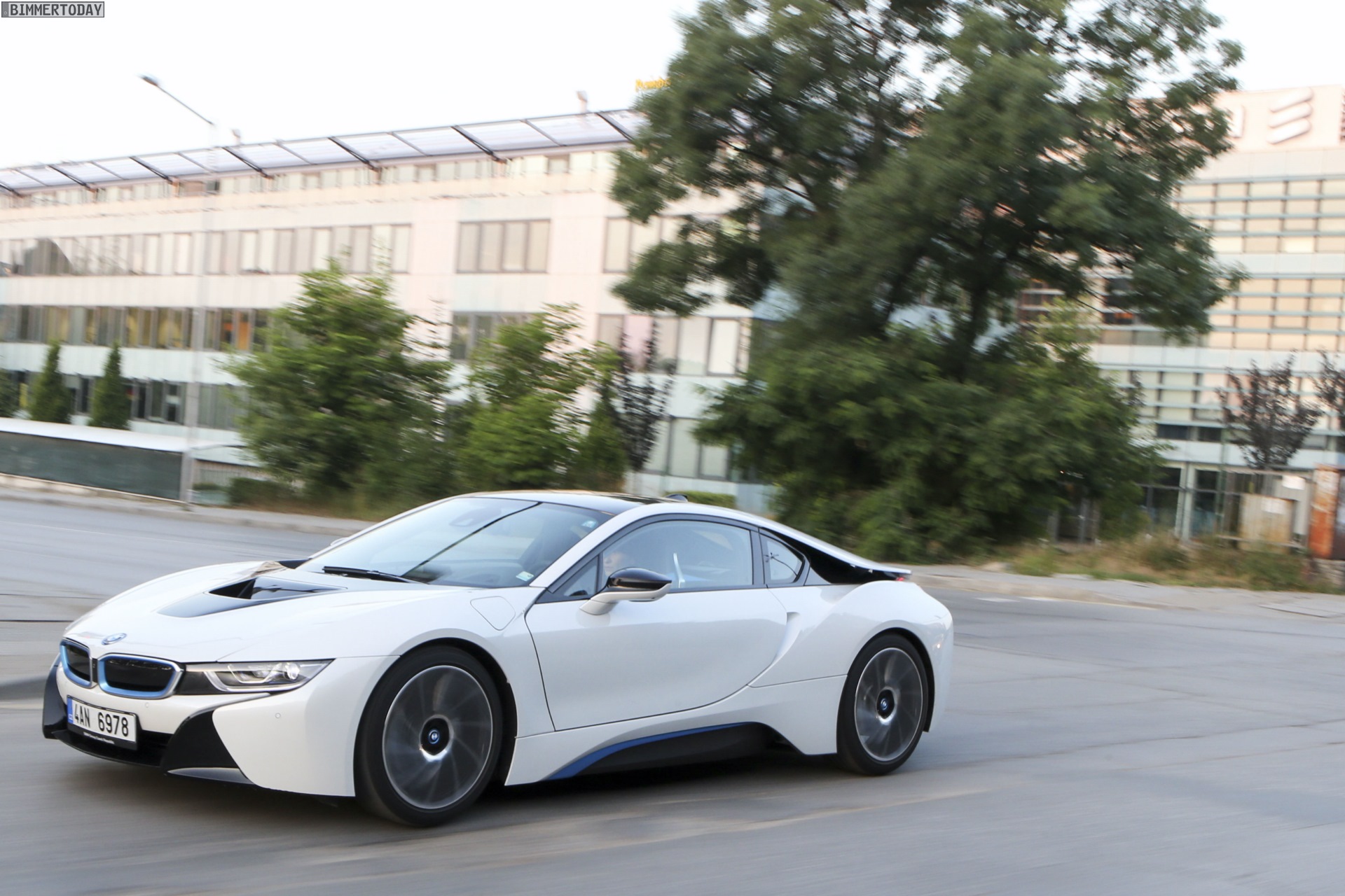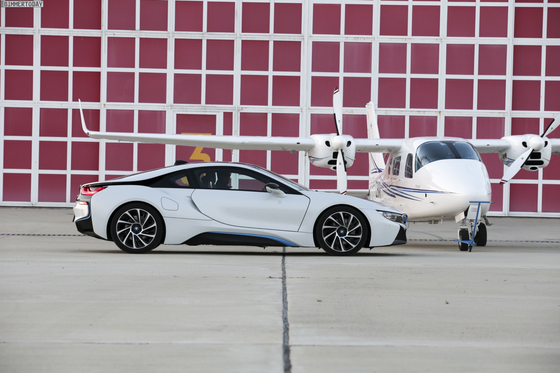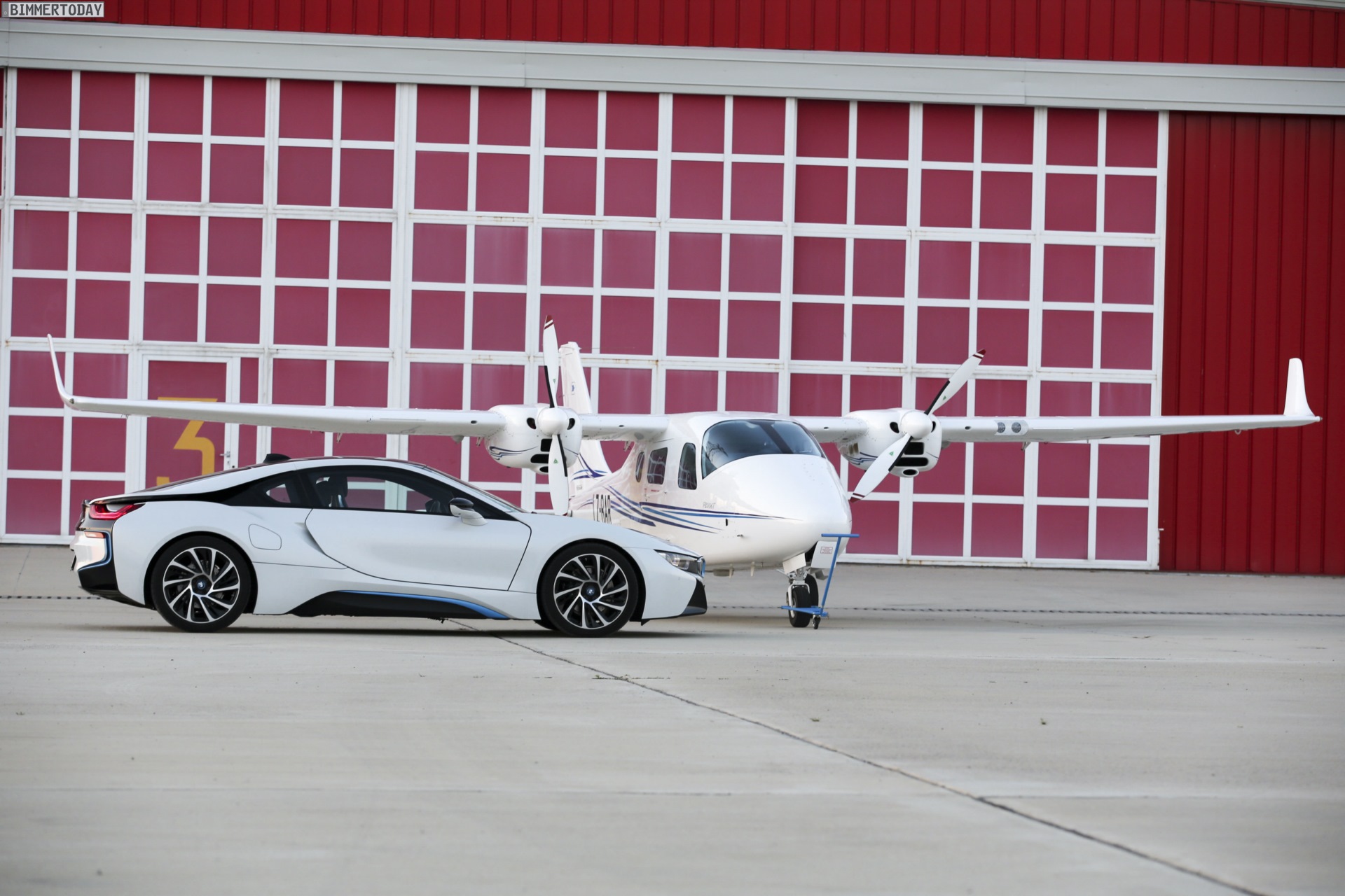 Aus Slowenien erreichen uns neue BMW i8-Fotos mit Wallpaper-Qualitäten. Die zum Teil auf dem Lesnovo Airport entstandenen Aufnahmen zeigen den Flügeltürer mit Plug-in-Hybrid-Antrieb in Kristallweiß Perleffekt mit Akzentein BMW i-Blau, die Elemente des sogenannten Black Belt sind natürlich auch bei dieser Variante in Schwarz ausgeführt.