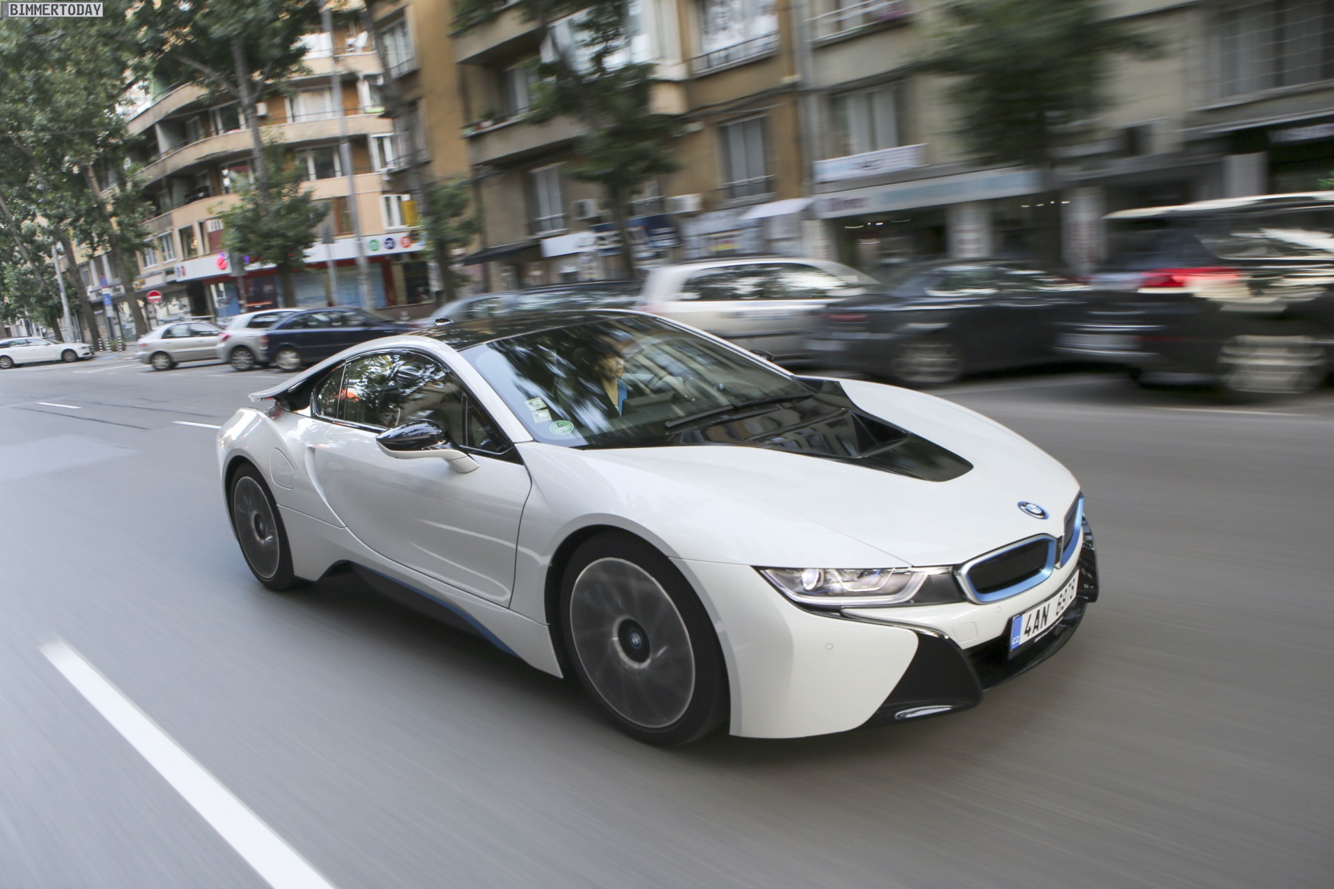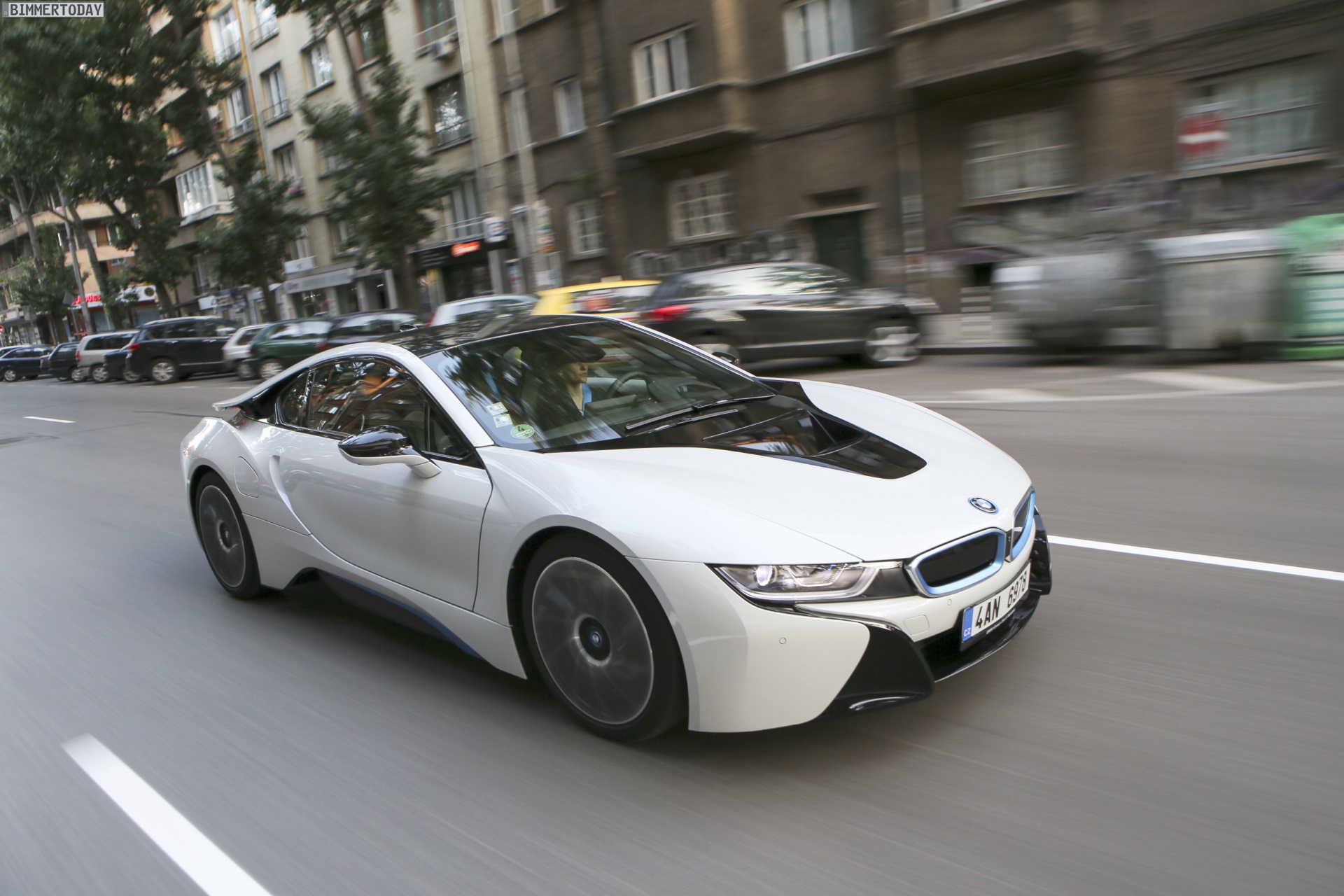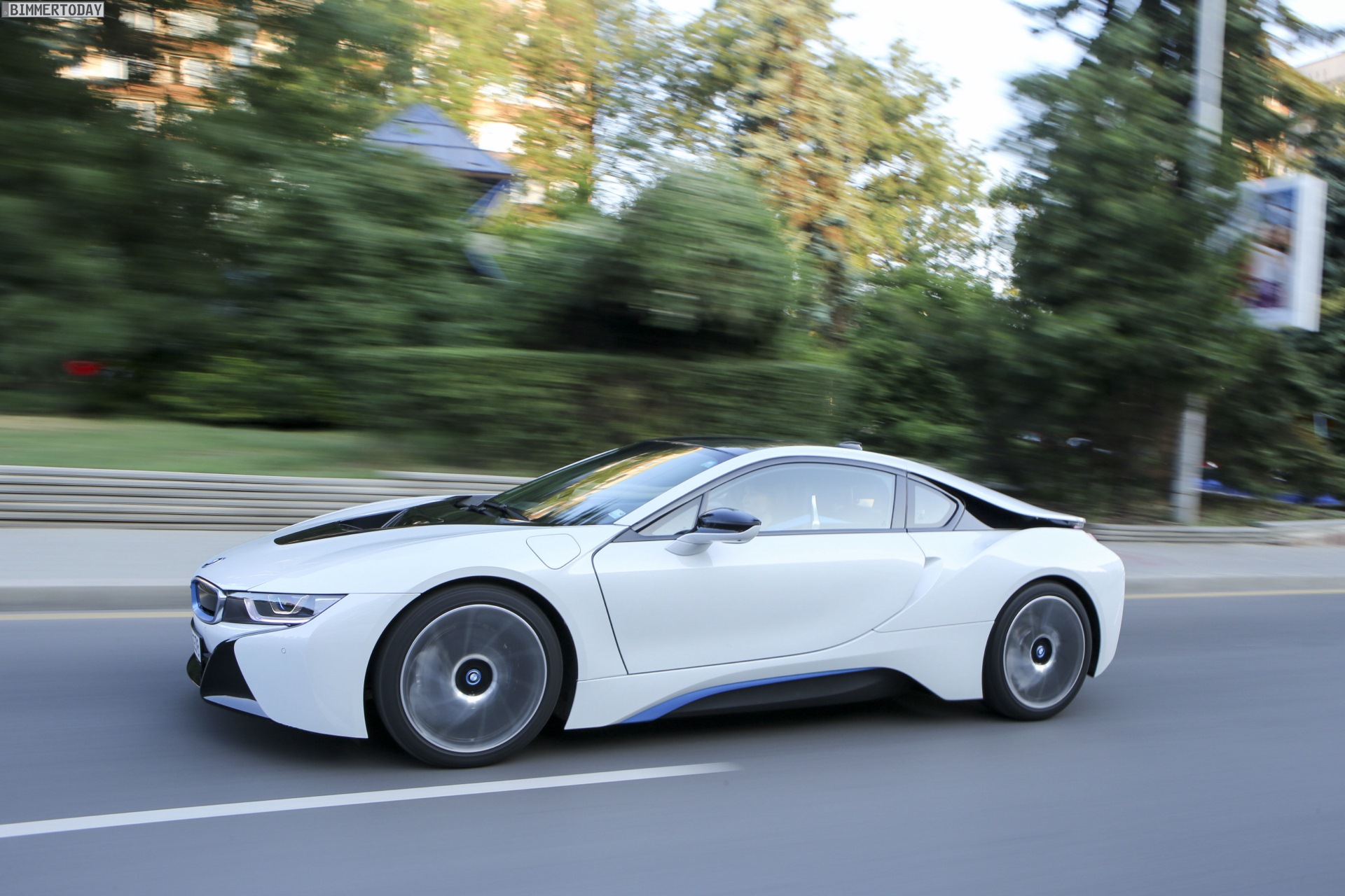 Im Heck des BMW i8 arbeitet ein Dreizylinder-Motor mit nur 1,5 Liter Hubraum, der sich auch ohne Elektrounterstützung sparsam bewegen lassen würde und die Hinterräder mit 231 PS antreibt. Um die zur Optik passenden Fahrleistungen realisieren zu können, verfügt der i8 zusätzlich über einen 131 PS starken Elektromotor an der Vorderachse.
