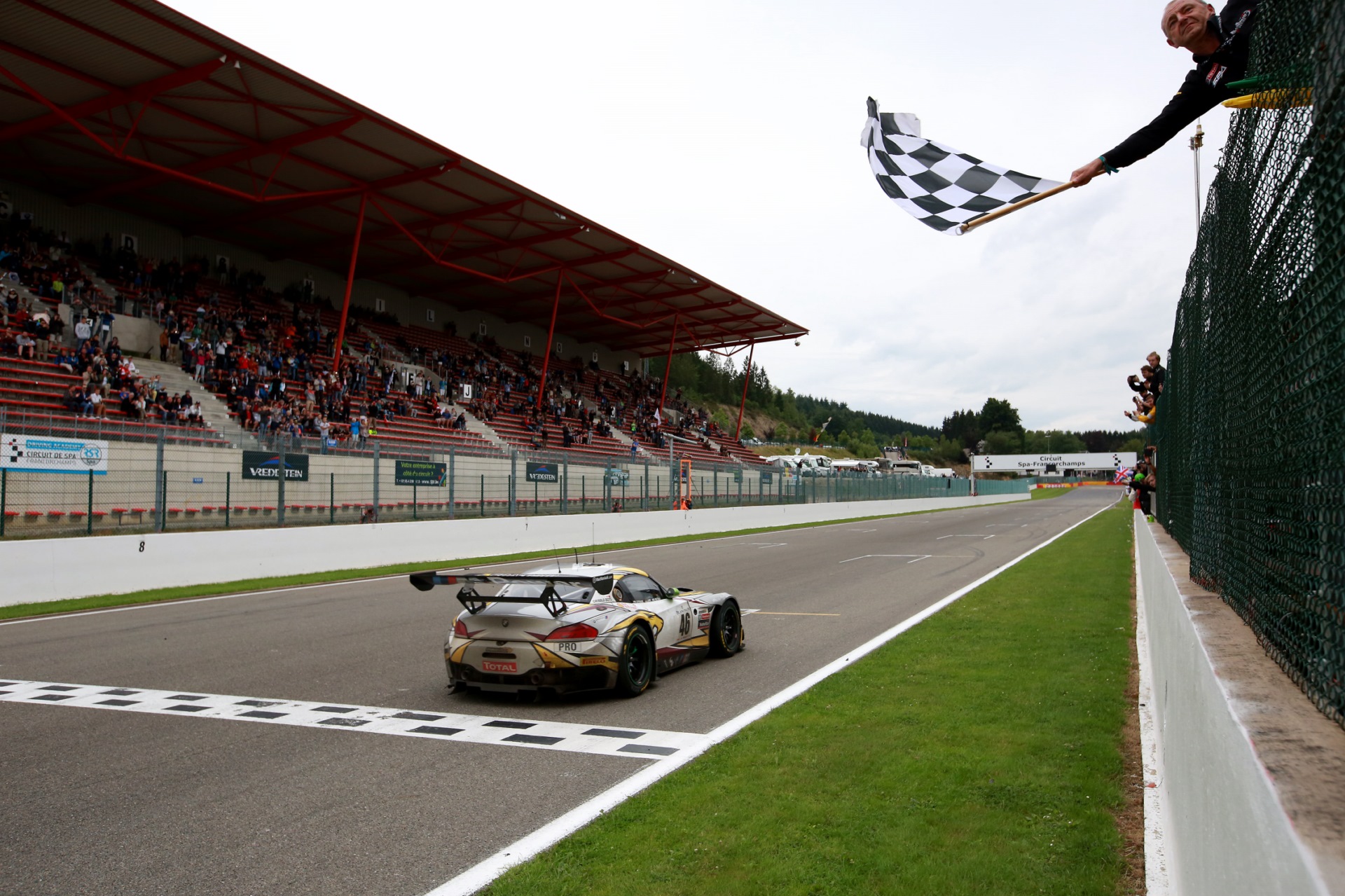 Bei seinem letzten großen 24-Stunden-Rennen konnte der BMW Z4 GT3 in Spa-Francorchamps einen Abschied nach Maß feiern: Nach einem spannenden Rennen lag einer der elf gestarteten BMW Z4 mit Startnummer 46 auf dem ersten Rang und konnte zwei Audi R8 LMS auf die weiteren Podiums-Ränge verweisen. Wie knapp es dabei zuging, zeigt ein Blick auf die Zeitentabelle: Nach 24 Stunden lagen die ersten drei Fahrzeuge noch innerhalb von zwei Runden.
