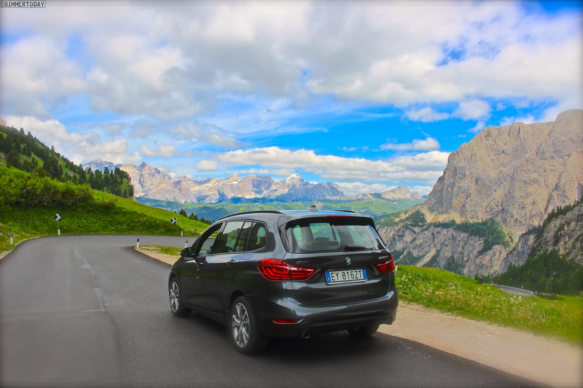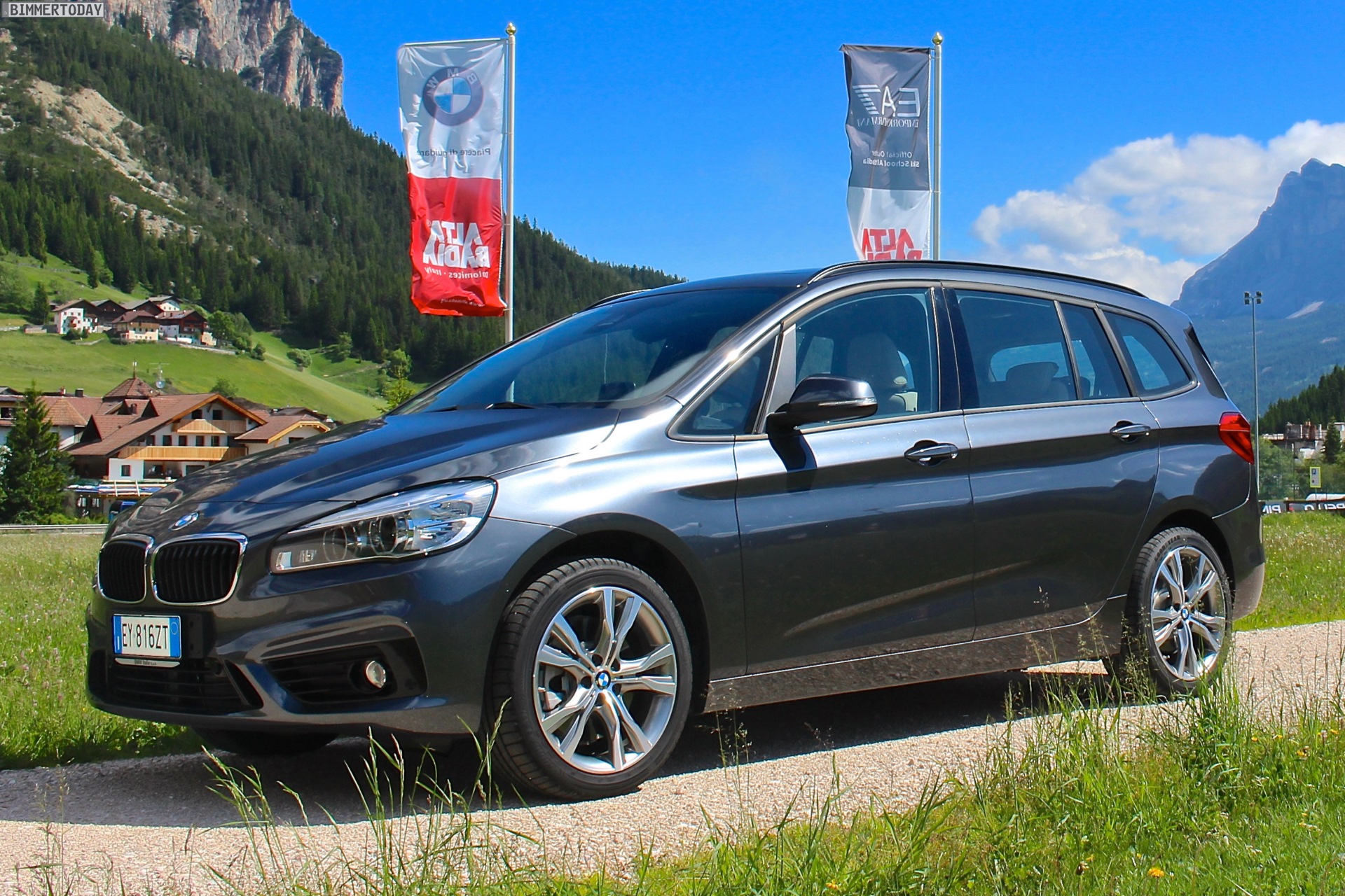 Seit wenigen Wochen ist der BMW 2er Gran Tourer im Handel, schon lange zuvor hatte der Siebensitzer-Van das Interesse zahlreicher Familien geweckt. Aus Italien kommen nun einige neue Fotos, die den BMW 2er F46 in Mineralgrau Metallic zeigen – und auch gleich die passende Kulisse für den nächsten Familienurlaub im Hintergrund haben.