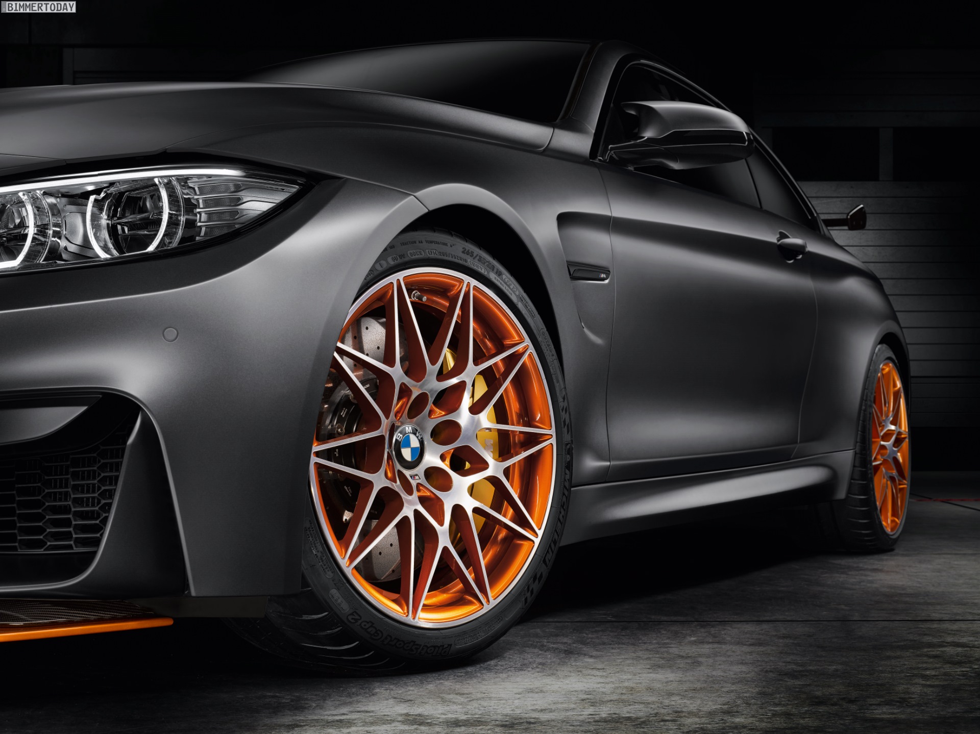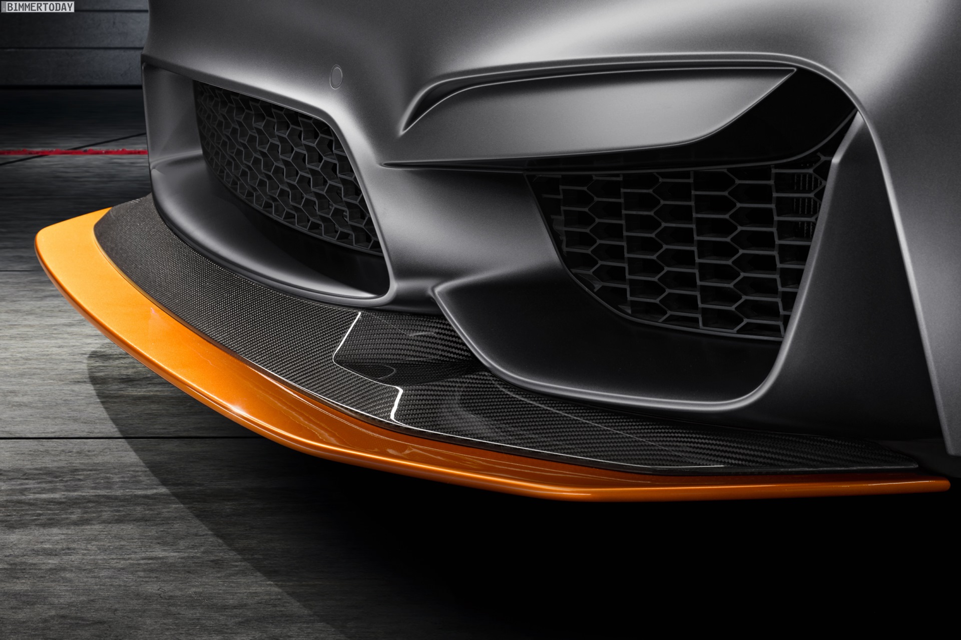 Aus jedem Blickwinkel fällt die umfangreich modifizierte Aerodynamik ins Auge, sowohl der Frontsplitter als auch der große Heckflügel sind manuell verstellbar und können so an die jeweilige Strecke angepasst werden. Während das Fahrzeug in mattem Frozen Dark Grey gehalten ist, betonen einige Elemente in auffälligem Acid Orange die Besonderheiten des BMW M4 GTS Concept.