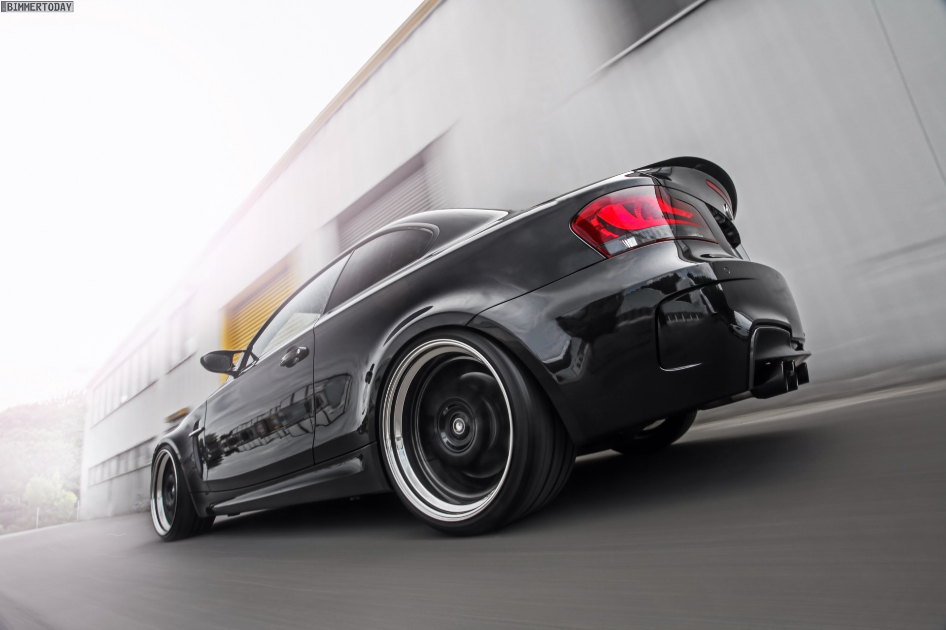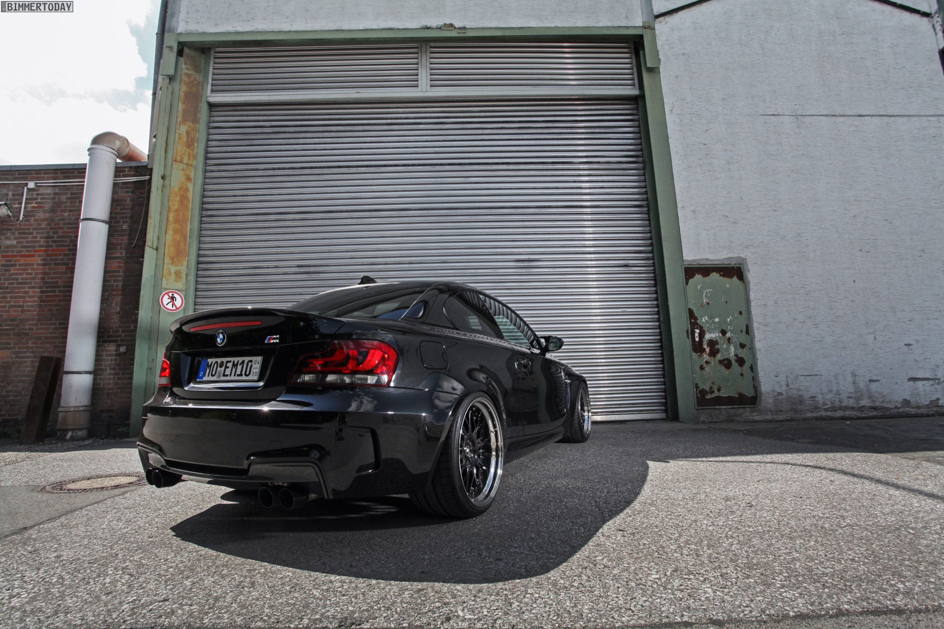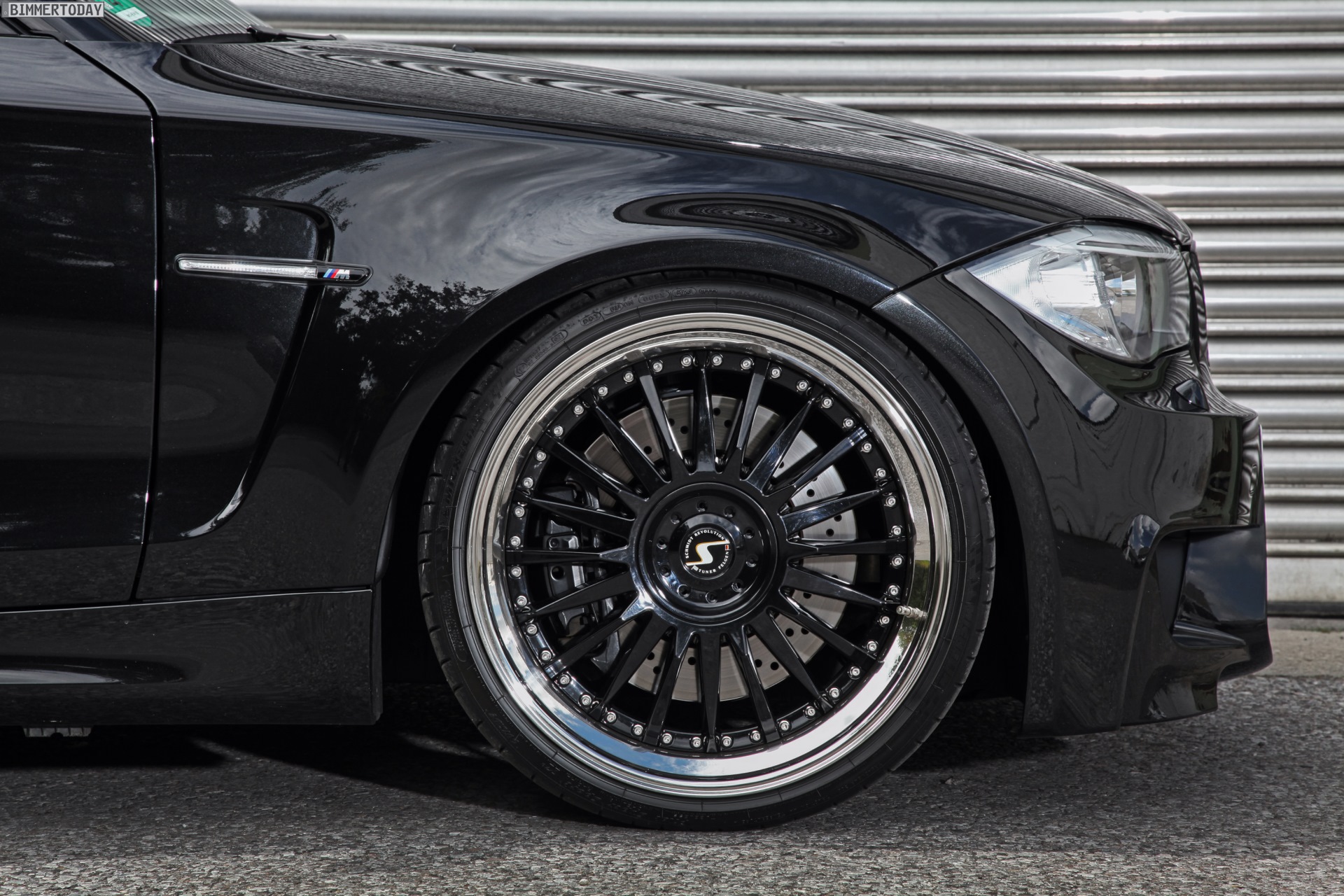 Das gezeigte BMW 1er M Coupé steht auf 20 Zoll großen Schmidt-Felgen mit 245er-Bereifung vorn und 295er-Gummis hinten, nutzt ein Monotube-Gewindefahrwerk von H&R und greift auf einige Aerodynamik- und Design-Komponenten aus dem Programm von BMW M Performance zurück.