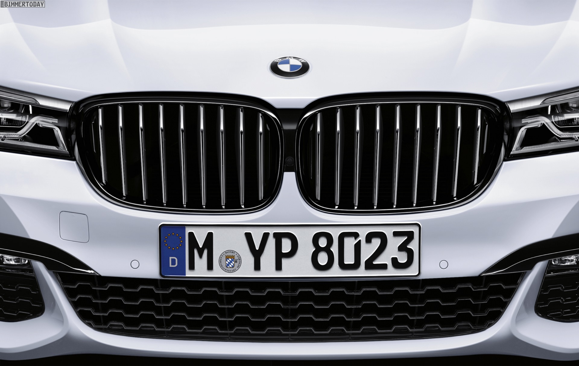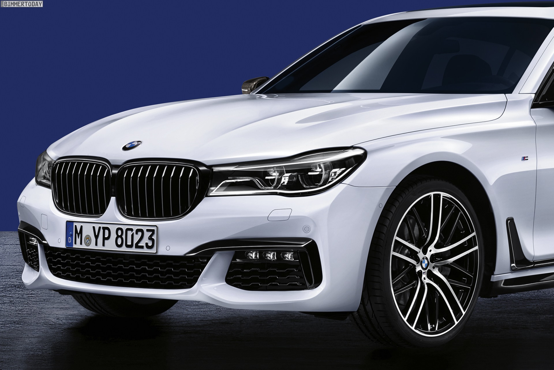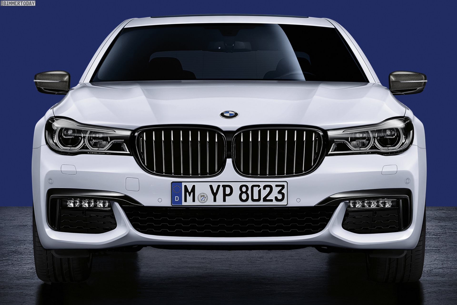 Genau wie bei den M Performance-Premieren der Vergangenheit werden die in Schwarz oder Carbon gehaltenen Anbauteile an einem weißen Fahrzeug gezeigt, schließlich kommt der Kontrast in diesem Fall besonders gut zur Geltung. Einige beim 7er für gewöhnlich in Chrom gehaltene Elemente sind bereits durch die BMW Individual Hochglanz Shadow Line in glänzendem Schwarz gehalten, andere Details wie die wuchtigen Nieren-Umrandungen sind nur über das Performance-Zubehör in der dunkelsten aller Farben erhältlich.