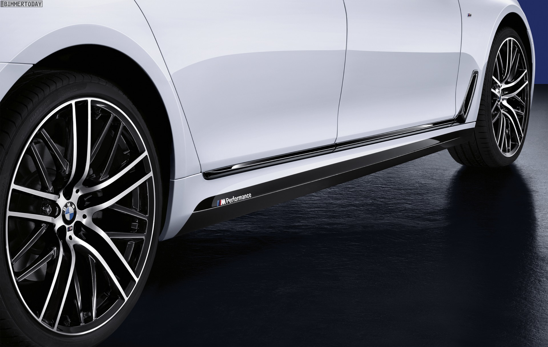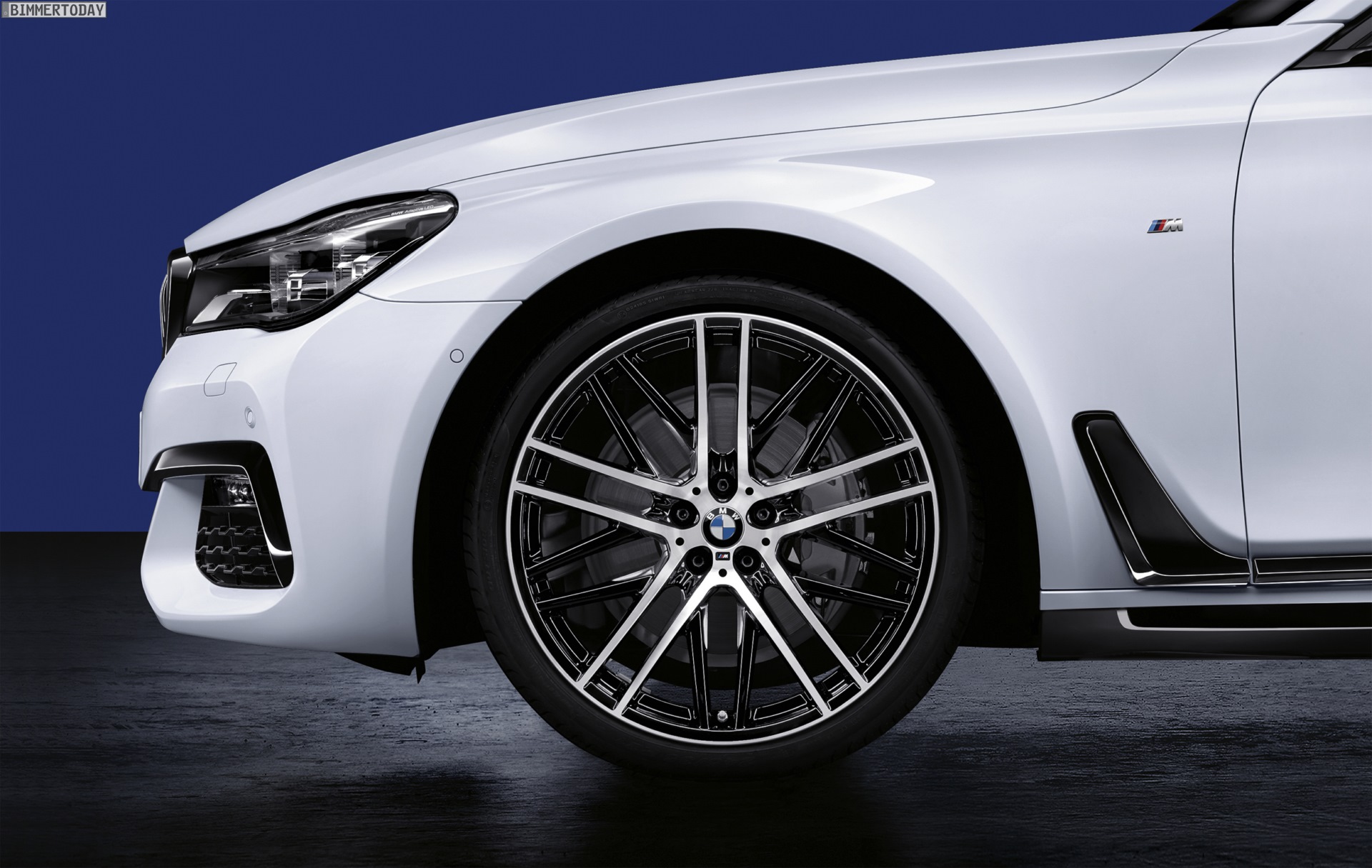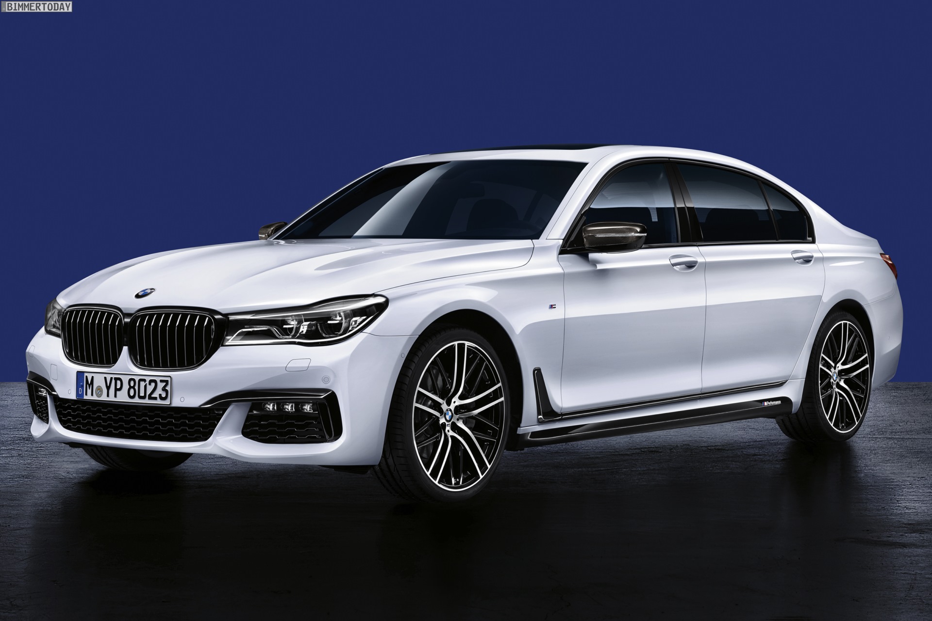 Genau wie bei den M Performance-Premieren der Vergangenheit werden die in Schwarz oder Carbon gehaltenen Anbauteile an einem weißen Fahrzeug gezeigt, schließlich kommt der Kontrast in diesem Fall besonders gut zur Geltung. Einige beim 7er für gewöhnlich in Chrom gehaltene Elemente sind bereits durch die BMW Individual Hochglanz Shadow Line in glänzendem Schwarz gehalten, andere Details wie die wuchtigen Nieren-Umrandungen sind nur über das Performance-Zubehör in der dunkelsten aller Farben erhältlich.
