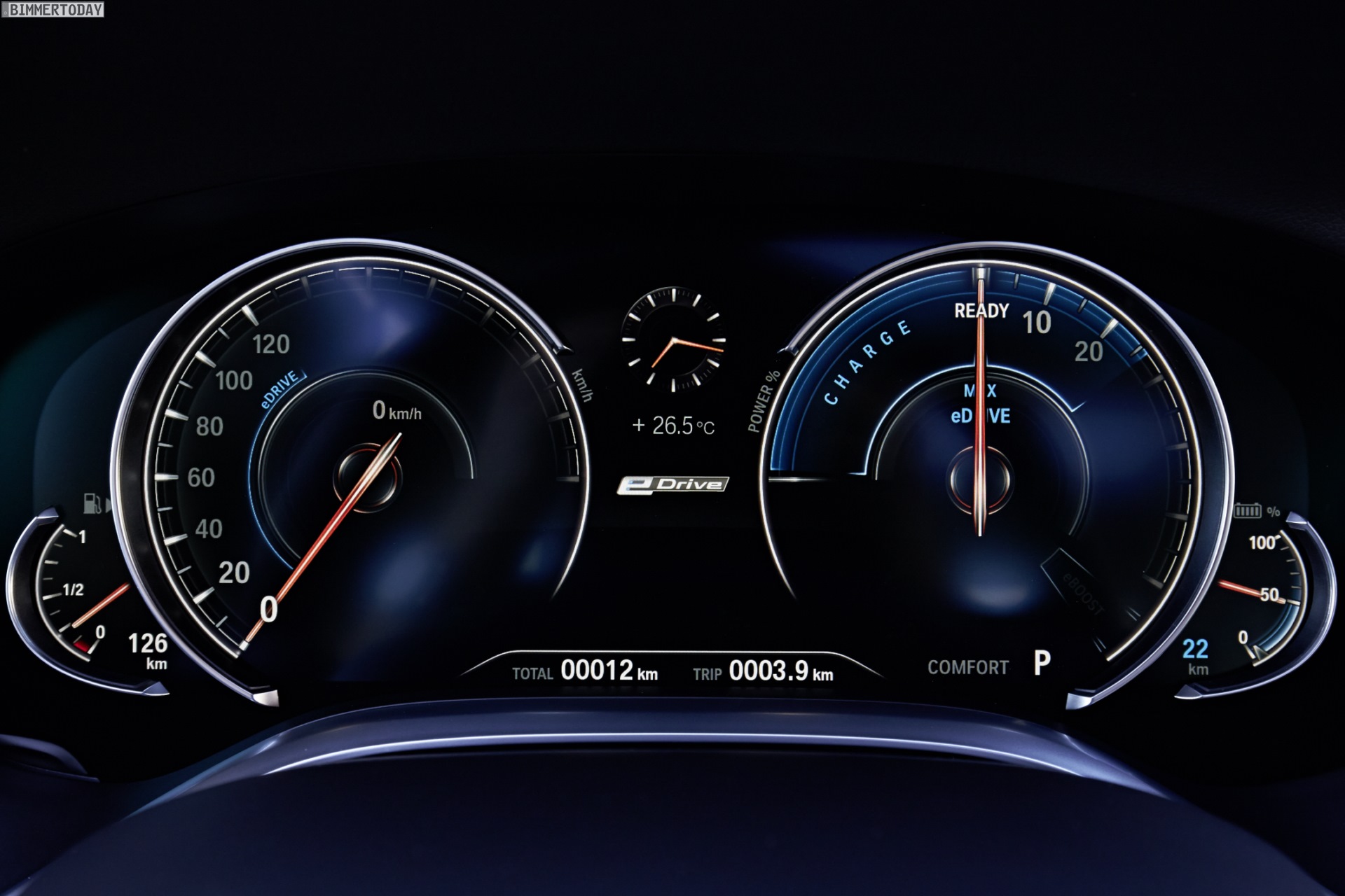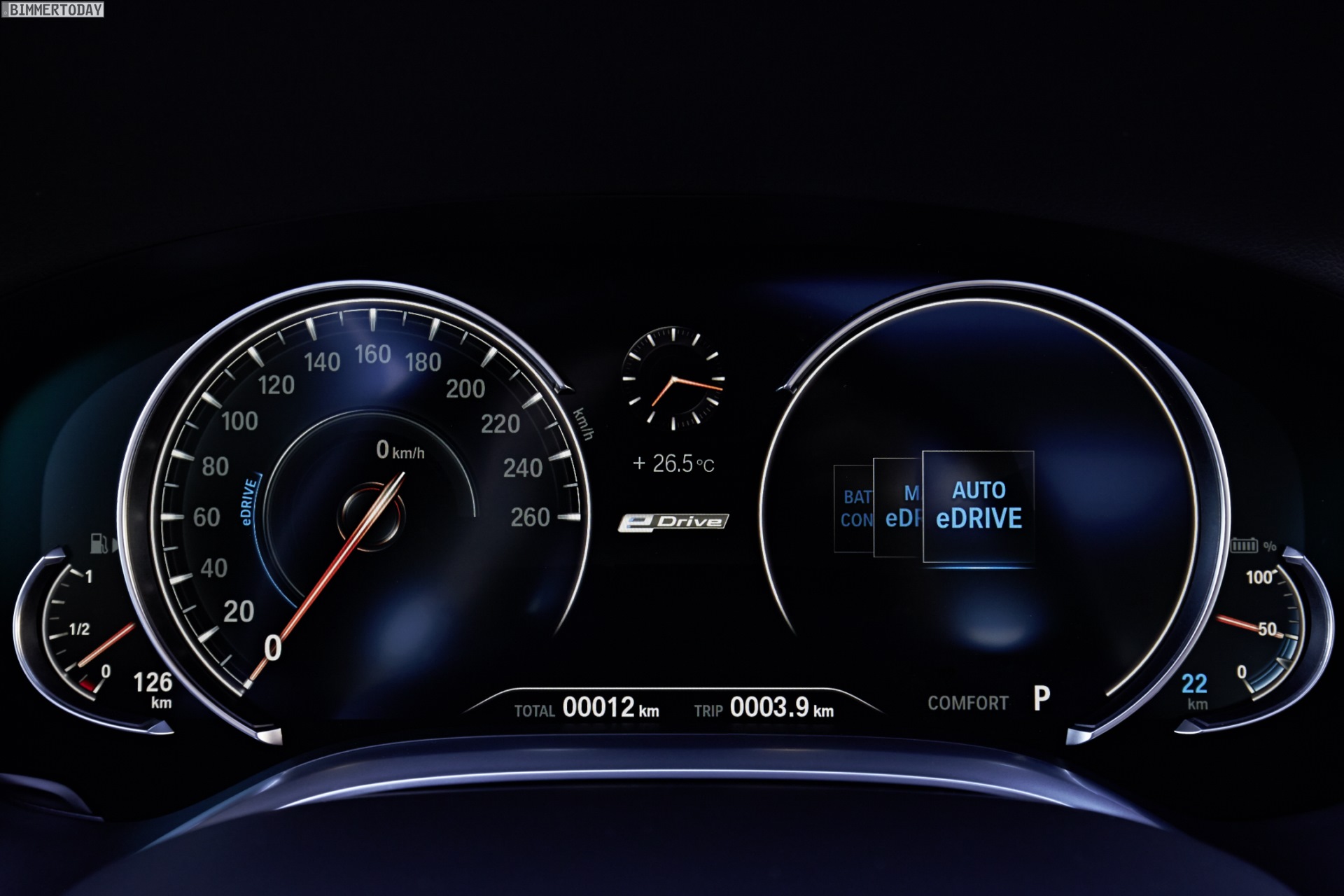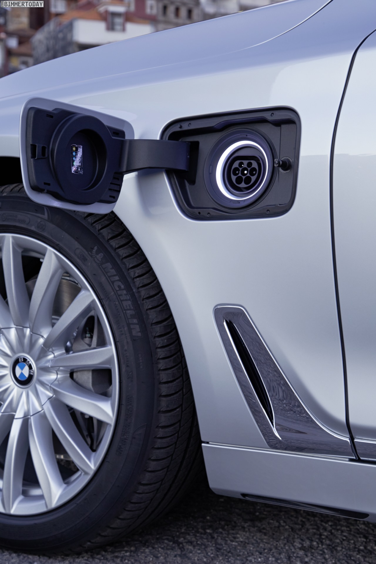 Ein Musterbeispiel für EfficientDynamics sind auch die Plug-in-Hybride BMW 740e G11 und BMW 740Le G12. Die PHEV-7er kombinieren die Kraft eines Vierzylinder-Benziners mit einem Elektromotor, so erreichen sie eine Systemleistung von 326 PS – begnügen sich aber im EU-Zyklus mit 2,1 Liter Verbrauch auf 100 Kilometer, was einem CO2-Ausstoß von 49 Gramm pro Kilometer entspricht. Die zum Betrieb des 95 PS starken Elektromotors benötigte Energie wird in einer crashsicher unterhalb der Fond-Bank platzierten Lithium-Ionen-Batterie gespeichert, bis zu 40 Kilometer können rein elektrisch zurückgelegt werden.