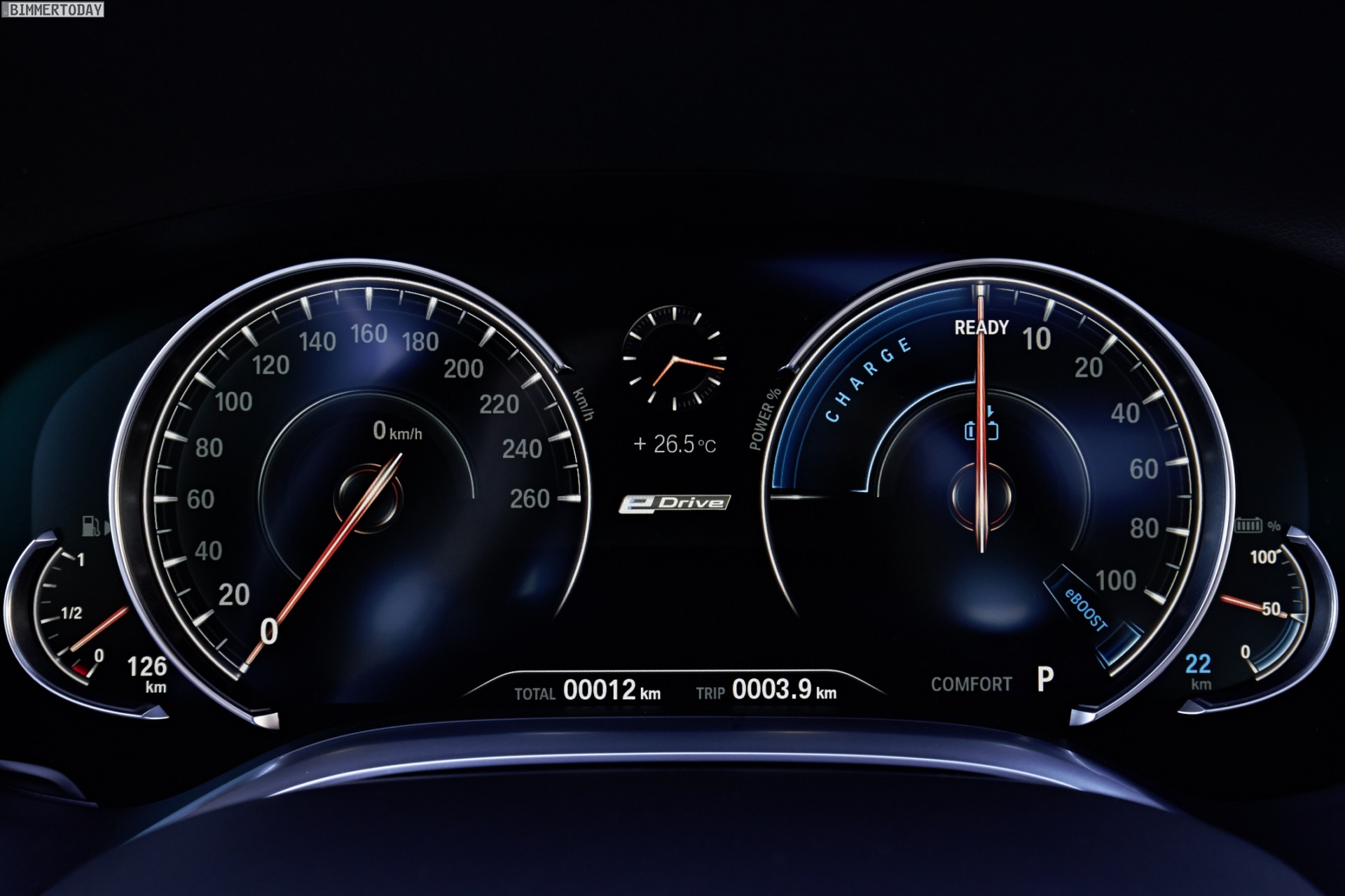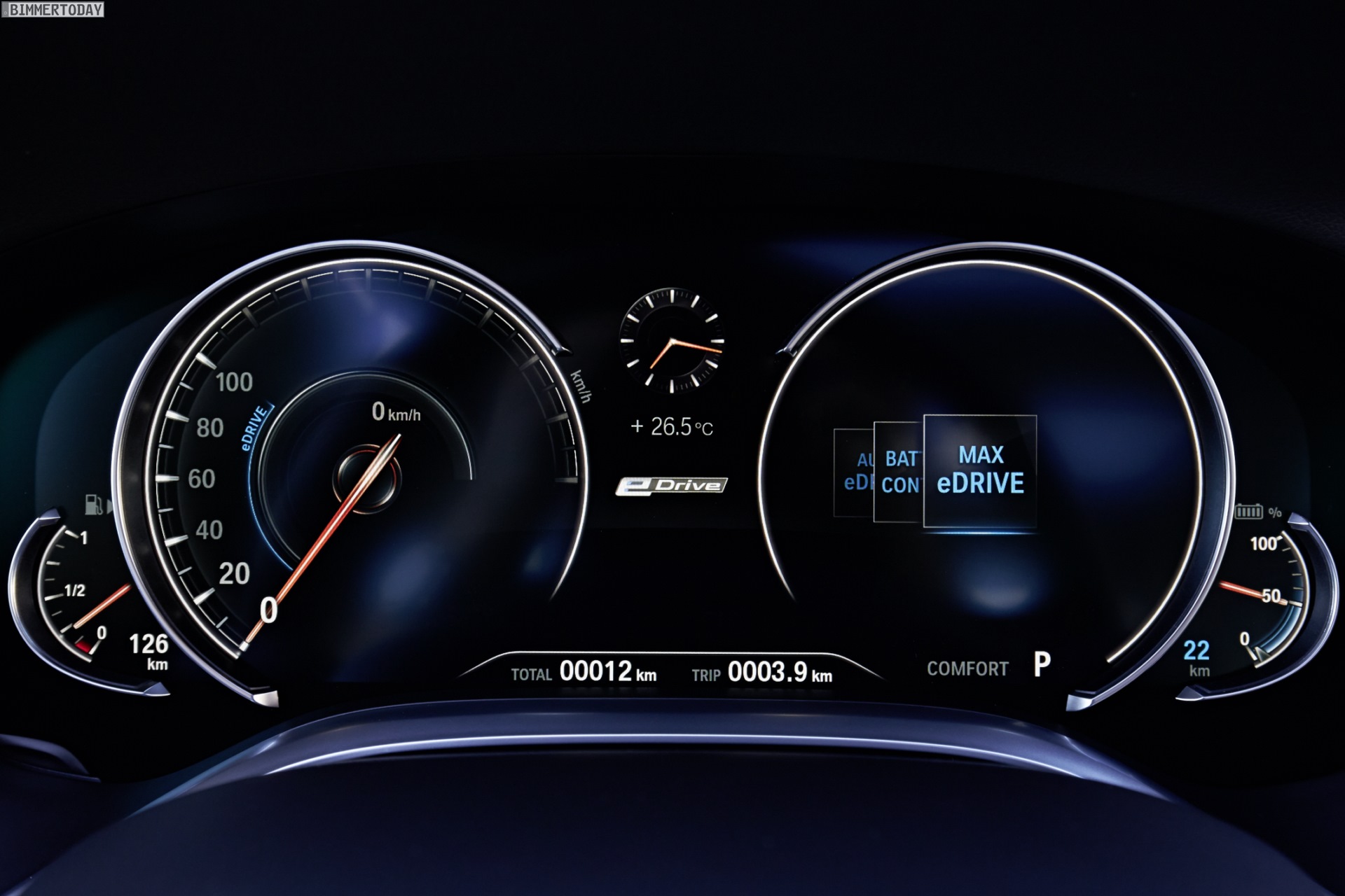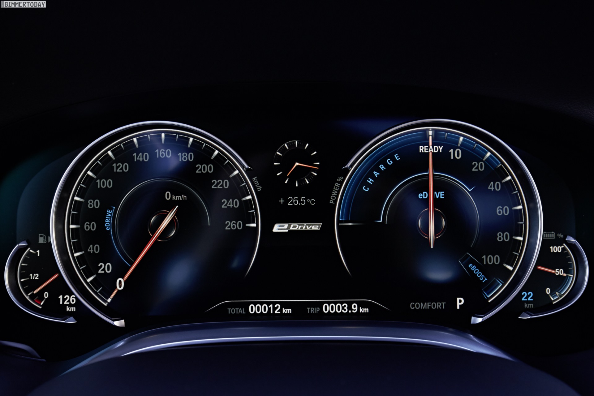 Ein Musterbeispiel für EfficientDynamics sind auch die Plug-in-Hybride BMW 740e G11 und BMW 740Le G12. Die PHEV-7er kombinieren die Kraft eines Vierzylinder-Benziners mit einem Elektromotor, so erreichen sie eine Systemleistung von 326 PS – begnügen sich aber im EU-Zyklus mit 2,1 Liter Verbrauch auf 100 Kilometer, was einem CO2-Ausstoß von 49 Gramm pro Kilometer entspricht. Die zum Betrieb des 95 PS starken Elektromotors benötigte Energie wird in einer crashsicher unterhalb der Fond-Bank platzierten Lithium-Ionen-Batterie gespeichert, bis zu 40 Kilometer können rein elektrisch zurückgelegt werden.