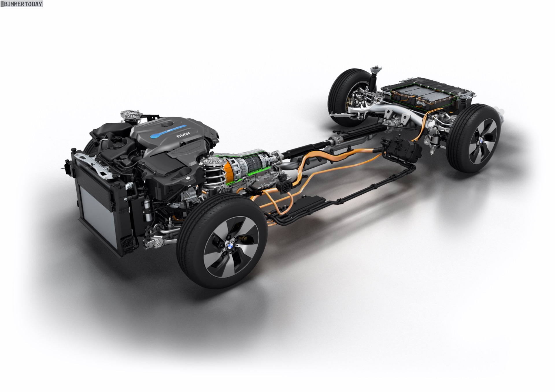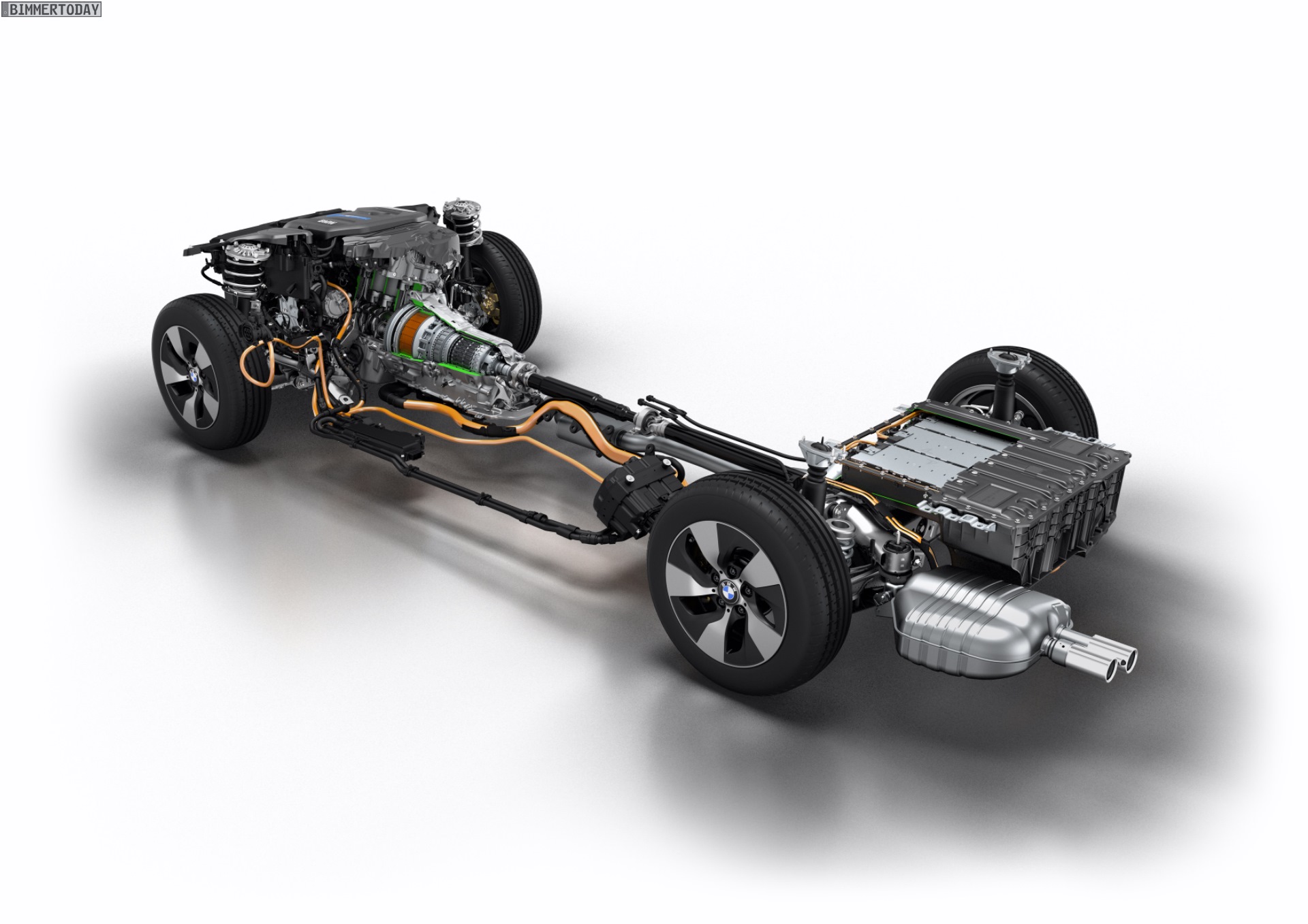 Wie angekündigt wird der BMW 330e von einem Vierzylinder-Benziner mit 184 PS sowie einem 88 PS starken Elektromotor angetrieben, letzterer ist in das Gehäuse der Achtgang-Automatik integriert und stellt permanent ein Drehmoment von 100 Newtonmeter zur Verfügung – bei Vollgas leistet die E-Maschine kurzzeitig bis zu 250 Newtonmeter.